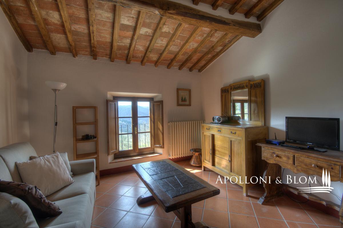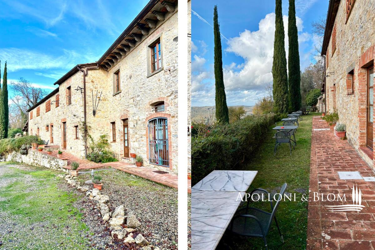 Period residence dated 1700 set in an exceptionally private location, finely restored with swimming pool, garden, established BB, for sale in Castellina in Chianti. Nestled in the historic heart of the Chianti Classico region, in one of Tuscany’s most sought-after panoramic positions, this magnificent stone country house dating back to the 1700s is offered for sale. The property underwent a meticulous and extensive restoration completed in 2001. The renovation fully respected the traditional Tuscan style, and the building is presented today in excellent condition spanning 530 sq m (5,704 sq ft) over two levels divided into five self-contained apartments of different types, an ideal configuration to continue or expand the established Bed Breakfast activity. The layout includes a total of twenty rooms, comprising thirteen bedrooms and twelve bathrooms, along with five fully equipped kitchens. The interiors feature fine traditional details such as terracotta floors, exposed wooden beams and vaulted ceilings. The residence is surrounded by 3,000 sq m (0.74 acres) of landscaped gardens housing a splendid 10×5 m private swimming pool, with breathtaking views over the vineyards, cypress trees and the rolling hills of the valley. Access is facilitated by a large outdoor parking area for guests. The villa enjoys a central and privileged location, just a short distance from the village of Castellina in Chianti and strategically placed between the renowned art cities of Florence and Siena. PROPERTY Ref: CNT3409 Location: Castellina in Chianti, Province of Siena, Tuscany Type: 530 sq m/5,704 sq ft stone country house on two levels finely restored into 5 residential units with pool and garden Year of construction: 1700 Year of restoration: 2001 Conditions: excellent Land/Garden: 3,000 sq m/0.74 acres landscaped garden Terrace/Balcony: 1 terrace Swimming pool: 10×5 m panoramic pool with chlorine system Parking: outdoor parking area Utilities: Fixed telephone network: available Internet: satellite Heating: LPG + wood Water: mains city supply (aqueduct at 100 metres/328 ft) + 1 well Electricity: available Water waste: Imhoff tank Distance from services: 2 km/1.2 miles Distance from main airports: Florence 42 km/26 miles, Pisa 93 km/58 miles, Perugia 160 km/99 miles, Rome Fiumicino 308 km/191 miles- garden