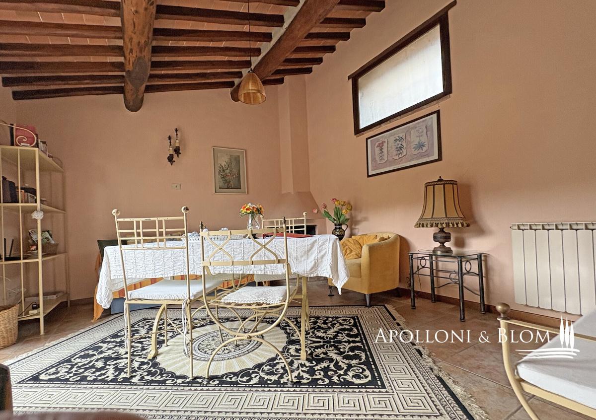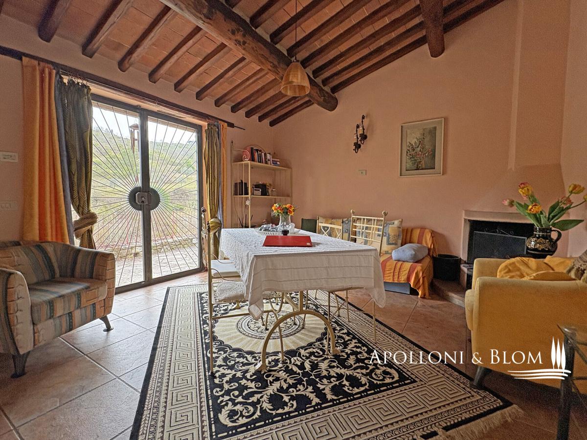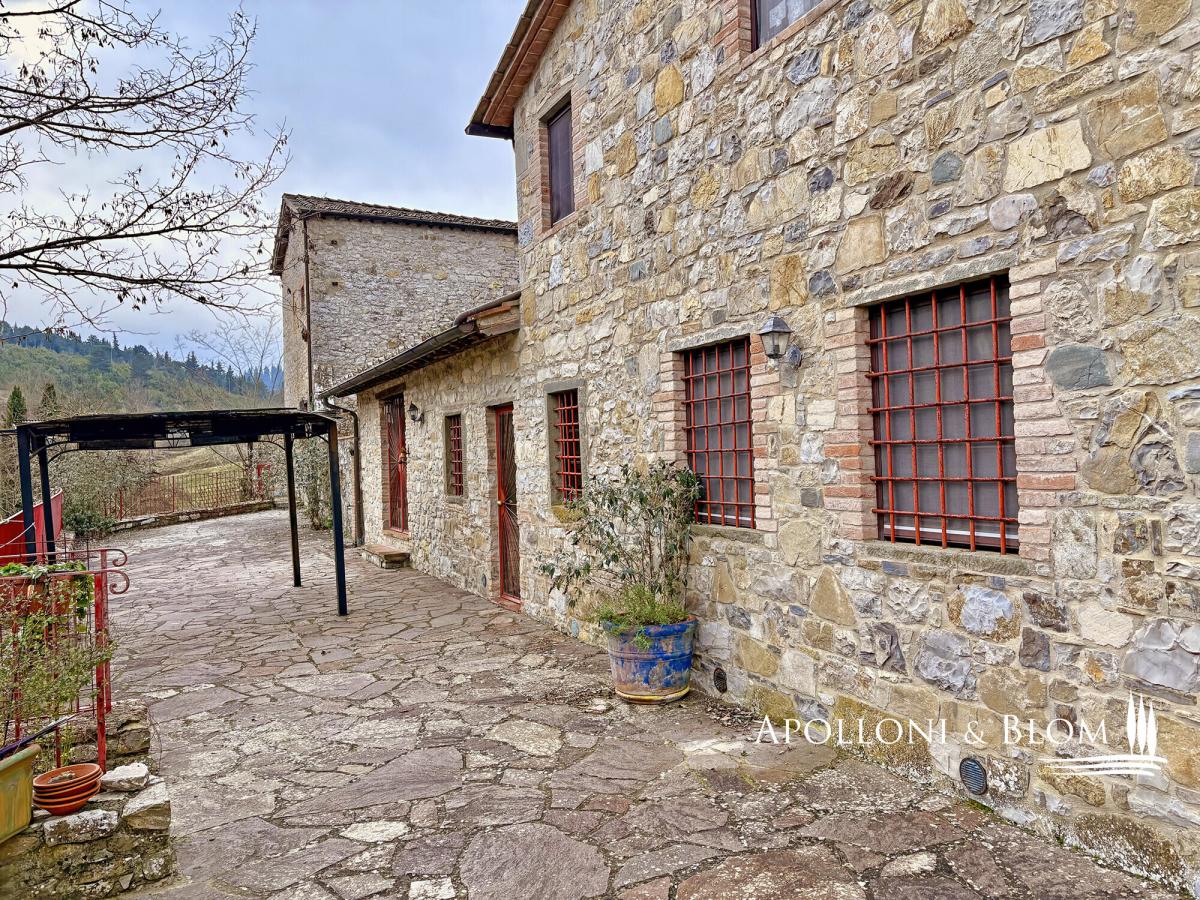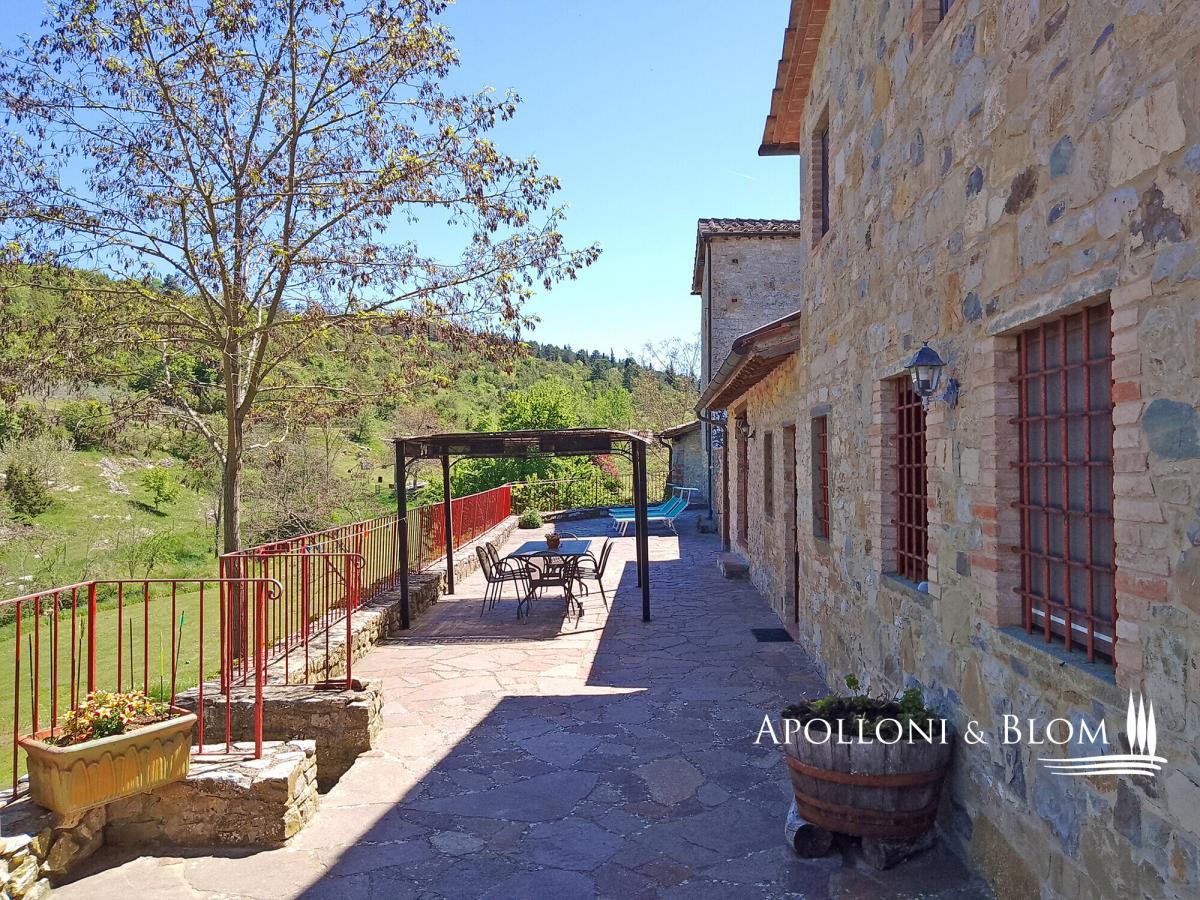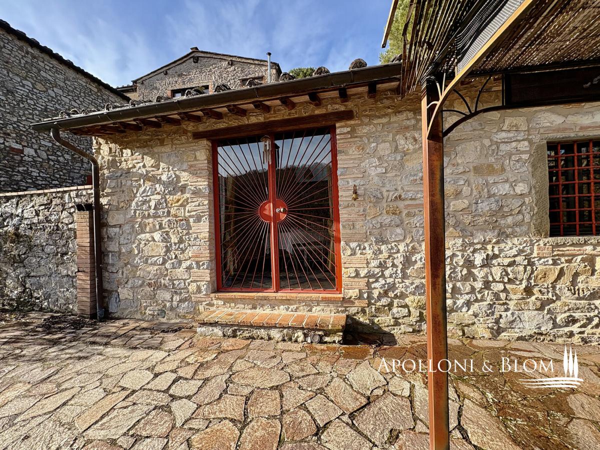 In a country borgo surrounded by a natural reserve, charming renovated stone building, furnished, terrace and land for sale in Castellina in Chianti. Nestled within an ancient hamlet enveloped by a protected nature reserve, this distinguished fifteenth-century residence exemplifies architectural restoration at its finest, seamlessly blending Tuscan authenticity with contemporary comfort. Meticulously restored whilst honouring its original character, the property boasts impeccably preserved period façades and generous windows that bathe each room in natural light. Exposed timber beam ceilings bear witness to five centuries of history, whilst panoramic vistas across Mediterranean scrubland and woodland provide an atmosphere of absolute tranquillity. The accommodation extends to 110 square metres (1,184 square feet) across two levels. The ground floor presents a luminous open-plan reception room comprising a superbly appointed kitchen and a spacious drawing room enhanced by a rather splendid fireplace. This level is completed by a double bedroom with adjacent en-suite facilities. The upper floor, housed within the property's charming tower, offers a most generous principal bedroom with private bathroom—an intimate and secluded space that celebrates the building's original architecture. The front terrace, sheltered by a gazebo, proves ideal for alfresco dining whilst admiring the rolling landscape. A separate utility room, accessed from the terrace, houses the washing machine and all essential services including water, electricity, and gas heating. The estate encompasses approximately one hectare (2.47 acres) of private grounds, set amongst meadows, scrubland and woodland, with access via gates and private parking facilities. Offered fully furnished on a turnkey basis, this residence presents the perfect solution for those seeking an exclusive retreat in the heart of Chianti: ready for immediate occupation either as a principal residence or as a rather distinguished holiday home, set within surroundings of exceptional natural beauty and complete seclusion. PROPERTY Ref: CNT3484 Location: Castellina in Chianti, Province: Siena, Region: Tuscany Type: 110 sqm/1184 sq ft two-level stone country house with terrace and land Year of construction: 1400 Year of restoration: 2007 Conditions: excellent Garden: 1 hectare/2.47 acres of park-like garden with pines; possibility to purchase additional land Parking: 2 uncovered parking seats Utilities: Fixed telephone network: unavailable Internet: cable, mobile and satellite TV Heating: LPG Water: mains city supply Electricity: available Water waste: private Gate Distance from services: 3 km/1,5 miles Distance from main airports: Florence 52 km/32 miles, Pisa 102 km/63 miles, Rome Fiumicino 260 km/162 miles Layout: Ground Floor: living room with kitchen, 1 bedroom, 1 bathroom; laundry room and utility room with external access First Floor: 1 bedroom, 1 bathroom- garden