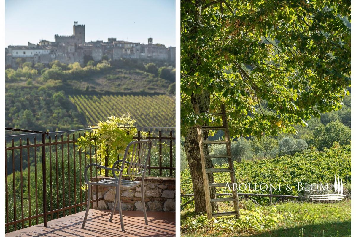 Ancient stone borgo renovated with 25 bedrooms, private church, swimming pool, vineyard, and olive grove for sale in Castellina in Chianti. Perched upon the gentle hills of Chianti, Borgo La Rocca presents a rare opportunity to acquire a historic hamlet of exceptional character and provenance. Comprising three immaculately restored buildings and a consecrated chapel—still in use today for weddings, baptisms, and Christian celebrations—the estate embodies the very essence of Tuscan heritage. Encompassing approximately 1,150 sq m of internal accommodation and set within 23 hectares of organically cultivated vineyards, olive groves, and woodland, the property enjoys sweeping views extending to the Rocca of Castellina in Chianti. The manor residence, constructed in local stone in the early 1800s, is arranged across four storeys above a traditional vaulted cellar. Interiors have been restored with both authenticity and comfort in mind, offering a series of elegant salons and drawing rooms for entertaining, formal dining halls with a professional-grade kitchen, a panoramic terrace, and 16 en suite bedrooms. An independent apartment, with two additional bedrooms, provides further flexibility. All bedrooms are equipped with private bathrooms and air conditioning. Beyond the interiors, the estate is graced with beautifully landscaped gardens that frame the property in seasonal colour and fragrance. At their heart lies a panoramic swimming pool, thoughtfully positioned to capture the uninterrupted vistas across the rolling vineyards and olive groves towards the Rocca of Castellina in Chianti—an exceptional setting for moments of leisure and conviviality. The grounds include 2.8 hectares of Chianti Classico and Toscana IGT vineyard, together with a productive olive grove and woodland. The estate lies in a most enviable position—just 20 minutes from Siena and little more than half an hour from Florence—making it ideally situated to enjoy one of Tuscany’s most celebrated landscapes. Currently positioned within the high-end agriturismo market, Borgo La Rocca represents a property of prestige and versatility: equally suited as a private family residence, an exclusive hospitality destination, or a distinguished corporate retreat. PROPERTY REf: CNT2651 Location: Castellina in Chianti, Province: Siena, Region: Tuscany Type: 23 ha/56,8 acres farmstead with vineyards, olive grove and an ancient 1150 sq m/12378 sq ft country hamlet featuring a private chapel, a 900 sqm/9687 sq ft four-story manor house with restaurant, 16 ensuite bedrooms and a 2-bedroom apartment, an annex restored with a 3-bedroom apartment and deposit rooms, swimming pool and landscaped park Annexes: 80 sq m/861 sq ft private church; a two-story separate annex of 170 sq m/1829 sq ft renovated into a first-floor 3-bedroom apartment and warehouses on the ground floor Year of construction: 1800 Year of restoration: 2009 Conditions: excellent Land: 23 ha/56,8 acres of agricultural land, including 2.8 ha/6.9 acres of 10-year-old vineyard, some 3.5 ha/8.6 acres of olive grove with some 800 trees, certified organic cultivation and forest Swimming pool: 14x7m with terracotta paved sundeck Utilities: Fixed telephone network: available Internet: available Heating: methane + electric heating pump Water: mains city supply Electricity: available Gated community Air conditioning Distance from services: 1,5 km Distance from main airports: Florence 50 km, Pisa 100 km Layout: Manor Building Ground Floor: lounges overlooking the loggia, basement cellar dug into the rock, kitchen, independent apartment with living room, 2 bedrooms and 1 bathroom First and Second floors: 16 bedrooms with ensuite bathrooms Guest cottage Ground Floor: deposit and storage rooms First Floor: living room, kitchen, 3 double bedrooms and 3 bathrooms- garden