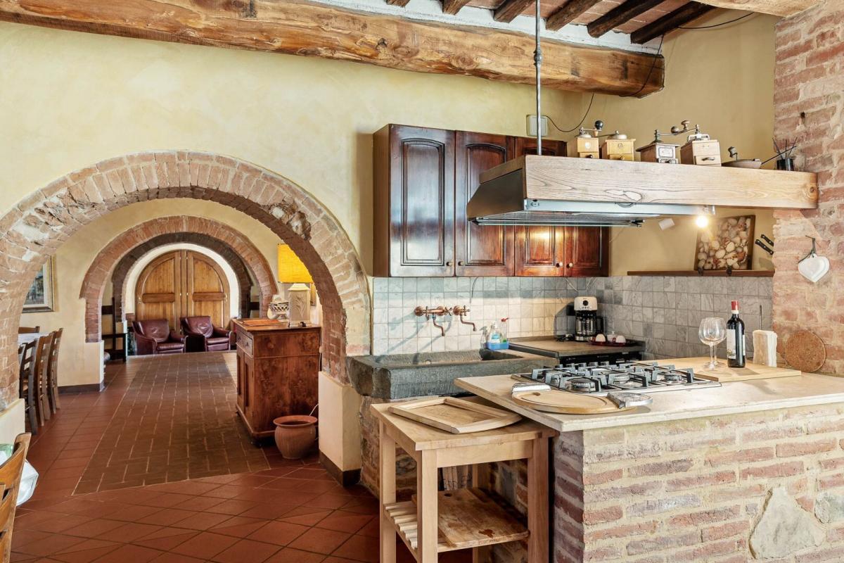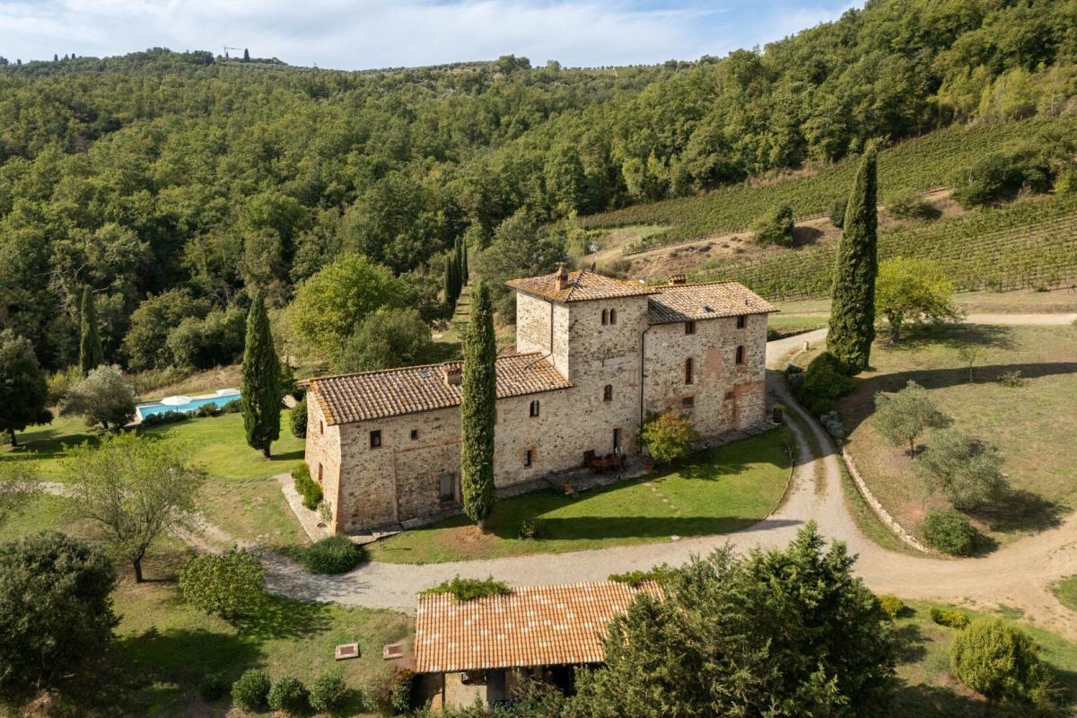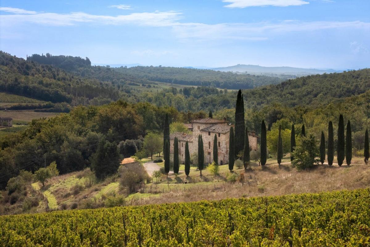 With a 14th-century tower, restored with air conditioning, solar panels, swimming pool, vineyards for sale in Chianti Classico, Siena. Nestled in the fascinating scenery of Chianti Classico, between Gaiole in Chianti and Siena, a 14th-century fortress with tower transformed into a farmhouse during the 17th century, today finely restored into a charming country villa with guest cottage and pool. The facades feature ancient stone, porticos and loggias harmoniously creating a fascinating residence full of character and history. The ground floor houses several living areas well connected with brick arches, two kitchens with direct access to the pergola and the garden, an office and a laundry. The upper floors present two living rooms with a fireplace, a high ceiling study on top of the tower along with marvelous wooden beams, spectacular scenarios and views from the windows, completed by a total of eight bedrooms. A separate two-story cottage has been fully restored into a 4-bedroom guest house. In 2011 a solar panel system has been installed and guarantees electricity supply. The 26 hectares (64 acres) of agricultural land surround the property with is 5 hectares (12.3 acres) of organic vineyards, an olive grove with 150 trees, arable land and private forest with mature oaks. The vineyards were planted in 2004/2005 with Merlot, Cabernet Franc, and Sangiovese vines with an annual production of some 20.000 bottles of IGT Toscana wines. The property is owned by a private company managing the agricultural land and tourism hospitality renting the towered house as a private villa for exclusive holidays and reaching 20 weeks of vacation rental per year. Set just a stroll away from all local amenities and historical sites, it is ready to live perfect as a private exclusive residence in the very heart of Tuscany, to enjoy all year round and for vacations. PROPERTY Ref: CNT1267 Location: Castelnuovo Berardenga, Province: Siena, Region: Tuscany Type: 26 hectares (64,2 acres) farmstead with vineyards and olive grove including a swimming pool, a 545 sq m/5866 sq ft former farmhouse with a 14th-century tower restored in several units and bedrooms, a separate 145 sq m 1560 sq ft two-story former barn restored as a guest cottage, landscaped gardens, vineyards and agricultural land Land: 26 hectares (64,2 acres) of agricultural land consisting of 4 ha/9.88 acres of arable land, 2,5 ha/ 6,1 acres of pasture, forest, olive grove with 150 plants, approx. 5 ha/12.35 acres of organic IGT Toscana vineyards, cultivated with 30% Merlot, 30% Cabernet Franc, 18% Sangiovese vines and remaining Alicante Bouchet with an annual potential of roughly 20.000 bordolese-size bottles Swimming Pool: 13,5x5 m in-ground pool Utilities: Fixed telephone line: available Internet/Wi-Fi: available Heating: LPG Water: mains water supply + 1 well Electricity: available + 20 kw solar panels Air conditioning system Distance to services: 5 km/3 miles Distance to main airports: Firenze 97km/60 miles, Perugia 90 km/60 miles Access: 1.5 km/1 mile gravel road Layout: Ground Floor: a spacious open concept living area with dining and kitchen, a guest toilette. With separate entrance a second kitchen with dining room and an office with laundry First Floor: 3 separate access, with living areas with kitchen, and a total of 8 bedrooms and 6 bathrooms Second floor: top of the tower with an open living space with a study Cottage Ground Floor: living room with kitchenette and fireplace, 2 bedrooms with ensuite First Floor: living room with kitchenette, 1 ensuite bedroom, 2 bedrooms, 1 family bathroom Year of construction: 1300 Year of restoration: 1999– solar panels installed in 2011 Conditions: excellent- garden