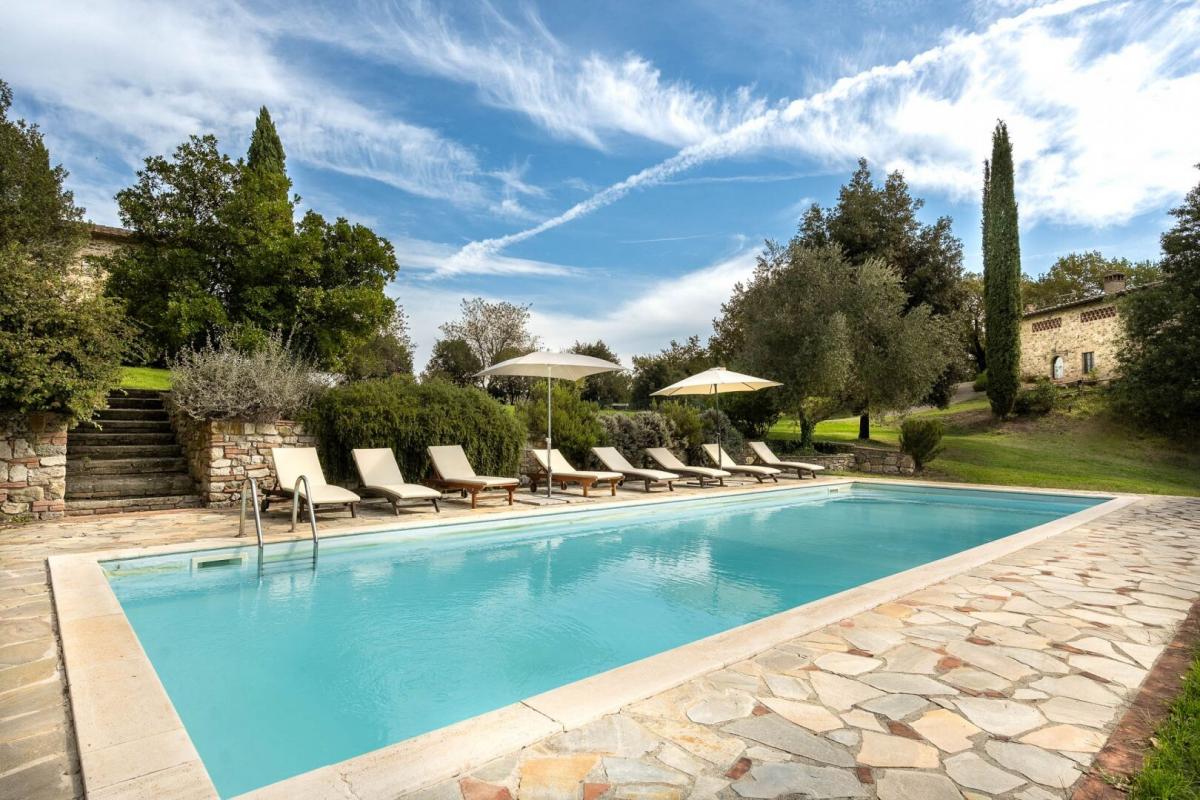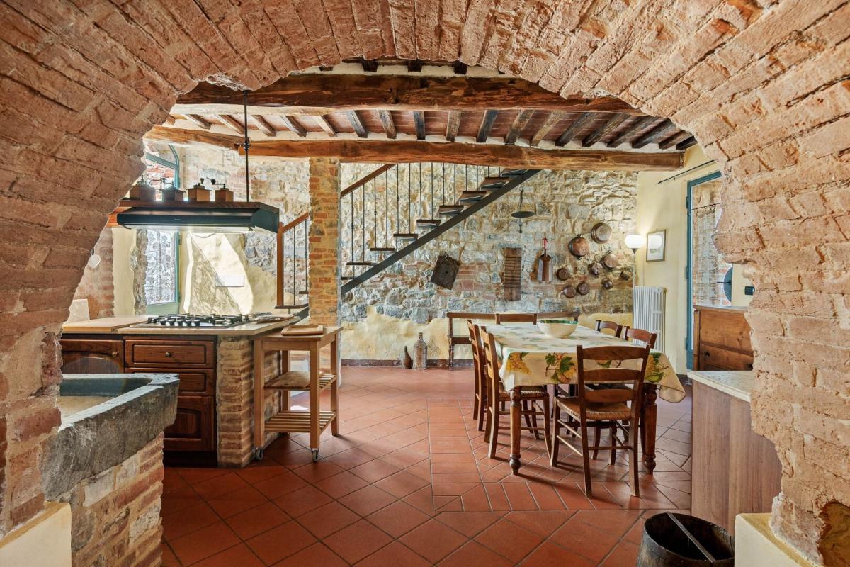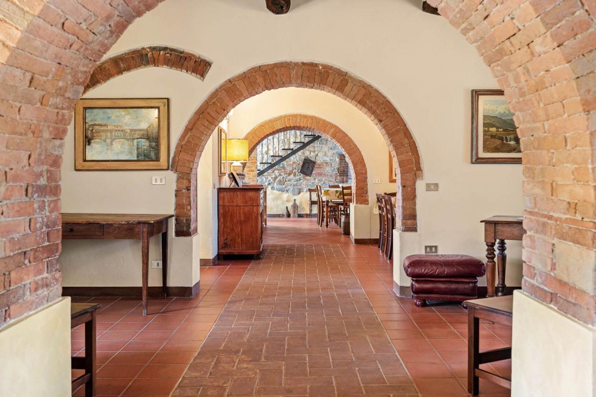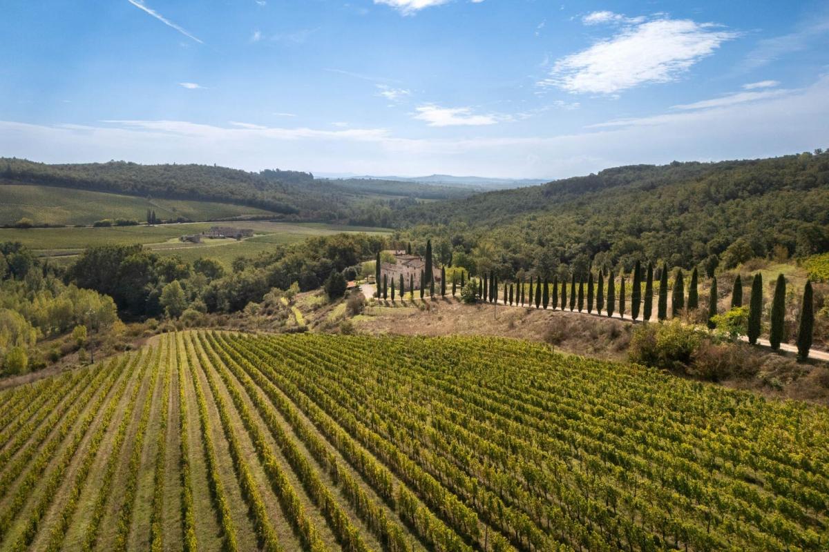 With a 14th-century tower, restored with air conditioning, solar panels, swimming pool, vineyards for sale in Chianti Classico, Siena. Nestled in the fascinating scenery of Chianti Classico, between Gaiole in Chianti and Siena, a 14th-century fortress with tower transformed into a farmhouse during the 17th century, today finely restored into a charming country villa with guest cottage and pool. The facades feature ancient stone, porticos and loggias harmoniously creating a fascinating residence full of character and history. The ground floor houses several living areas well connected with brick arches, two kitchens with direct access to the pergola and the garden, an office and a laundry. The upper floors present two living rooms with a fireplace, a high ceiling study on top of the tower along with marvelous wooden beams, spectacular scenarios and views from the windows, completed by a total of eight bedrooms. A separate two-story cottage has been fully restored into a 4-bedroom guest house. In 2011 a solar panel system has been installed and guarantees electricity supply. The 26 hectares (64 acres) of agricultural land surround the property with is 5 hectares (12.3 acres) of organic vineyards, an olive grove with 150 trees, arable land and private forest with mature oaks. The vineyards were planted in 2004/2005 with Merlot, Cabernet Franc, and Sangiovese vines with an annual production of some 20.000 bottles of IGT Toscana wines. The property is owned by a private company managing the agricultural land and tourism hospitality renting the towered house as a private villa for exclusive holidays and reaching 20 weeks of vacation rental per year. Set just a stroll away from all local amenities and historical sites, it is ready to live perfect as a private exclusive residence in the very heart of Tuscany, to enjoy all year round and for vacations. PROPERTY Ref: CNT1267 Location: Castelnuovo Berardenga, Province: Siena, Region: Tuscany Type: 26 hectares (64,2 acres) farmstead with vineyards and olive grove including a swimming pool, a 545 sq m/5866 sq ft former farmhouse with a 14th-century tower restored in several units and bedrooms, a separate 145 sq m 1560 sq ft two-story former barn restored as a guest cottage, landscaped gardens, vineyards and agricultural land Land: 26 hectares (64,2 acres) of agricultural land consisting of 4 ha/9.88 acres of arable land, 2,5 ha/ 6,1 acres of pasture, forest, olive grove with 150 plants, approx. 5 ha/12.35 acres of organic IGT Toscana vineyards, cultivated with 30% Merlot, 30% Cabernet Franc, 18% Sangiovese vines and remaining Alicante Bouchet with an annual potential of roughly 20.000 bordolese-size bottles Swimming Pool: 13,5x5 m in-ground pool Utilities: Fixed telephone line: available Internet/Wi-Fi: available Heating: LPG Water: mains water supply + 1 well Electricity: available + 20 kw solar panels Air conditioning system Distance to services: 5 km/3 miles Distance to main airports: Firenze 97km/60 miles, Perugia 90 km/60 miles Access: 1.5 km/1 mile gravel road Layout: Ground Floor: a spacious open concept living area with dining and kitchen, a guest toilette. With separate entrance a second kitchen with dining room and an office with laundry First Floor: 3 separate access, with living areas with kitchen, and a total of 8 bedrooms and 6 bathrooms Second floor: top of the tower with an open living space with a study Cottage Ground Floor: living room with kitchenette and fireplace, 2 bedrooms with ensuite First Floor: living room with kitchenette, 1 ensuite bedroom, 2 bedrooms, 1 family bathroom Year of construction: 1300 Year of restoration: 1999– solar panels installed in 2011 Conditions: excellent- garden