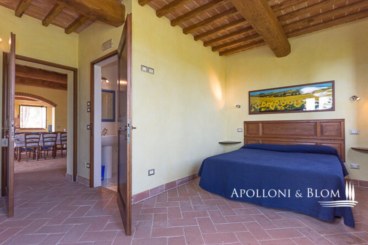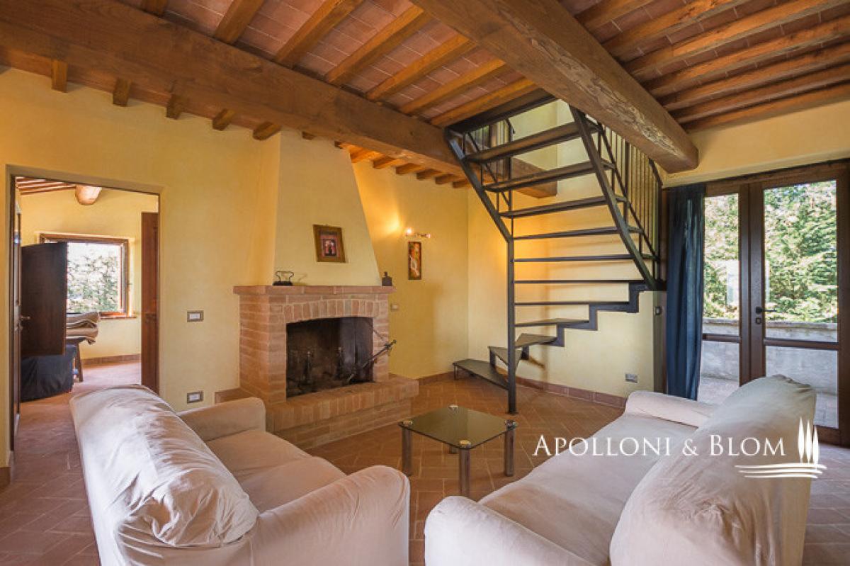 Splendid restored country house with elevator, swimming pool, garden, reception and panoramic terrace, for sale in Castiglione del Lago, Perugia. A few kilometers from Lake Trasimeno, surrounded by a private garden, this traditional Umbrian country house boasts its origins back to the 1600s, and after many years of neglect, it came back to full life in 2008 thanks to a complete reconstruction project, offering today a splendid, fully functional 4-bedroom residence full of charm and history, featuring all modern comforts: an elevator connects the three main floors, as well as stone stairs both inside and outside. A turret soars on the roof, and today houses a bedroom/study with a bathroom. The basement has a triple reception room with a fireplace and a courtesy bathroom. On the ground floor a large living room, a kitchen, all in rustic Umbrian style with exposed wooden beams, brick arches and floors in terracotta. All bedrooms have a private bathroom with Jacuzzi. The pool has a saltwater system. A new structure, accessible from the villa via a basement tunnel, offers a unique 350 sq m/3767 sq ft hall for bricolage or to be transformed to personal needs. On the rooftop, a splendid panoramic terrace. Ideal as a private residence or vacation property to rent. Location: Castiglione del Lago, Province: Perugia, Region: Umbria Type: 325 sq m/3498 sq ft 4-story country house with 4 bedrooms, swimming pool and garden coupled with a multipurpose hall and panoramic roof terrace connected via a basement tunnel to the villa Year of construction: 1600 Year of restoration: 2008 Conditions: excellent The property is owned by a company The location, for privacy, is approximate Please note all measurements cited are approximate Energy Efficiency Rating: B Utilities: Fixed telephone network: available Wi-Fi: availableHeating: LPG Water: city water supply Electricity: available Air conditioning Insulated roof Jacuzzi Swimming pool: 7 x 14 m with Roman-style step and salted water system Annex: newly built 350 sq m/3767 sq ft multipurpose hall with 2 bathrooms, on one level, and roof terrace Distance from services: 1 km/0.62 miles Distance from the main airports: Perugia 52 km/32 miles, Florence 143 km/88 miles, Rome 200 km/124 miles Layout: Ground floor: entrance hall, lounge area with fireplace, kitchen/dining room, 1 bedroom with en-suite bathroom First floor: sitting room with access to the attic, 2 bedrooms with en-suite bathrooms Attic: study/bedroom with a bathroom Basement: triple reception room with fireplace and a bathroom- garage