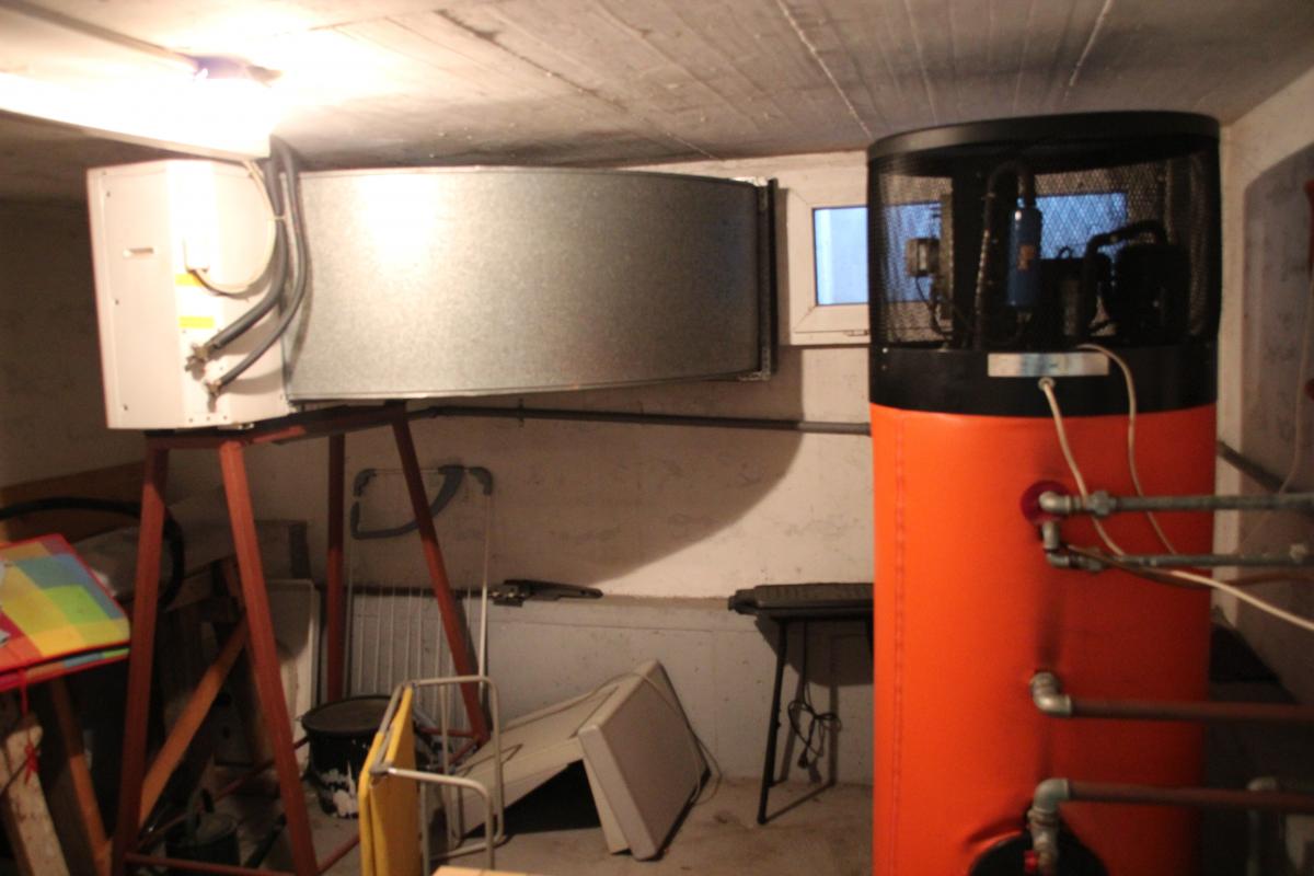 The central heating is on gas, there is floor heating in 2 bathrooms, in the utility room is a heat pump for water.