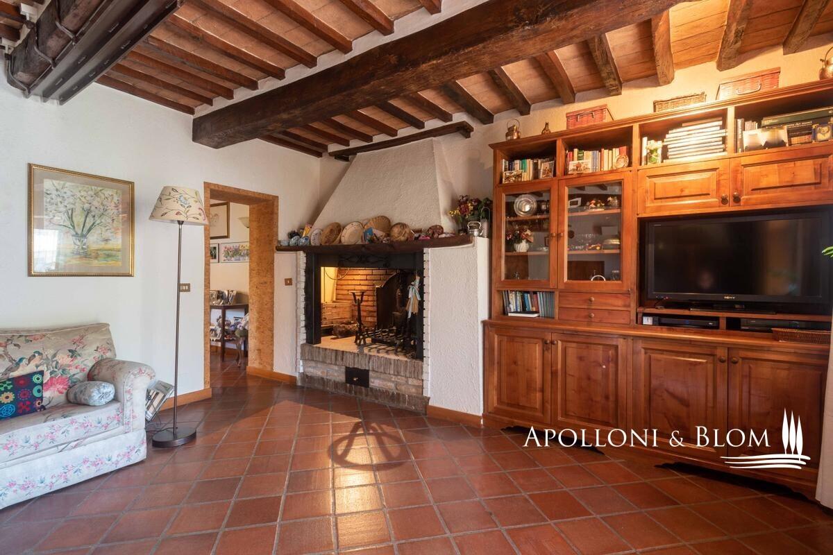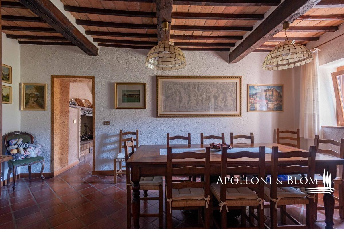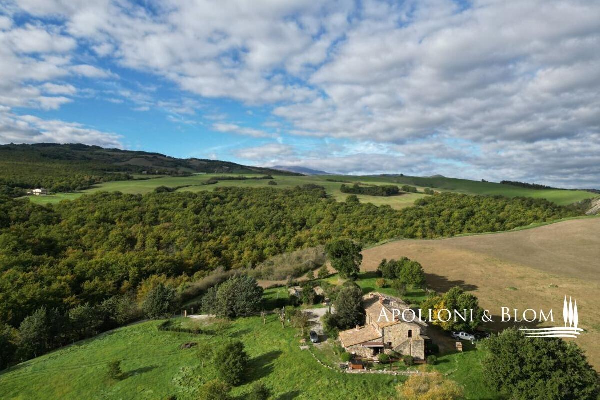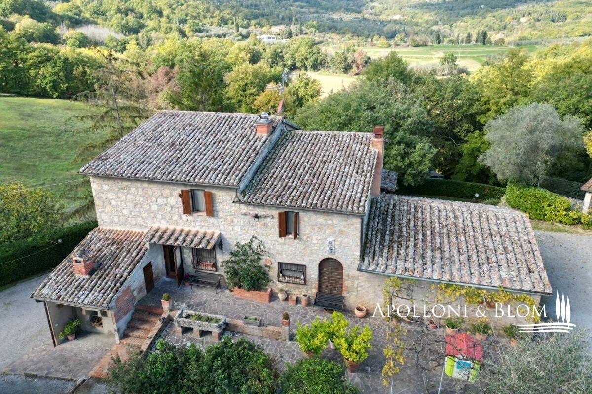 16-acres estate with ancient country home, olive grove, annexes to convert, vineyards to be replanted for sale in Cetona. Just a few steps from the historic heart of Cetona, in an enviable panoramic position with sweeping views across the Tuscan countryside, lies this charming farmhouse dating back to the nineteenth century. The residence, with its classic stone façade and timeless rustic character, extends to approximately 294 sqm (3,164 sq ft) arranged over three levels. The ground floor accommodates the living spaces, while the first floor houses the sleeping quarters with one master bedroom complete with en-suite bathroom, four additional bedrooms, and a family bathroom. Terracotta floors, beamed ceilings, wooden shutters and stone walls preserve the authentic Tuscan atmosphere throughout. The estate is complemented by three rural outbuildings, measuring 20 sqm (215 sq ft), 30 sqm (322 sq ft) and 70 sqm (753 sq ft), currently used as a woodshed, warehouse, and tool shed, yet offering scope for creative adaptation. Surrounding the farmhouse, some 6.5 hectares (16 acres) of private land unfold in a harmonious blend of olive groves with 170 mature trees, woodland, and fertile arable fields. Of particular note is the vineyard of approximately 1 hectare (2.47 acres), currently abandoned but offering excellent potential for replanting with quality varietals, thereby restoring a noble winemaking tradition to the estate. Given its rare position so close to the village yet immersed in tranquil countryside, this property is perfectly suited to transformation into an elegant private residence or an exclusive hospitality retreat, capturing the very essence of Tuscan living. PROPERTY Ref: CET2020 Location: Cetona, Province: Siena, Region: Tuscany Type: 294 sq m/3164 sq ft former farmhouse on 3 levels, 3 detached agricultural outbuildings, and 6.5 hectares/16 acres of exclusive land with olive grove Year of construction: 1800 Year of renovation: 1985 Condition: good Annex: 3 outbuildings of approx. 20 sq m/215 sq ft, 30 sq m/322 sq ft and 70 sq m/753 sq ft used respectively as a woodshed, warehouse and tools shed Land: approx. 6.5 hectares/16 acres, of which approx. 1 hectare/2.47 acres of currently abandoned vineyard, approx. 1 hectare/2.47 acres of olive grove with 170 plants, woodland and arable land Garage: approx. 30 sq m/322 sq ft External wooden window frames with double glazing and wooden shutters External wooden shutters Internal doors in honeycomb wood Utilities: Fixed telephone network: available Internet/Wi-Fi: available (via satellite dish) Heating: ecological multi-fuel boiler Water: mains city supply + 1 artesian well for irrigation Electricity: available Distance from services: 900 meters from the center of Cetona Distance from main airports: Perugia 69km, Florence 141km, Rome 169km Gravel road: approx. 250 meters Layout: Basement: thermal power plant, laundry, 2 cellars Ground Floor: living room with fireplace, dining room, kitchen, bath, 3 large rooms currently used for storage in the main body, garage in the main building, 2 warehouses in a separate building, woodshed in separate building First Floor: 5 bedrooms, one of which with en suite bathroom, hallway, bathroom- garage