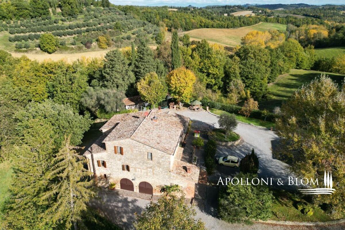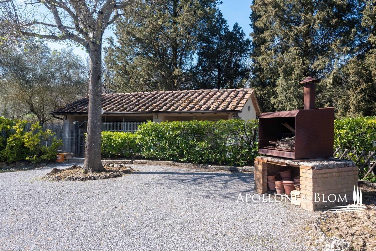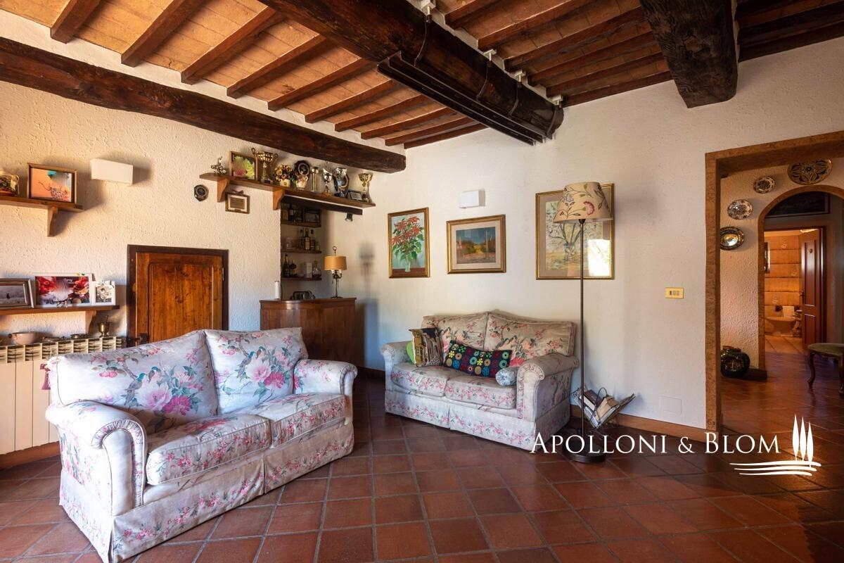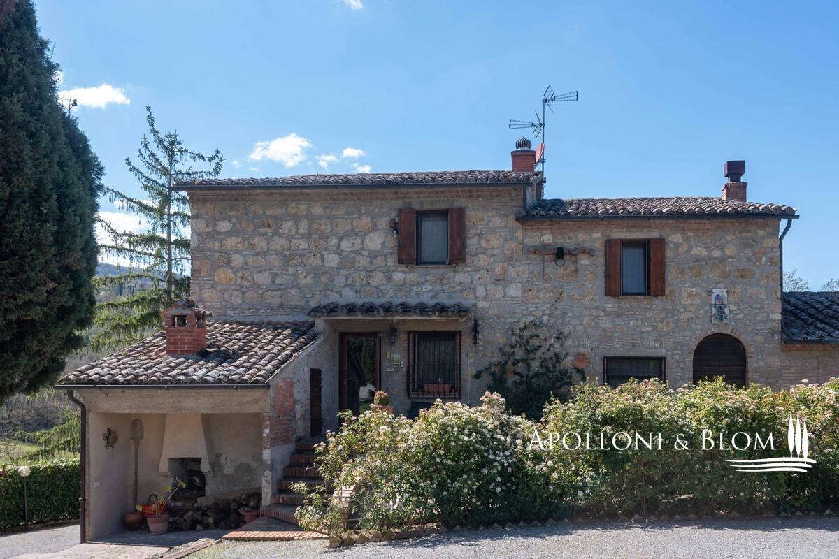 16-acres estate with ancient country home, olive grove, annexes to convert, vineyards to be replanted for sale in Cetona. Just a few steps from the historic heart of Cetona, in an enviable panoramic position with sweeping views across the Tuscan countryside, lies this charming farmhouse dating back to the nineteenth century. The residence, with its classic stone façade and timeless rustic character, extends to approximately 294 sqm (3,164 sq ft) arranged over three levels. The ground floor accommodates the living spaces, while the first floor houses the sleeping quarters with one master bedroom complete with en-suite bathroom, four additional bedrooms, and a family bathroom. Terracotta floors, beamed ceilings, wooden shutters and stone walls preserve the authentic Tuscan atmosphere throughout. The estate is complemented by three rural outbuildings, measuring 20 sqm (215 sq ft), 30 sqm (322 sq ft) and 70 sqm (753 sq ft), currently used as a woodshed, warehouse, and tool shed, yet offering scope for creative adaptation. Surrounding the farmhouse, some 6.5 hectares (16 acres) of private land unfold in a harmonious blend of olive groves with 170 mature trees, woodland, and fertile arable fields. Of particular note is the vineyard of approximately 1 hectare (2.47 acres), currently abandoned but offering excellent potential for replanting with quality varietals, thereby restoring a noble winemaking tradition to the estate. Given its rare position so close to the village yet immersed in tranquil countryside, this property is perfectly suited to transformation into an elegant private residence or an exclusive hospitality retreat, capturing the very essence of Tuscan living. PROPERTY Ref: CET2020 Location: Cetona, Province: Siena, Region: Tuscany Type: 294 sq m/3164 sq ft former farmhouse on 3 levels, 3 detached agricultural outbuildings, and 6.5 hectares/16 acres of exclusive land with olive grove Year of construction: 1800 Year of renovation: 1985 Condition: good Annex: 3 outbuildings of approx. 20 sq m/215 sq ft, 30 sq m/322 sq ft and 70 sq m/753 sq ft used respectively as a woodshed, warehouse and tools shed Land: approx. 6.5 hectares/16 acres, of which approx. 1 hectare/2.47 acres of currently abandoned vineyard, approx. 1 hectare/2.47 acres of olive grove with 170 plants, woodland and arable land Garage: approx. 30 sq m/322 sq ft External wooden window frames with double glazing and wooden shutters External wooden shutters Internal doors in honeycomb wood Utilities: Fixed telephone network: available Internet/Wi-Fi: available (via satellite dish) Heating: ecological multi-fuel boiler Water: mains city supply + 1 artesian well for irrigation Electricity: available Distance from services: 900 meters from the center of Cetona Distance from main airports: Perugia 69km, Florence 141km, Rome 169km Gravel road: approx. 250 meters Layout: Basement: thermal power plant, laundry, 2 cellars Ground Floor: living room with fireplace, dining room, kitchen, bath, 3 large rooms currently used for storage in the main body, garage in the main building, 2 warehouses in a separate building, woodshed in separate building First Floor: 5 bedrooms, one of which with en suite bathroom, hallway, bathroom- garage