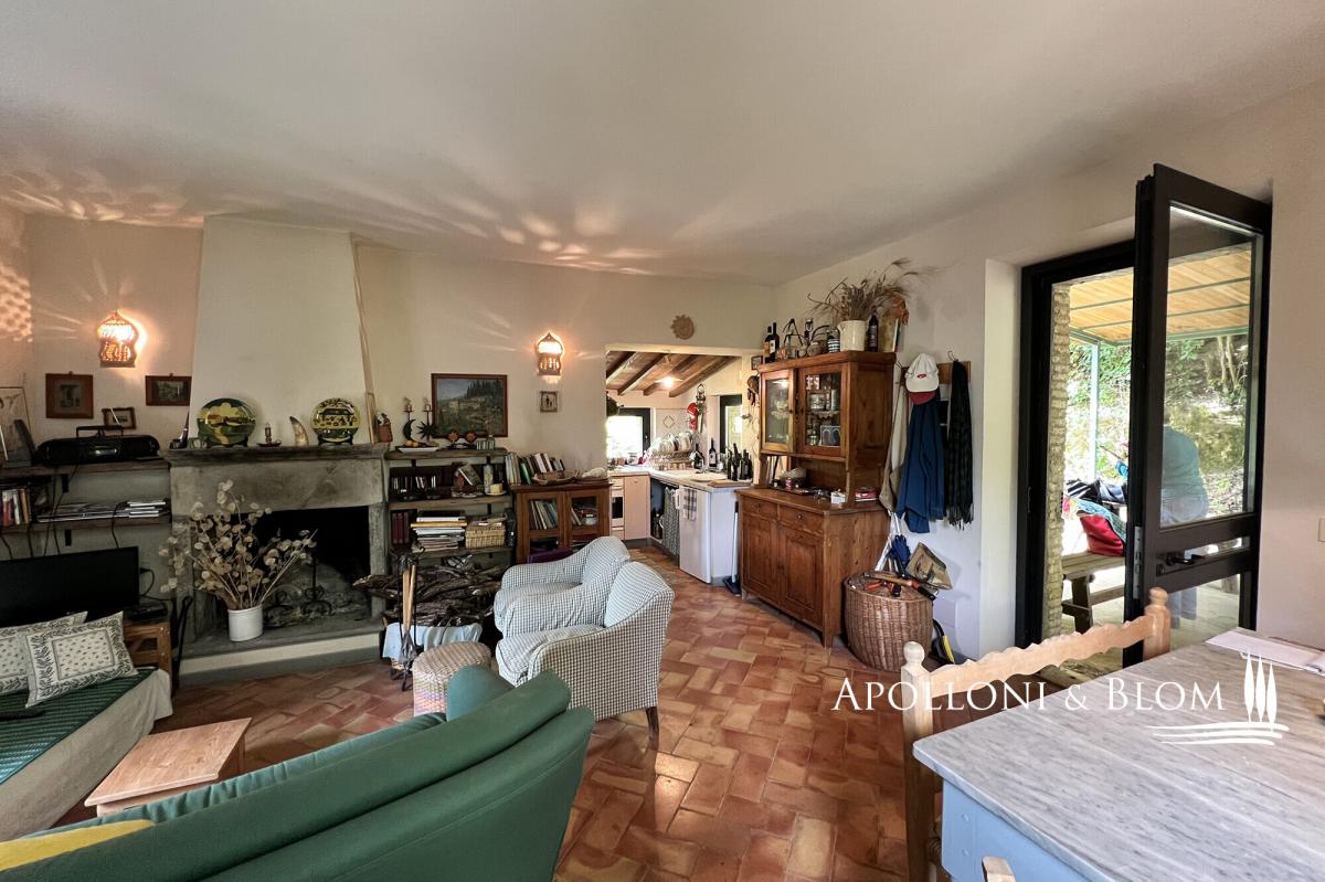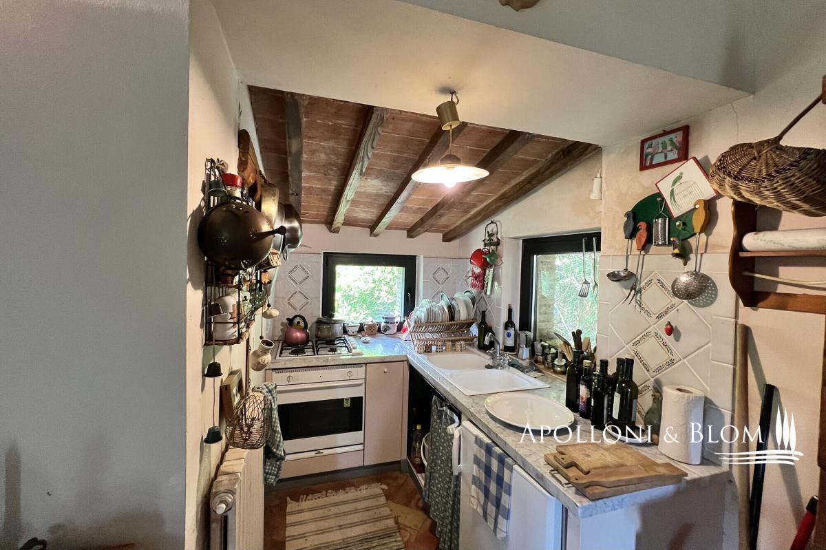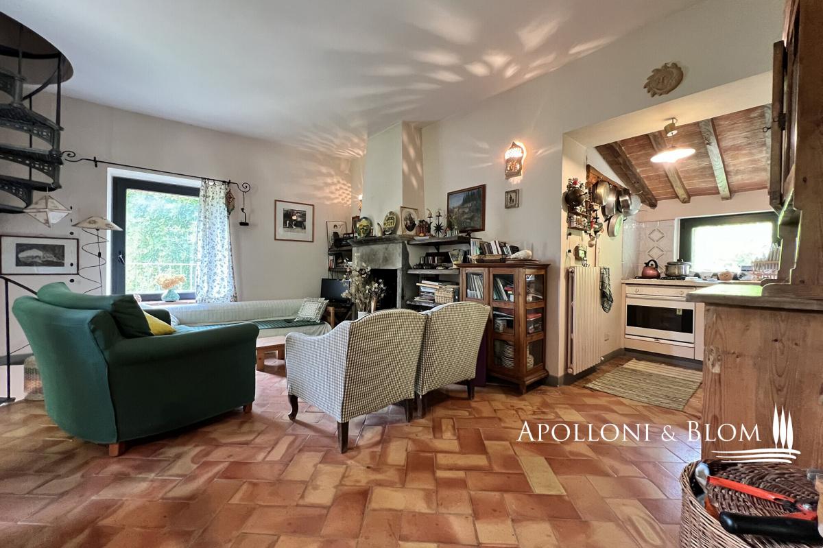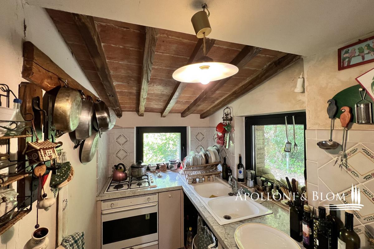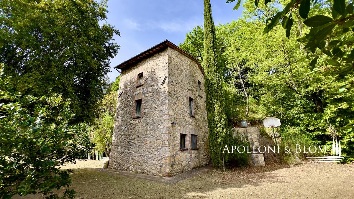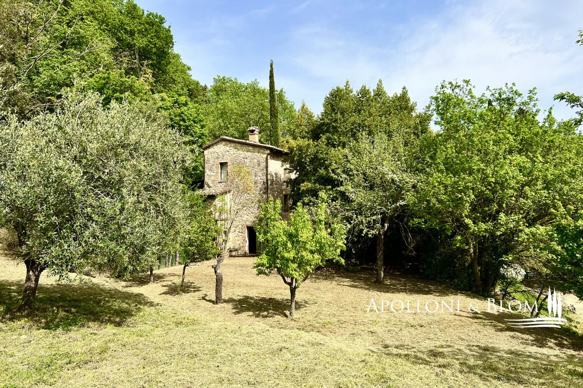 Surrounded by mature trees, wisteria and olive grove, countryhouse with original stone facades for sale near Cetona, Siena. Nestled in the green Tuscan countryside south of Siena, surrounded by oaks, cypresses and a pergola with wisteria plants, countryhouse Il Forte is the result of a meticulous restoration. It spreads over three levels boasting original stone facades and housing today an elegant country residence with rustic charm, perfect both for year-round living or vacation. The ground floor has an entrance from a covered pergola, ideal for al fresco dining, and an open-plan living area with terracotta floors, a stone fireplace, a typical kitchen with travertine worktops and garden views. A wrought-iron spiral staircase connects the other two floors. Upstairs a master bedroom offers high exposed wood-beamed ceilings, parquet floors, and ensuite bathroom. Downstairs a living area, also used as a guest room, has direct access to the garden and a bathroom. Ready to move in, it has an insulated roof, double-glazed windows and doors, and a recently installed brand new LPG boiler. Strategic location just 5 km from the town of Cetona with restaurants, stores and all services, a few minutes from the most important Etruscan sites, Chiusi Lake, Città della Pieve, the vineyards of Montepulciano, the thermal waters of Chianciano Terme and the A1 highway just 8 km away. PROPERTY Ref: CET2978 Location: Cetona, Province: Siena, Region: Tuscany Type: 113 sq m/1216 sq ft country house with garden Year of construction: late 1400 Conditions: good Garden: 2200 sq m/23680 sq ft/0.5 acres featuring 20 olive trees, oaks, cypress and fruit trees Parking: outdoor parking area Utilities: Fixed telephone network: available Internet: available Heating: LPG tank + boiler installed in 2021 Water: mains city supply Electricity: available Distance from services: 5 km Distance from main airports: Perugia 75km, Florence 120km, Rome 210km Gravel road: 1km Layout: Basement Floor: living room/guest quarters with 1 technical room/storage Ground Floor: covered pergola, living room with kitchen First Floor: 1 double bedroom, 1 bathroom- garden