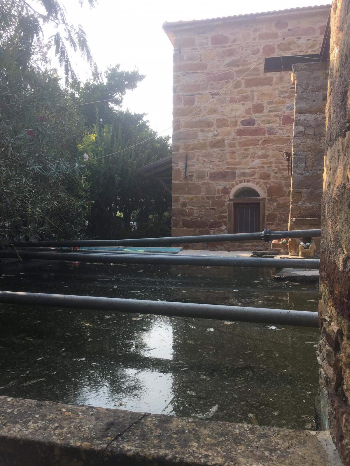 The garden is 100m2 and the common area is 420m2 and with orange trees a total of 791m2 with the potential of a 280m2 building and another part which is 1444m2 and not aloud to have any buildings and the views are 360° and you can see the river passing by and all the Perivoli area.