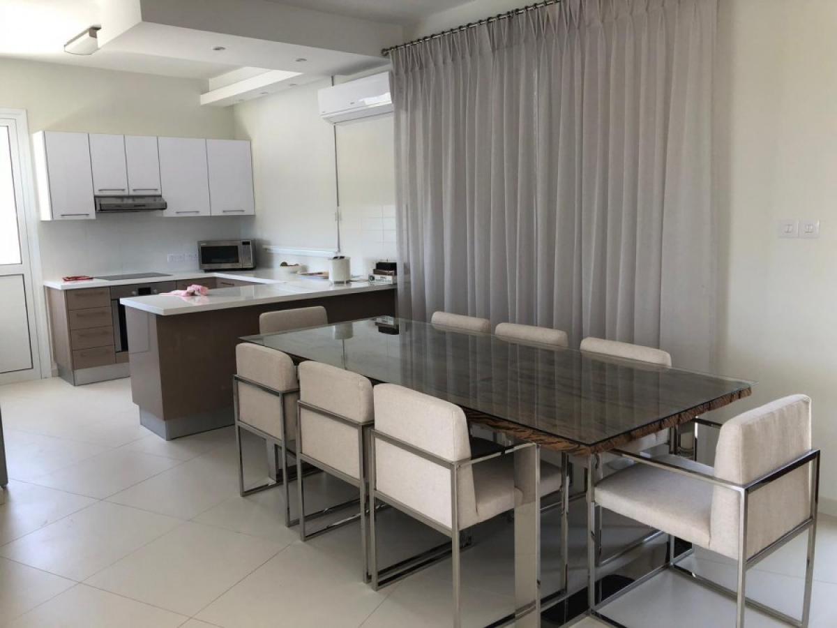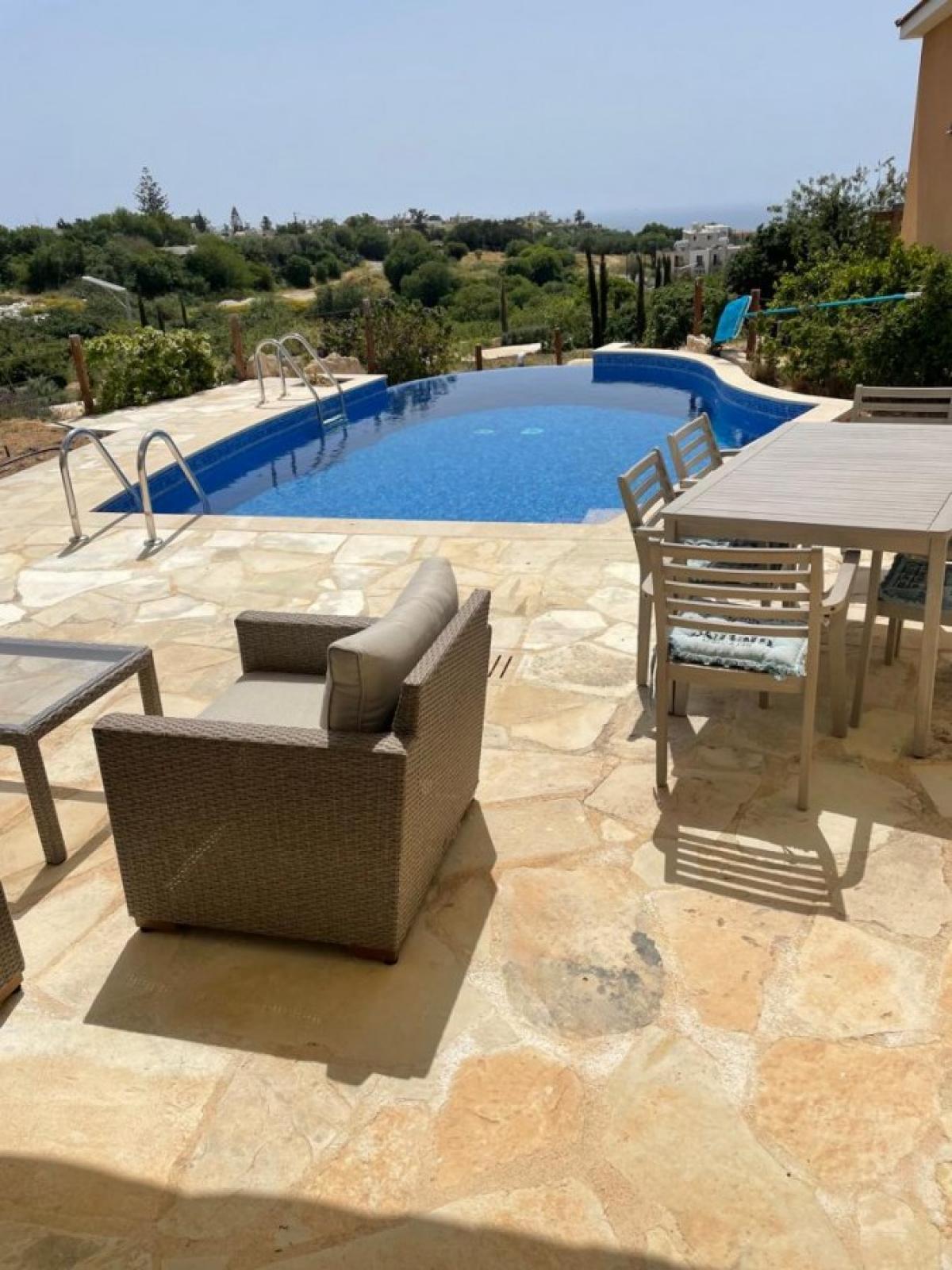 This unique 3 bedroom 3 bathroom villa is ideally located on a hilltop just a few minutes walk from the west coast of Paphos and the blue waters of the Mediterranean Sea. The exterior and interior of these luxurious Mediterranean-style homes have a relaxing contemporary design. All living spaces have direct access to the large verandas and terraces surrounding the houses. The floor plans are designed in an open style, which emphasizes the interior design and also allows the sun's rays to penetrate inside. Country yards are popular with stone walkways and fountains. The Mediterranean tradition of al fresco family dining has been revisited with outdoor seating and plenty of shade. On the territory of the villa there is an infinity pool overlooking the sea and a barbecue area.