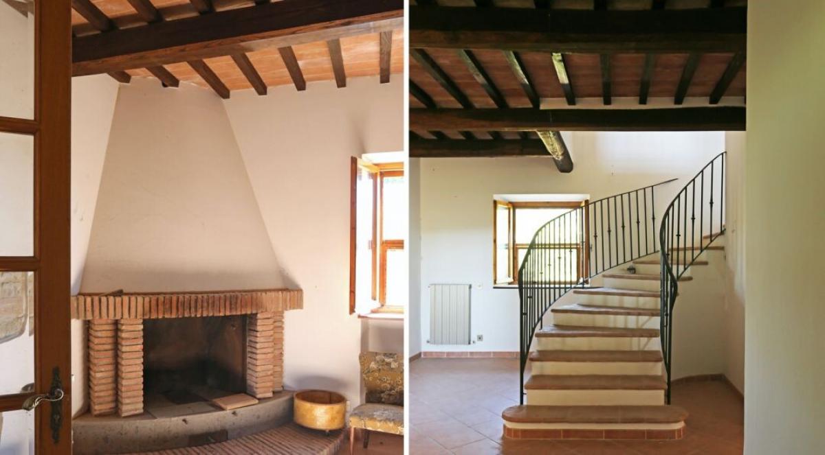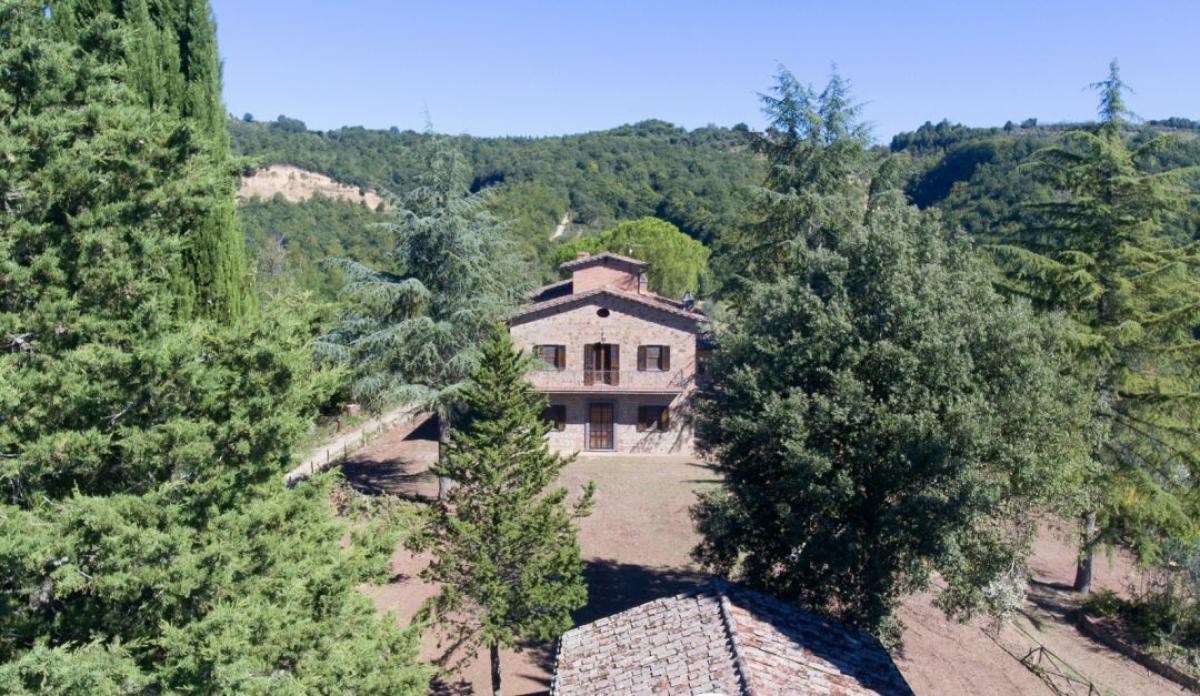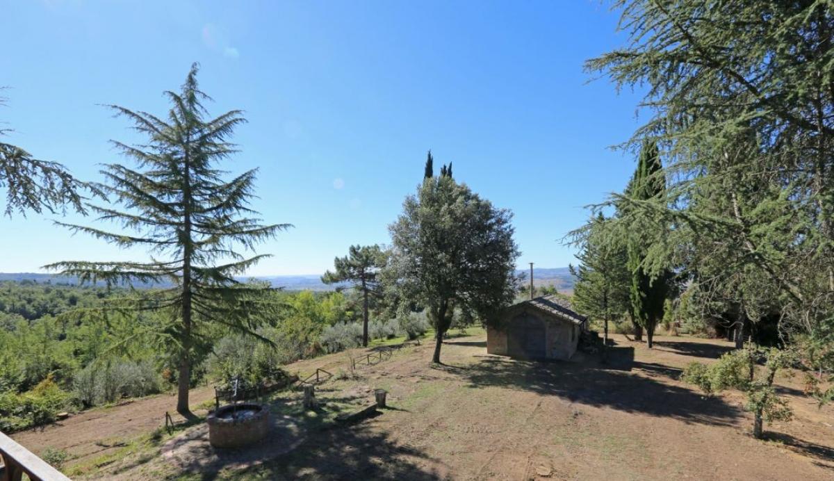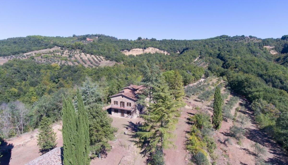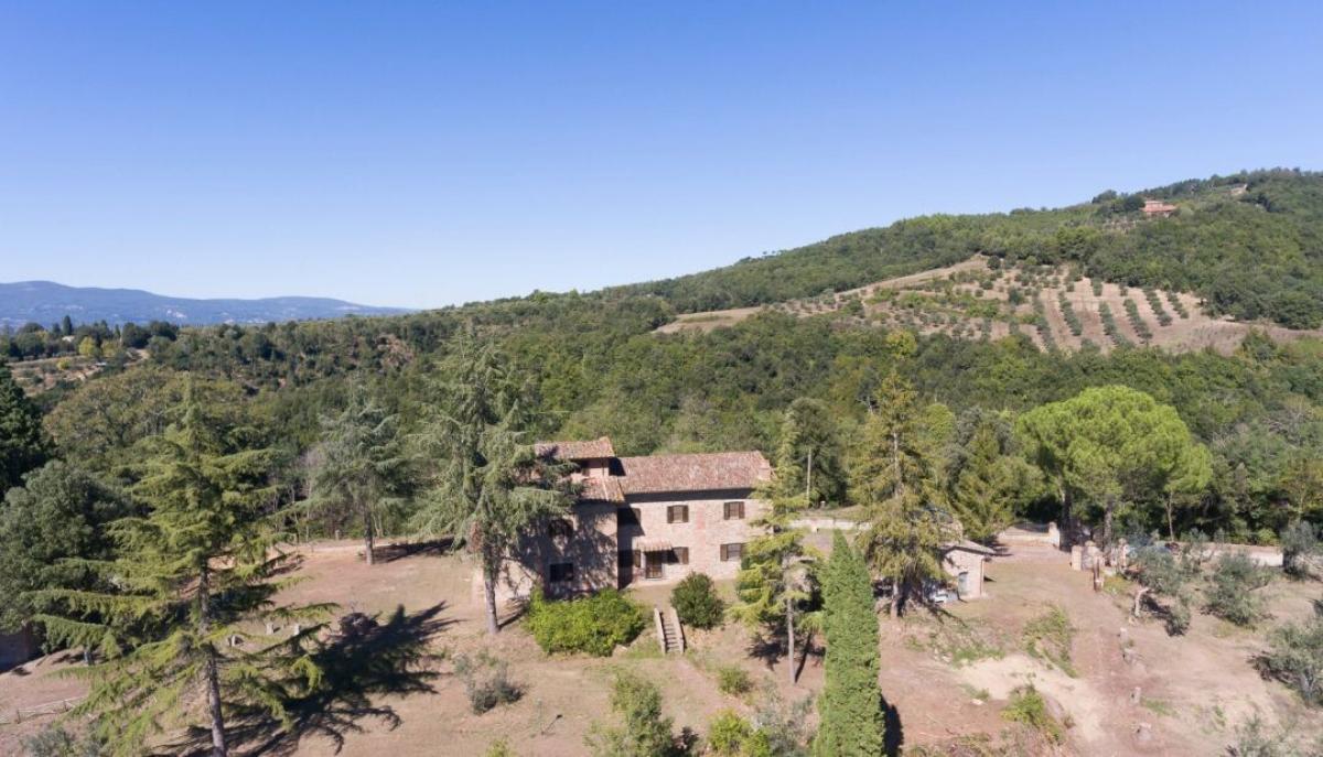 Stone country house with oligomineral water spring, olive grove and forest for sale in Città della Pieve, Perugia. In the superb hills on the border between Tuscany and Umbria, 4 km from Città della Pieve and 15 minutes' drive from San Casciano dei Bagni to the west and Lake Trasimeno to the east, a region where water is a manor element along with unspoiled woods and cultivated olive groves. In a spectacular panoramic and private location, easily reached by a short country road, surrounded by 7.61 hectares of private ground with forest, meadow, olive grove and a natural spring of oligomineral water, Casale La Sorgente is a former two-story farmhouse built in stone in the early 1900s, featuring a turret, an outdoor courtyard paved in terracotta, two separate stone buildingsand a tuff cave. Completely renovated in the 1990s thanks to the meticulous work of talented local master craftsmen, it boasts raw stone facades, gabled roofs with terracotta tiles, ceilings with exposed wooden beams, handmade terracotta floors, perfectly maintained and presenting a living area on the ground floor and six bedrooms on the first floor. The former barn in front of the central courtyard has been recovered into a cottage with living room with fireplace and a bathroom, while the second building used as a shed still retains a tuff cave. An 80-meter-deep artesian well, the spring of oligomineral spring water and a rainwater collection tank provide full supply for both domestic and irrigation use. Possibility of buildings extension of further 90 sq m7 sq ft, in-ground swimming construction and additional 8 hectares of land bordering the property. Because of its dominant position, the presence of oligomineral water and its potential for expansion, Casale La Sorgente is a property that has all the characteristics for a farm company with agritourism to host tourists for their vacations or as aprivate residence to live with family and friends. PROPERTY Ref: CDP526 Location: Citta della Pieve Province: Perugia, Region: Umbria Type: 380 sq m/4,090 sq ft former stone farmhouse with cottage, annex, cave, private land with olive grove – possibility of building and land expansion Annexes: 37 sq m/398 sq ft cottage with a sitting room with fireplace and 1 bathroom, approx. 55 sq m/592 sq ft barn used as deposit Year of construction: 1900 Year of restoration: 1995 Conditions: good, in need of some general updating Land: 7,61 hectares/18,80 acres of land with garden and courtyard, 1 ha/2,47 acres of forest, 1.9 ha/2,23 acres of arable land and 4 ha/9,88 acres of olive grove with 238 trees - possibility to buy the land bordering olive grove for additional 8 hectares/19,76 acres Utilities: Fixed telephone network: available Internet/Wi-Fi: available Heating: LPG Water: 1 rainwater tank and 1 artesian oligomineral spring water well 80 meters deep Electricity: available Distance from services: 6 km Distance from main airports: Perugia 59 km, Florence 156 km, Rome 177 km Layout: Ground floor: entrance hallway and staircase, living room, dining room, kitchen with dining, 2 bathrooms, storage room First Floor: living room, 6 bedrooms, 2 bathrooms Second/Fourth Floor: room with two windows- terrace