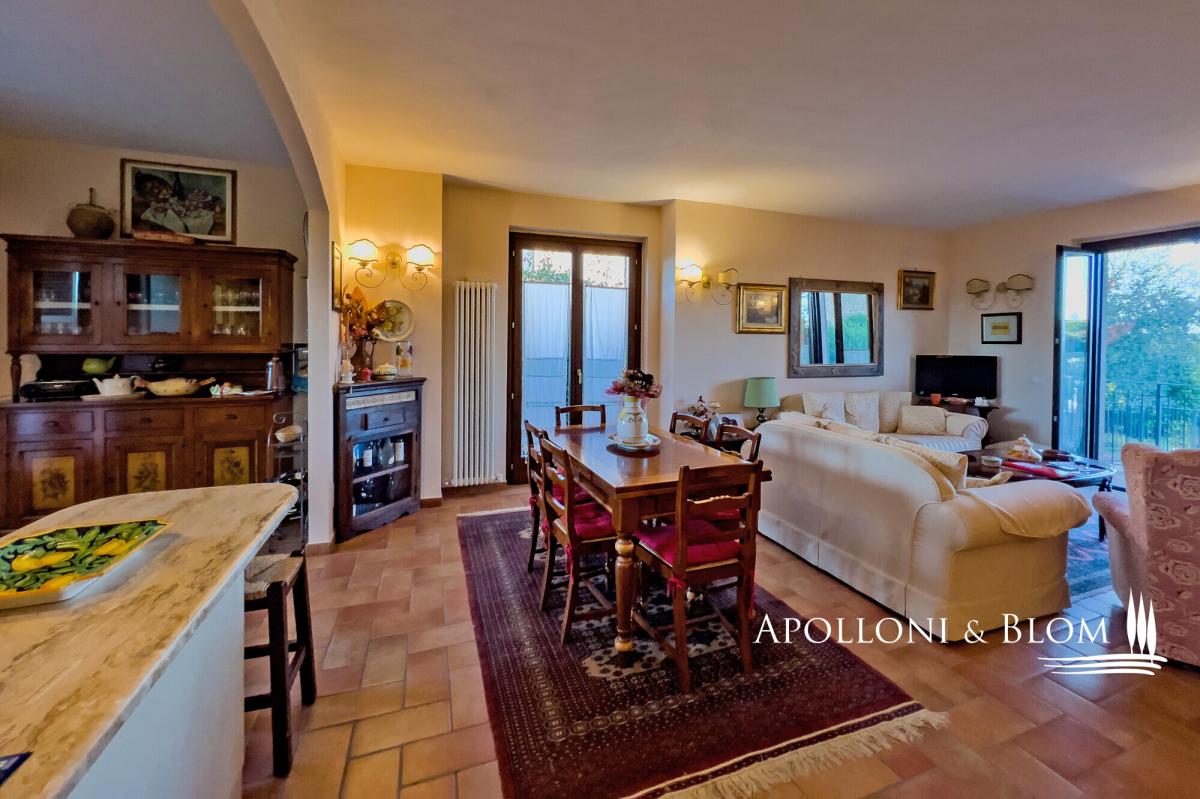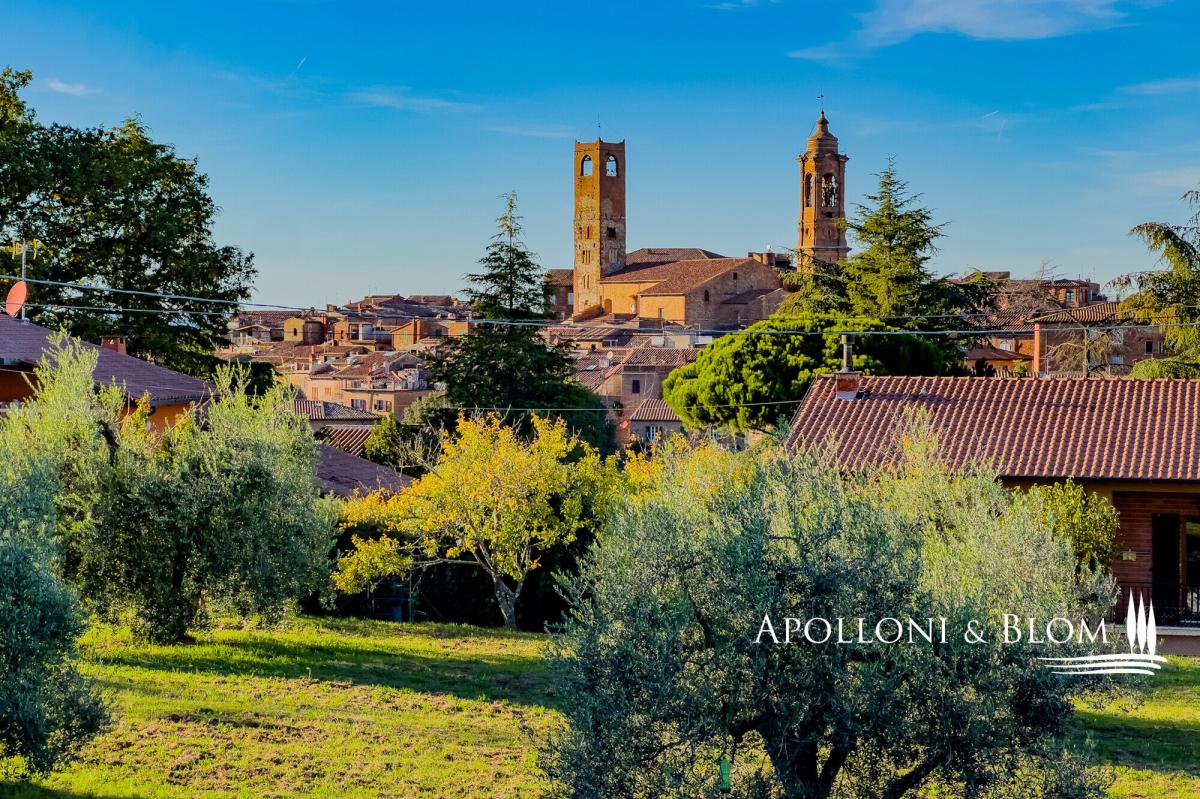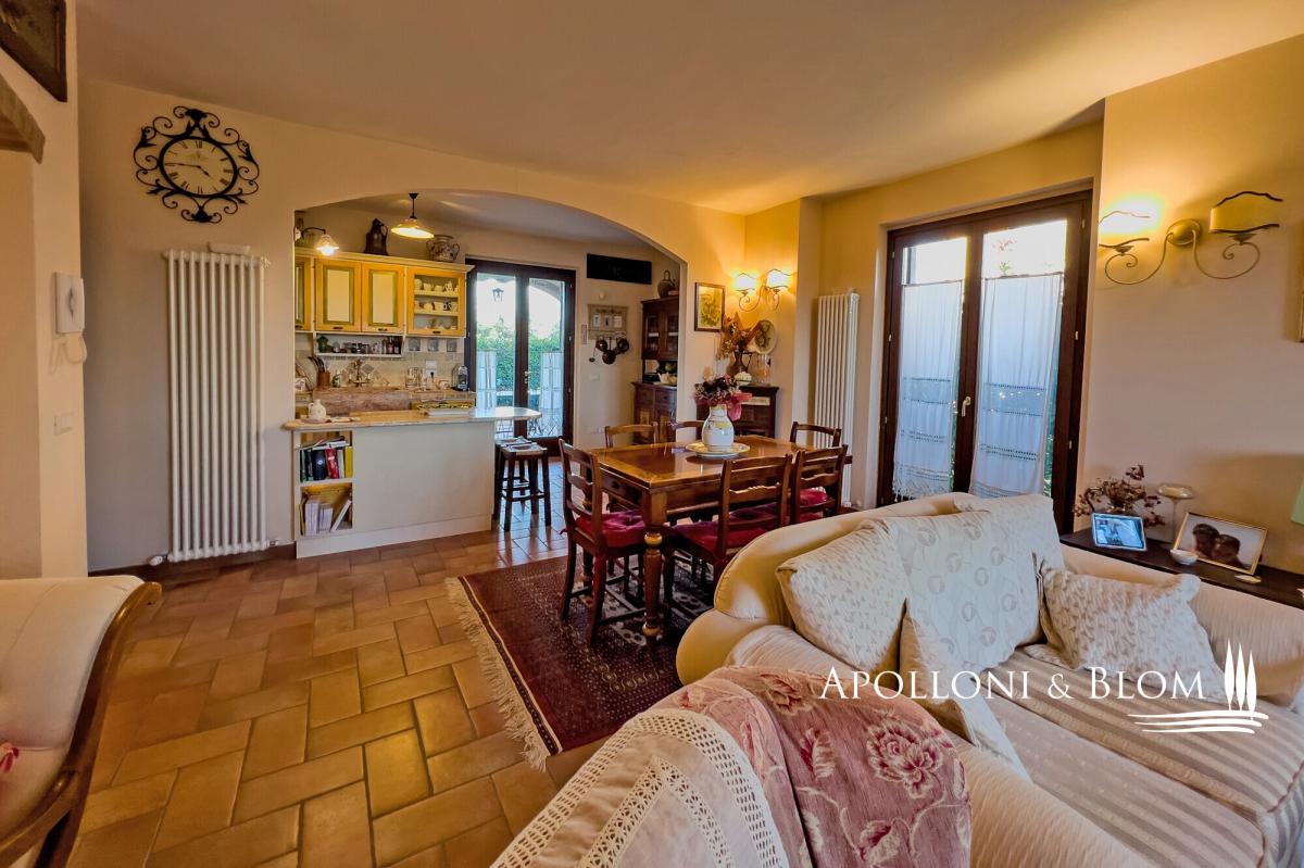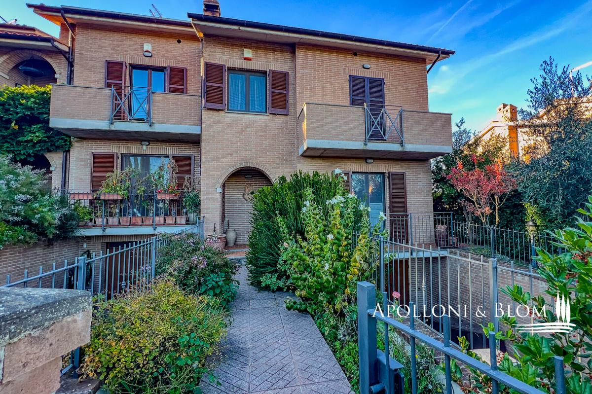 In a quiet residential area, three-story terraced house for sale with stunning views of Città della Pieve, garden, and garage. With an enchanting view over the terracotta rooftops and slender bell towers of Città della Pieve, this corner position terraced house lies in a quiet, green residential quarter, just a short stroll from the historic town centre and all essential amenities. Here, the serene rhythm of Umbrian hill life blends seamlessly with the convenience of town living, offering countryside tranquillity within easy reach of charming cafés, artisan boutiques, and local restaurants. Constructed in 2005 and maintained in immaculate condition, the house unfolds across three levels, offering approximately 203 square metres (2,185 sq ft) of well-proportioned interior space. Each floor has been thoughtfully designed to balance elegance and comfort, with abundant natural light and an understated contemporary aesthetic that honours the local architectural vernacular. At ground level, a welcoming portico leads into a spacious open-plan living area, where large windows and doors invite light in and offer seamless access to a portico overlooking the garden. The living space flows naturally into a well-appointed kitchen, while a guest bathroom completes this floor. On the first floor a main bedroom with en-suite and a panoramic terrace, two additional bedrooms, one with private terrace, and a second bathroom. The lower ground floor has been finished to the same high standards as the main living areas. It offers a characterful taverna with traditional wood-burning fireplace, two additional storage rooms, a bathroom with integrated laundry area, and an internal entrance to the 32-square-metre garage, ensuring both practicality and privacy. Outside, the private garden extends over two sides of the house, offering ample space for quiet enjoyment or entertaining, all framed by open views across the rooftops and skyline of Città della Pieve. This is a turn-key residence ideal as a permanent family home, a refined holiday retreat, or a base from which to explore the cultural and culinary richness of Umbria and nearby Tuscany. PROPERTY Ref: CDP3372 Location: Città della Pieve, Province: Perugia, Region: Umbria Type: 203 sq m/2185 sq ft three-story terraced house with portico, garage and garden Year of construction: 2005 Conditions: excellent Garden: 190 sq m/2045 sq ft fully fenced Parking: 32 sq m/344 sq ft basement garage Utilities: Fixed telephone network: available Internet: available Heating: methane + fireplace Water: mains city supply Electricity: available Water waste: mains city connection Distance from services: 900 mt Distance from main airports: Perugia 50 km, Rome 180 km, Florence 150 km Gravel road: 300 meters Layout: Ground Floor: entrance to the porch at the front, open-plan living room with open kitchen, 1 bathroom First Floor: 1 double bedroom with terrace and en-suite bathroom, 2 bedrooms, one with terrace, 1 bathroom Basement: double internal and external access, 2 storage rooms, a tavern with fireplace, 1 bathroom with laundry room, garage- garden