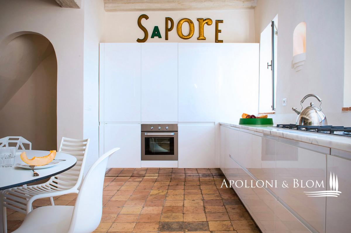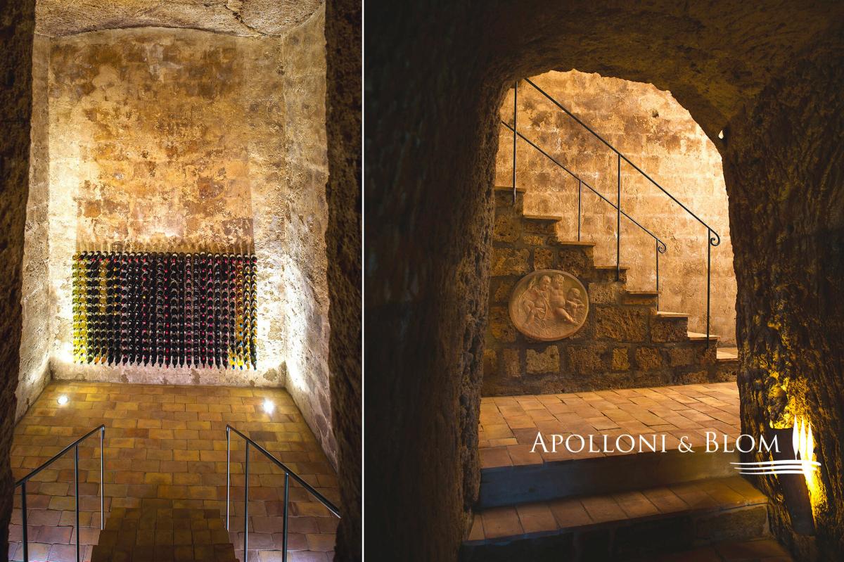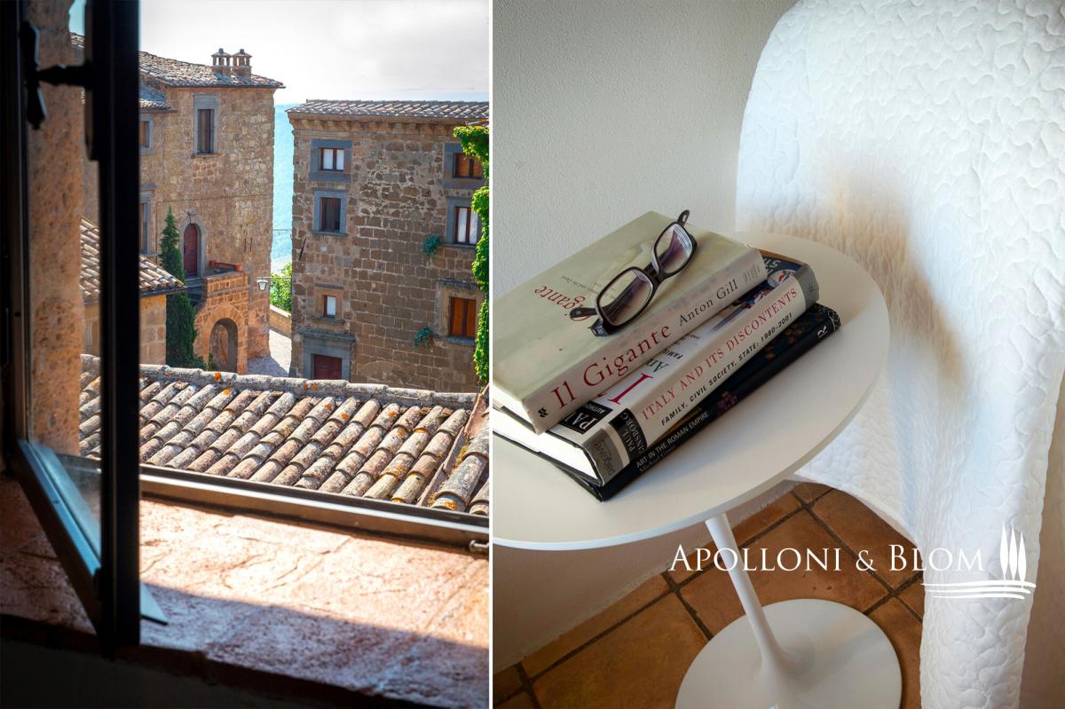 In the heart of the borgo, five-level historic residence finely restored with garden and underground caves for sale in Bagnoregio, Viterbo. Set in the heart of the historic centre of Civita di Bagnoregio, this restored historic property arranged over five levels with a private garden is offered for sale in Bagnoregio, Viterbo. More than simply a residence, it represents a tangible fragment of history suspended between sky and land, ideally suited either as an elegant private home or as a prestigious investment for those wishing to offer a truly distinctive experience in one of Italy’s most celebrated and recognisable locations. Occupying a central and commanding position within the village, the property forms part of a 15th-century palazzo overlooking the main square, at the far end of the pedestrian bridge that connects Civita to the modern town. The historic portion for sale extends to approximately 211 square metres, arranged across five levels, with three floors above ground and two subterranean levels, and is complemented by a private panoramic garden. The main entrance is located on the first floor, where the principal living area unfolds as a single, well-balanced space comprising sitting room, kitchen and dining area, enhanced by an original basalt stone fireplace. The restoration has been carried out with care, preserving historic materials while integrating contemporary elements in a restrained and functional manner. On the upper floor, each room enjoys open aspects and uninterrupted views over the surrounding calanchi landscape, with accommodation comprising two bedrooms and two bathrooms. At ground level, corresponding to the palazzo’s original bottega, the property now offers a study, an additional bedroom and a bathroom, all internally connected to the upper floors. Below, two underground levels reveal an extensive system of tufa-carved caves, believed to be of Etruscan origin and now used as wine cellars. A subterranean passage leads to an impressive Roman water cistern approximately 7 metres in height, still retaining its original hydraulic plaster, from which there is direct access to the garden. The property is offered fully furnished and is well suited both as a refined private residence and as an investment for hospitality or events, benefiting from its exceptional location and historical elements. PROPERTY Ref: ORV3052 Location: Civita di Bagnoregio, Province: Viterbo, Region: Lazio Type: 211 sq m/2271 sq ft three-story historic townhouse + 2 basement levels with underground caves used as a wine cella, featuring a panoramic private garden, part of a 15th-century building, in tuff stone, central position Year of construction: 1400 Year of renovation: 2011 Condition: excellent Land/Garden: 580 sq m/6243 sq ft, panoramic, with BBQ and gazebo for outdoor dining, and entrance to the caves Utilities: Fixed telephone network: available Internet: present Heating: methane Water: mains city supply Electricity: active Sewerage: mains city network Energy Efficiency Rating: G Location: Civita di Bagnoregio, Province: Viterbo, Region: Lazio Distance from services: 300 m, the pedestrian bridge length linking Civita to Bagnoregio. Civita is accessible to bicycles, scooters and mopeds (at set times and only for owners) Distance from main airports: Perugia 84 km, Rome 149 km Layout: Basement -2: 2 tuff caves Basement -1: 3 tuff caves Ground Floor: study, bedroom, bathroom First Floor: entrance from external staircase onto open space living/dining/kitchen with fireplace Second Floor: 2 bedrooms, 2 bathrooms- terrace