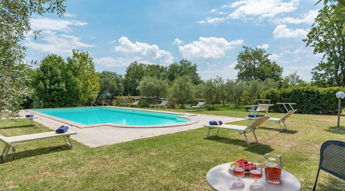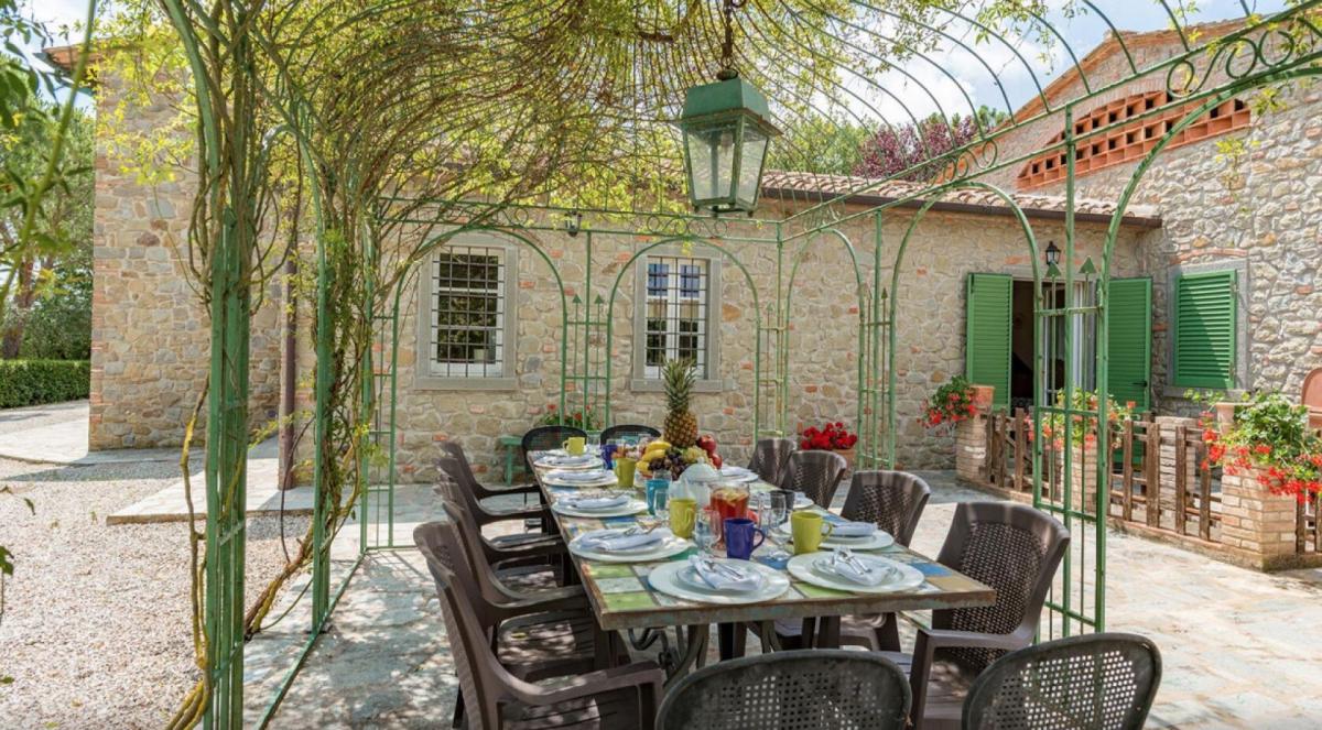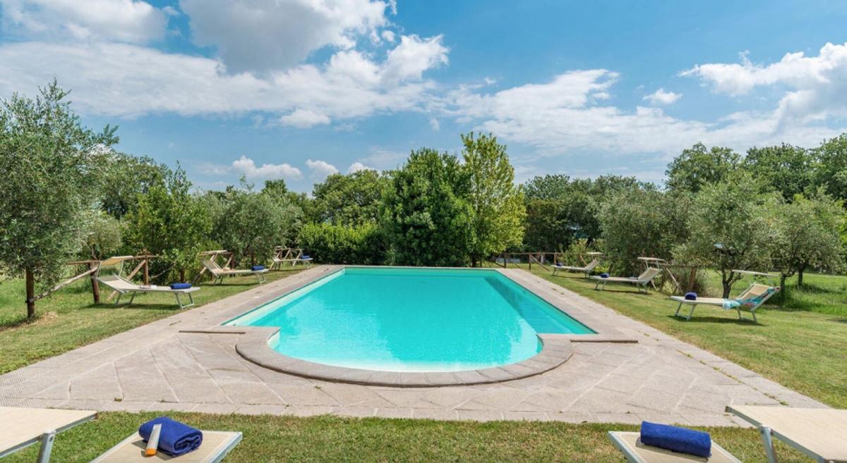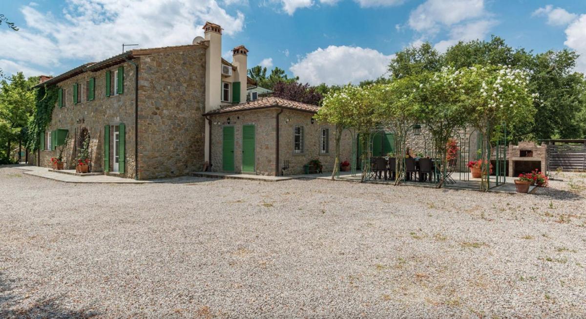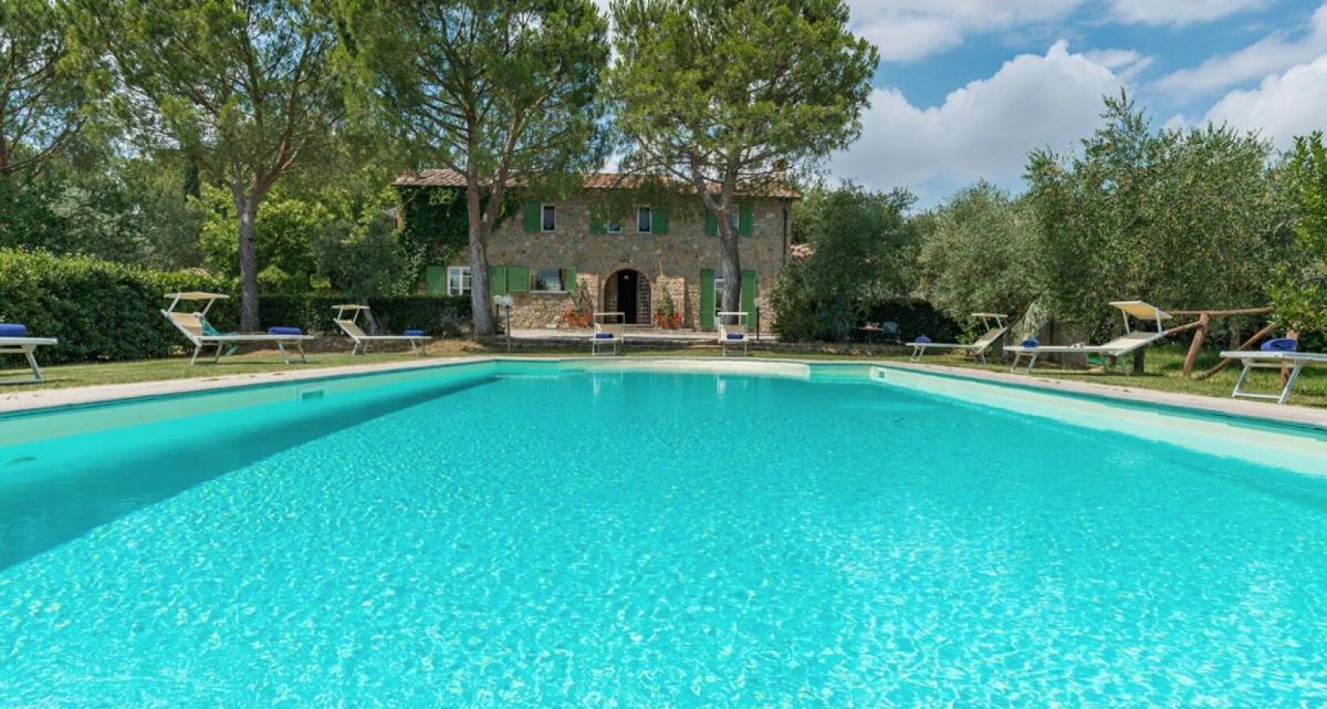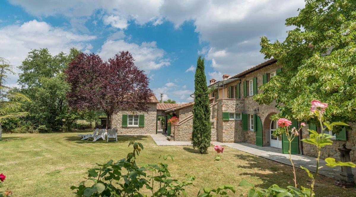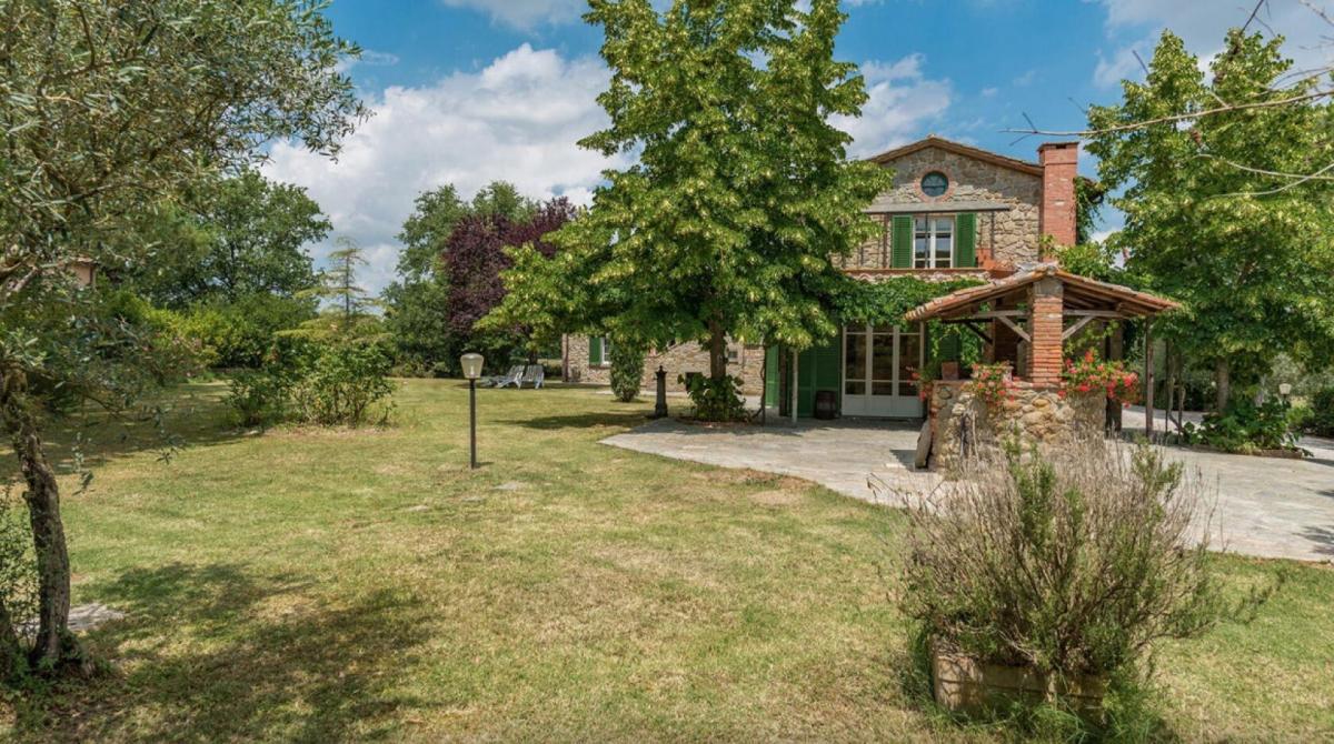 Ancient two-story stone farmhouse elegantly restored in a six-bedroom villa with swimming pool, for sale in the countryside just outside Cortona, Arezzo. In the heart of the Valdichiana, on the border between Tuscany and Umbria, twenty minutes from Lake Trasimeno or Montepulciano, on a secluded low-ground with open views, easily reached by a short stretch of gravel road, lies Casale La Bellezza, so named for the authenticity and elegance of its materials. Built in stone at the beginning of the 19th century, it was magnificently renovated in 2010, creating a charming and homely atmosphere, full of charm and historical features found in the stone fireplace in the living room and in the rustic fireplace in the kitchen, the high ceilings with exposed wooden beams, the stone walls and the terracotta floors. All windows and doors have all been completely replaced with double glazed blending perfectly with the traditional sage green colour of all wooden shutters. The ground floor houses three en-suite bedrooms, while the first floor, reached by a stone staircase, contains a master bedroom with a bathroom and access to a terrace, two bedrooms and a family bathroom. The garden has been landscaped with lawn, flower beds, olive trees, pines and tall trees, and boasts a swimming pool with a Roman-style staircase. Today, Casale La Bellezza is chosen by travellers from all over the world for their holidays, a spectacular place to relax and regenerate, but also perfect as a private residence to live with family and friends. PROPERTY Ref: COR2645 Location: Cortona, Province: Arezzo, Region: Tuscany Type: 385 sq m/4144 sq ft two-story country house + basement cellar, lawn landscaped garden with swimming pool, and agricultural land Year of construction: 1800 Year of renovation: 2010 Condition: excellent Land/Garden: approx. 9600 sqm/ 2,37 acres, of which about 4000 sqm/43055 sq ft of garden and the rest of the land with about 100 olive trees. Irrigation system for the garden Swimming pool: 6x12 m, built in 2003 Utilities: Fixed telephone network: available Internet: available Heating: LPG Water: private well Electricity: active Air conditioning in the bedrooms Distance from services: 1.5 km Distance from the main airports: Perugia 45 km, Florence 125 km Gravel road: 500 m Layout: Basement: cellar Ground Floor: entrance hall, reception room, double living room with stone fireplace and dining, kitchen, guest toilet, and 3 bedrooms with en-suite, laundry room and 2 closets First Floor: 3 bedrooms, one with access to the larger terrace and one to the smaller terrace, 2 bathrooms, closet- garden