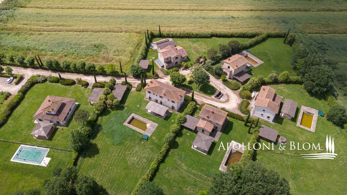 Part of a small rural hamlet a few steps from Cortona, for sale historic farmhouse partly restored, to be tailored and completed. T In an exceptional location in the Tuscan countryside of Val di Chiana, overlooking the town of Cortona, six traditional-style villas are available following the careful development of an ancient estate owned by the Knights of St Stephen and dating back to the late 1700s. Borgo de' Cavalieri is set on a fully fenced 5-acre plot featuring a common park, a guest parking lot, and an elegant main gated entrance and driveway. Once home of the "mezzaiolo, an important Val di Chiana figure during the the 18th century, the Mezzajolo is a classic building spreading over 260 square meters (2798 sq ft) on two floors offering the option for both a five/six-bedroom villa or two semi-detached homes. The redevelopment project involved demolishing the original building and its complete reconstruction using excellent architectural techniques and state-of-the-art materials that provide thermal insulation, energy efficiency, and anti-seismic structures. The building is to be completed, and 80% of the total development is already accomplished, leaving all interiors, house plants, and fittings to be tailored. The garden surrounds it on four sides and features a 45-square-meter (484 sq ft) gazebo for al fresco dining overlooking the pool, also to be completed. A carport offers three car seats. The asking price is at the state of the art; a standard quotation for turnkey delivery is available on request (approx. 300.000 to 500.000 €, depending on the materials and finishings quality). One of the six villas, COR2948 Casale de' Cavalieri, has already been fully decorated and furnished, showcasing the best finishing available. A security and maintenance service is already in operation and can be extended to individual buildings and gardens in addition to assistance with property management and tourist rentals. The access road to Borgo de' Cavalieri is a typical gravel road crossing the Tuscan countryside, roughly 300 meters (328 yards) long. Choose your authentic home in Tuscany with a pool; contact us and book an appointment today! PROPERTY Ref: COR2950 Location: Cortona, Province: Arezzo, Region: Tuscany Type: 260 sq mt/2798 sq ft newly built Tuscan country house with garden, pool to be completed, within a 4-acre ancient former farm estate with a total of 6 single villas, condo park, and driveway serviced with rangers and security Year of construction: late 1700 Year of restoration: 2024 Conditions: work progress 80%, to be completed interiors, tiling, all house plants and fittings Garden: 2,400 sq mt/25833 sq ft/0,59 acres fully fenced private garden on four sides, featuring a 45 sq m/484 sq ft gazebo with barbecue + condo park Swimming pool: 5x10 m. 50% of works carried out, featuring a Roman-style step, technical room, and a paved sundeck Parking: 3/4-seat carport + outdoor parking facility for guests Utilities: Fixed telephone network: available Internet: available Heating: LPG Water: well + 20 quintals rainwater collection cistern for irrigation use Electricity: available Water waste: Imhoff tank Air-conditioning and photovoltaic system options available Energy Efficiency Rating: G – designable to be an A-rating Distance from services: 4 km Distance from main airports: Perugia 59km, Florence 129km, Rome 234km Gravel road: 300 mt Layout: Ground Floor: living with fireplace, kitchen with dining, 1 bathroom, 1 bedroom with en suite First Floor: 3 master bedrooms with ensuite, 1 double bedroom and 1 single bedroom sharing 1 family bathroom- garden