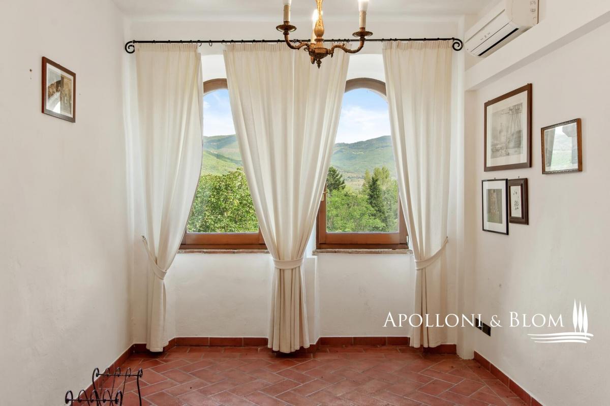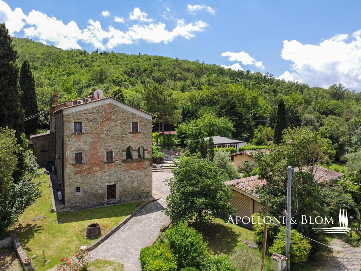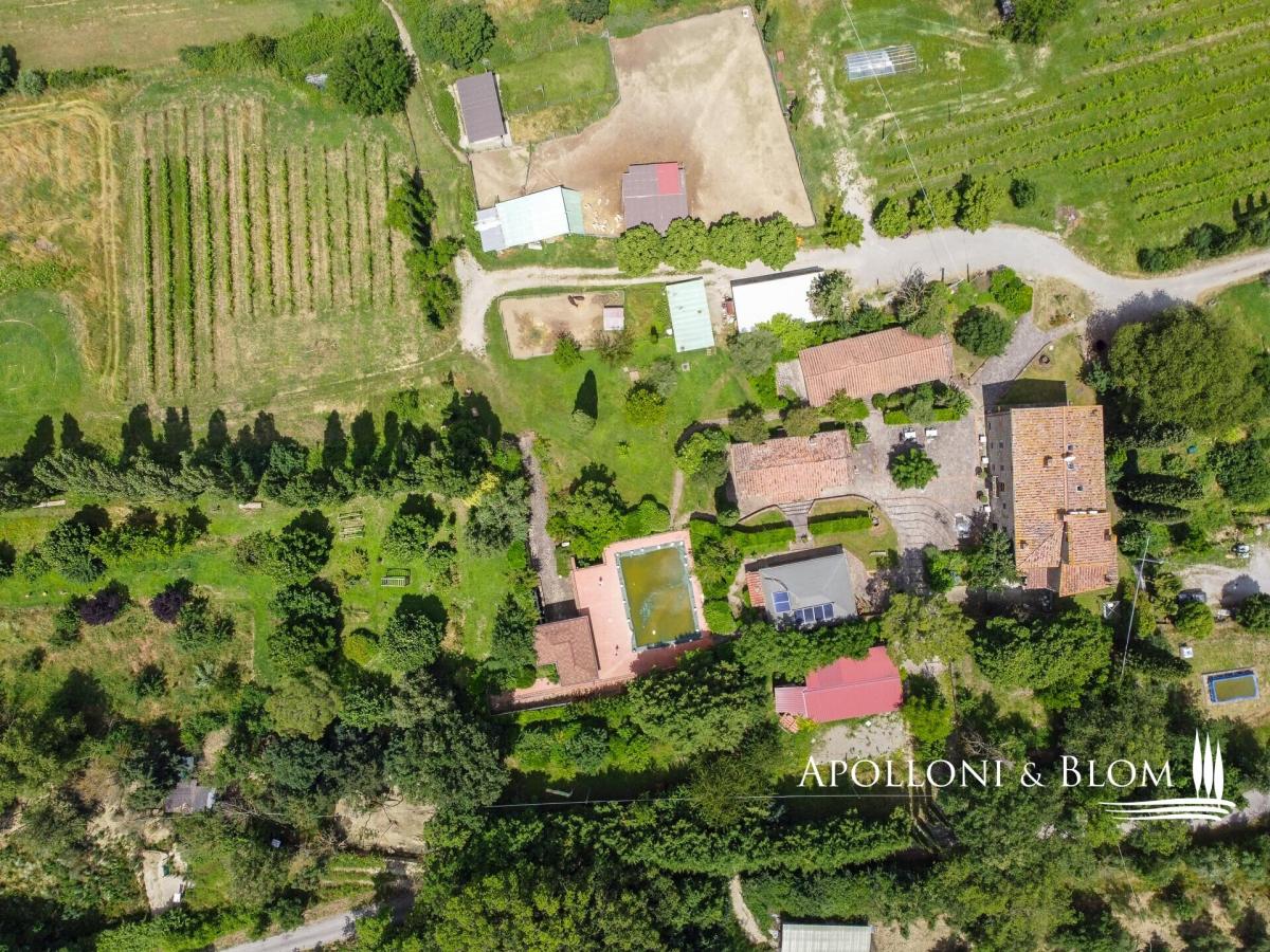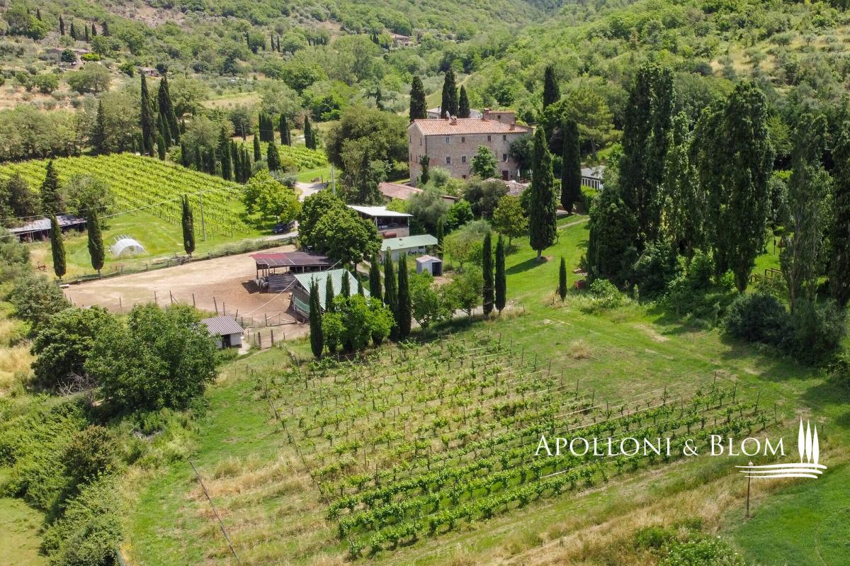 An authentic Tuscan ancient convent expertly restored with spa, indoor and outdoor pools, air-conditioned, park, and vineyard for sale near Cortona. Just 6 km from the town of Cortona, this 27-acre estate unfolds within a private corner of Tuscany and boasts far-reaching panoramic views. At its heart stands an authentic 16th-century convent masterfully restored to honour its heritage while embracing contemporary luxury. Appointed with a spa, heated pool, a private helicopter landing ground, full air conditioning throughout, gated entrance, and offered partly furnished: a compelling prelude to the remarkable lifestyle that unfolds beyond this enchanting property. Spanning 1,360 square meters (2260 sq ft), the manor house is a celebration of timeless Tuscan architecture: natural stone façades, antique timber doors and windows, hand-laid cotto floors, soaring ceilings adorned with frescoes, and imposing fireplaces that anchor generous reception rooms of remarkable atmosphere. The living and dining halls are both grand and inviting, designed for elegant entertaining on a significant scale, while a state-of-the-art professional kitchen ensures seamless hospitality, whether for intimate gatherings or larger soirées beneath the pergola overlooking the gardens. Accommodation is both abundant and beautifully appointed. The manor house hosts 8 master bedroom suites, and two additional single-level guest cottages, discreetly positioned within the garden, provide a further 6 master bedrooms, suited equally to private family life or an exclusive hospitality venture. A spa area includes an 80 sq m (861 sq ft) conservatory dedicated to a heated indoor pool with chromotherapy and Jacuzzi. The landscaped parkland surrounding the residences features sculpted paths and stone stairways leading to a dedicated Work Out and Cross Fit ground, a designed children’s playground, and an organic vegetables/kitchen garden. The surrounding land encompasses olive groves, pasture, and forest, together with 1.6 hectares (4.5 acres) of IGT Toscana vineyards planted predominantly with Sangiovese vines, alongside Merlot and Syrah. Horse paddocks along with ancillary farm buildings, barns, former stables, and technical rooms provide extensive operational support. Finally, a building plot presents the potential to extend the living surface area by a further 500 square meters (5382 sq ft). Contact us for all details! PROPERTY Ref: COR3548 Location: Cortona, Province: Arezzo, Region: Tuscany Type: 27-acre (11-hectares) estate with landscaped park, a private helicopter landing ground, olive groves and vineyards, surrounding an historic former convent complex of 1361 sq m/2260 sq ft finely restored with outdoor swimming pool, spa and wellness center with a heated pool, three-level manor villa with 8 master bedrooms, 2 guest cottages with additional 6 bedrooms, farm buildings with barns, storage, technical rooms, and former horse/animal stalls Year of construction: 1500 Garden: 3500 sq m/0.86 acres park including a Work Out and Cross Fit ground with 16 stations, kids playground, and an organic vegetables/kitchen garden 2 Swimming pools: 4x8m outdoor pool with paved sundeck + a 4x4m indoor heated poo,l set within the conservatory room, fitted with chromotherapy and Jacuzzi, water temperature up to 37° and equipped with a brand new oxygen purification system Land: 11 hectares (27.2 acres) including 5 ha/15 acres of park, pasture and woods, 4 ha/10 acres of olive grove, and 1.6 ha/4.5 acres of IGT Toscana vineyards: Varieties: Sangiovese (84%), Merlot (8%) and Syrah (8%) Helicopter landing Spa Wellness Center Air conditioning Electric gate Partly furnished Utilities: Fixed telephone network: available Internet: available Heating: LPG and methane Water: mains city supply + 1 artesian well Electricity: available Distance to services: 6 km Distance to main airports: Perugia 61 km, Florence 141 km, Rome 239 km White road: 2.5 km Layout: Manor house - 750 sq m/8072 sq ft Ground Floor: 1 bedroom/suite with living room and 1 bathroom First Floor: Family suite #1 with living room, 2 bedrooms, loft and 1 bathroom Second Floor: Family suite #2 with living room, 2 bedrooms, loft and 1 bathroom; Family suite #3 with living room, 2 bedrooms, loft and 1 bathroom Cottage 1 - 110 sq m/1184 sq ft on one level: a total of 4 suites (4 living rooms, 4 bedrooms, 4 bathrooms) Cottage 2 - 100 sq m/1076 sq ft on one level: a total of 2 suites (2 living rooms, 2 bedrooms, 2 bathrooms Annexes: 140 sq m/1506 sq ft pergola for dining, 80 sq m/861 sq ft conservatory with indoor heated pool, 293 sq m/3153 sq ft canopies, 98 sq m/ 1054 sq ft technical rooms Possibility of extension for a further 500 sq m/5382 sq ft of living or hospitality surfaces- garden