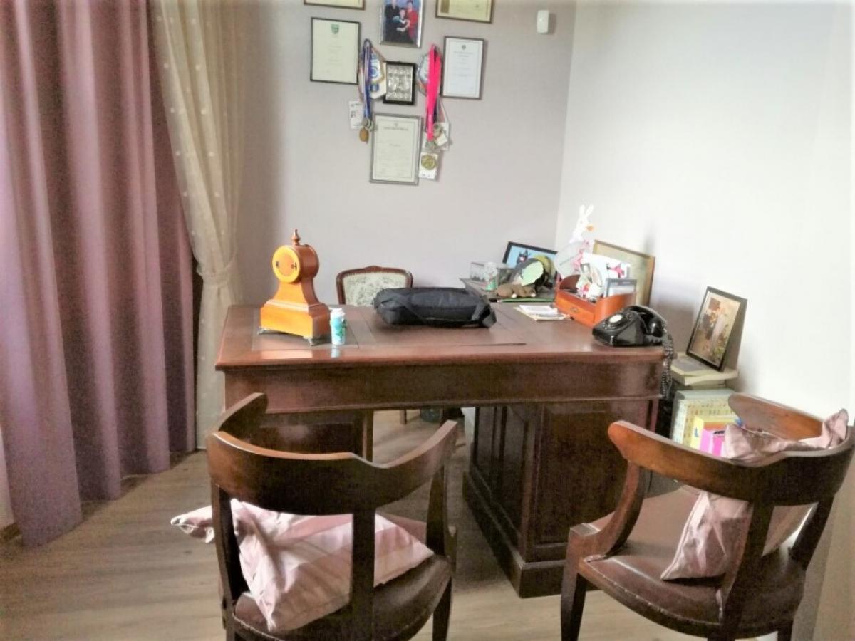 A 4 bedroom detached house for sale in Dali, Nicosia with an extra room which is currently being used as an office. It is locatedA only a 15 min drive from the town of Nicosia, 20-30 min drive from Larnaca, 40 min drive from Ay. Napa and a 40 min drive from Limassol. There is a private swimming pool with shower, changing room, barbecue area, dog house and WC outside. There is also a big attic of 70sqm approximately with storage room, shower and WC while the rest of the space could be used as a playroom, cinema or gym. The house consists of one big dining room, two living rooms which are open plan to a French styled kitchen and extra laundry room. There is one big bathroom and guest WC, big walking closet, a/c units in all of the rooms, floor heating (petrol), solar panels, 3 glaze windows, covered/uncovered and garage parking and mature gardens with fruit trees. Another plus is that there is space to build another house, tennis court, offices, swimming pool or even gas station.