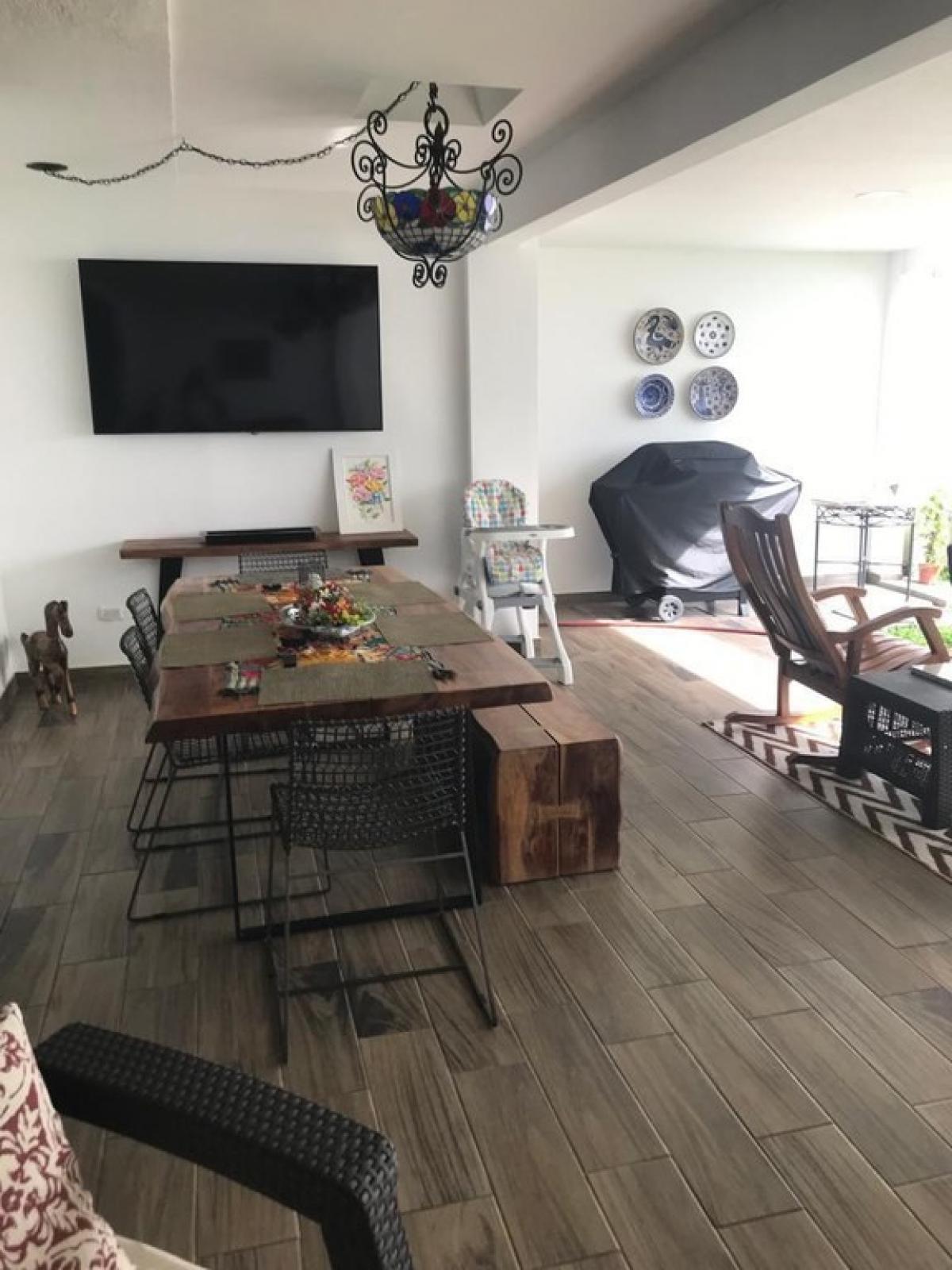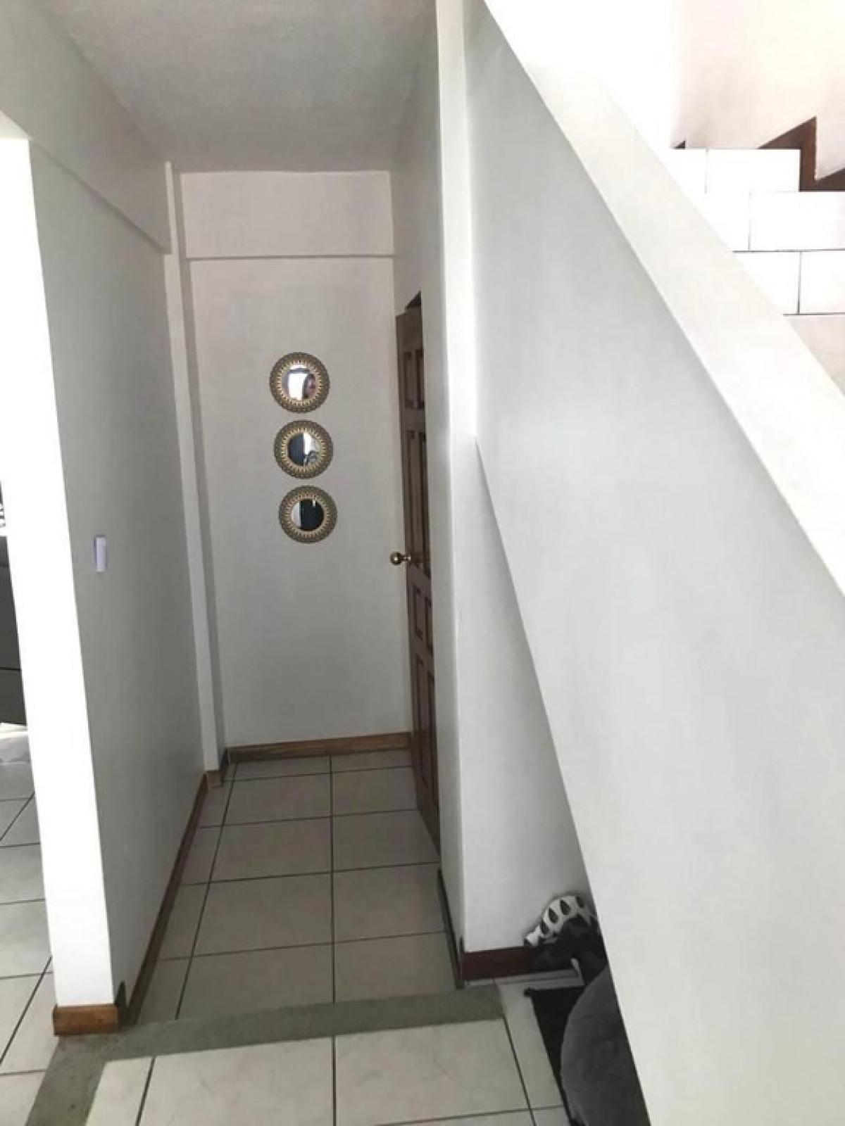 I am selling a house located in Urbanizacion Suiza in Bello Horizonte de San Rafael de Escazu. It was built in 2000 but has had recent renovations. It has 258 square meters of construction. It is made of concrete, with very strong foundations. It has a living room, dining room, kitchen, beautiful terrace, half guest bathroom, maid's room with bathroom, on the first floor, and on the second floor three very spacious bedrooms each with its own bathroom and two with a walking closet and one with a large closet. Condominium fee 100,000 colones. Covers night guard in security booth, needle at the entrance of the urbanization and external gardens.