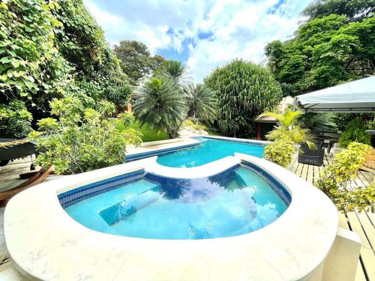 One-story house in one of the most sought after areas in Escazu, near the La Paco Shopping Center, 4 minutes from Multiplaza Escazu, 5 minutes from Hospital Cima and Avenida Escazu, just 15 minutes from Lindora, Forum 1 and 2 with wide spaces and green areas. Description: At the entrance there is a lobby overlooking the living room, an office , living room with a fireplace, a large terrace overlooking the garden and the pool, adjoining there is a very spacious dining room and it has a room for tea and yoga, second terrace with bar, music room or bedroom, guest bathroom, large kitchen with breakfast area equipped with ecological digital inverter appliances. It has a private area where the rooms are located and a private TV room, main room with living room, 2 walking closet, shower and Jacuzzi, balcony to the garden with access to the pool, plus 2 secondary rooms that share a bathroom. It has an apartment next to the house for the maids area: With 2 bedrooms, full bathroom, laundry room and kitchenette. It has a swimming pool with a white wooden deck, ranch and BBQ. To one side of the pool there is a building that has a jacuzzi, sauna, steam bath, dressing room and shower. In the garden there is a shed where the guard lives with a room, bathroom and shower. Closed garage for 2 cars under roof and parking for 20 vehicles. The house is surrounded by perimeter walls and a security wall. It has a 9m3 capacity water tank with a pump. The property has a 1500m2 lot in front to develop a commercial activity and is separated from the house. Cellar in the basement with access to the garden where an apartment can be made. Construction: 1000sq Land: 4594sq Price for Sale: $3,500,000 Video: https://youtu.be/4F1elJE9A7w