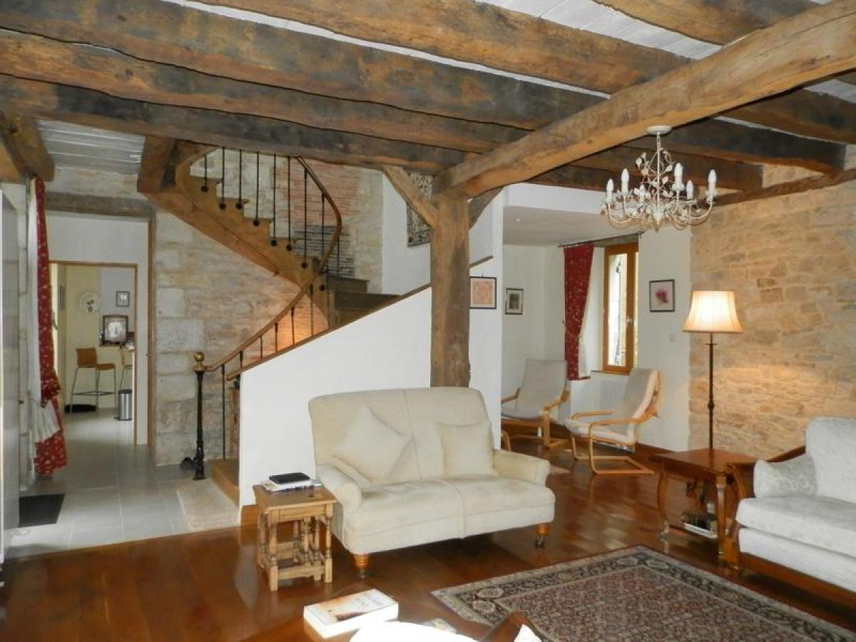 Detached, traditional stone house. Open plan living and dining area with open fireplace in the centre of the space. Kitchen and utility room housing a 'wiesman' oil boiler for central heating. Original elm staircase leading to large landing area. Three large, double bedrooms. Two bathrooms and space to create another en suite. Original walnut staircase leading to grenier which is at present being used for storage, however there is potential to create further rooms. Double glazed throughout. Decking area leading to pretty walled garden. Five flower beds, trees including fig and walnut. Fragrant roses growing on one of the walls. Open, covered eating and entertaining space with area for storing logs. Medieval cave with covered entrance. Two storage areas used to house garden tools and tables and chairs. Grape vine grows over a wooden pergola to provide shade for morning coffee on the decking.