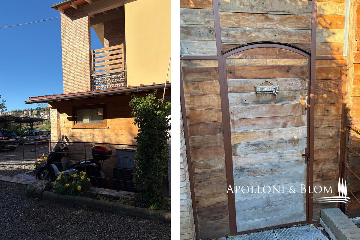 Detached house with garden, enchanting views, modern finishes with a private Jacuzzi in each bedrooms, for sale in Gaiole in Chianti. Set upon a gentle hillside overlooking the picturesque village of Gaiole in Chianti, this independent residence offers a harmonious blend of modern comfort and Tuscan charm. Beautifully restored with an eye for detail, the property enjoys sweeping views across the rolling landscapes of Chianti Classico. Extending to approximately 2,475 square feet (230 square metres) arranged over two levels, the interiors are bright and inviting, enhanced by contemporary finishes, high-performance fittings, and air conditioning throughout. The home comprises six elegantly appointed bedrooms, each featuring a private Jacuzzi, as well as a living area on the ground floor that opens onto a veranda with dining space and an open-plan kitchen. On the upper level, two balconies provide captivating vistas over the countryside and the medieval rooftops of Gaiole. Outside, the property is framed by a well-maintained, enclosed garden of 1500 square meters (0.37 acres) including a private parking area for six cars. Located just 600 meters from Gaiole’s historic centre and essential amenities, this property is perfectly suited as a private retreat or an exclusive boutique hospitality venture. PROPERTY Ref: CNT3407 Location: Gaiole in Chianti, Province: Siena, Region: Tuscany Type: 230 sq m/2475 sq ft two-story detached house with 2 balconies and fenced garden Conditions: excellent Garden: 1500 sq m/0.37 acres composed of terracotta paved areas and lawn areas bordered by hedges on which typical shrubs alternate, bushes and many pots with flowers and fruit trees Terrace/Balcony: 2 balconies on the first floor Parking: 6-seats outdoor parking facility Utilities: Fixed telephone network: available Internet: available Heating: methane Water: mains city supply Electricity: available Water waste: mains city connection Distance from services: 600 metri Distance from main airports: Florence 70 km Layout: Ground Floor: living area with veranda, dining area and open-plan kitchen, spa area with 1 bathroom, 1 double bedroom with terrace, hot tub and 1 bathroom, 1 double bedroom with 1 bathroom First Floor: entrance via external staircase, 2 double bedrooms both with terrace, Jacuzzi and en-suite bathroom, 1 bathroom, 2 double bedrooms both with Jacuzzi- garden