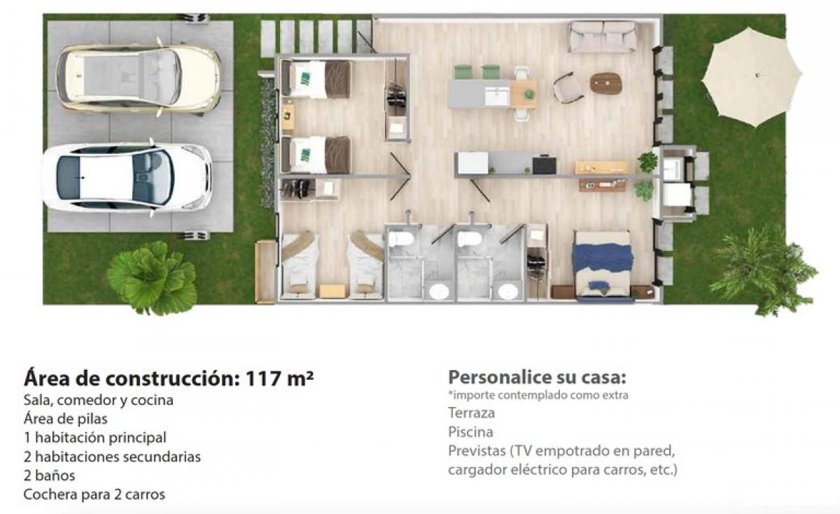 This house with 3 bedrooms and 2 bathrooms is located in Condominio Arenas in Playa Herradura, Puntarenas Costa Rica. This countryside near the coast property with mountain view is situated in the rain forest of Costa Rica. The land area of this house is 195.75 square meter (2,107.03 square feet), and it has a living space of 117.00 square meters (1,259.37 square feet). The property also features a community pool, gym, coworkspaces, playgrounds and more. 3 bedrooms 2 bathroom Patio Community amenities: swimming pools playgrounds Gym Cowork Space Relaxing Areas Gated Community 2 klm from the beach and Marina Los Suenos