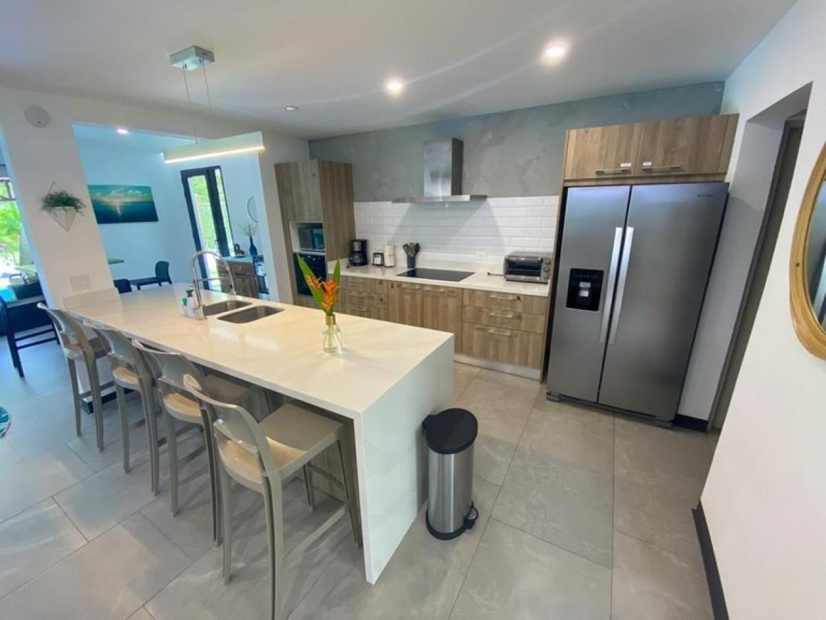 Playa Hermosa, near Jaco. Beach house with 290m2 (3.122sq ft) and 650m2 lot. It offers a large living-dining room open concept kitchen with access to the terrace with bbq and pool with a large deck, and hammocks, ideal to enjoy with family or friends, guest bathroom, surrounded by beautiful gardens, on the second floor has 4 bedrooms with bathroom. Other additional features of great value included: Fiber optic internet 26 solar panels, inverter ready for battery + Evcharger. Whole house sediment filtration system. Water pump with additional tank Camera system (2) one fixed and one wireless. All hardware was imported from the U.S.A. Handies, electrical outlets, shower, bathroom fixtures, main entrance door Smart hardware. Carpets and some furniture were also imported. "The price of the house includes a lifetime membership of for the Clubhouse. Located in Mistico beach condominium, Bech Town & Resort" with 24hrs security, private access to the beach, walking and biking trails, lakes where you can practice water sports (the house has 2 kayaks included).