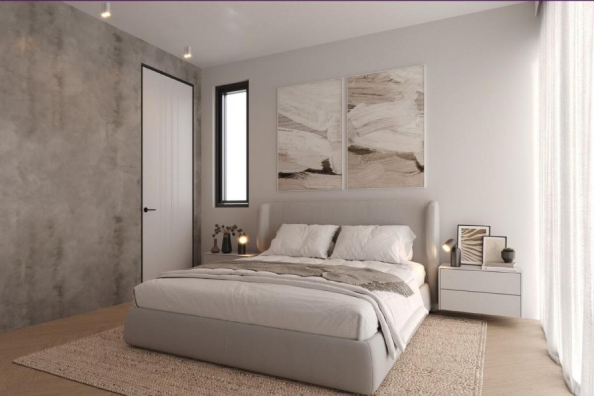 This project is a cut above the rest. A prestigious boutique property developer in Paphos, this exclusive development of only 12 villas will appeal to buyers who want to be close to it all: the town centre, the beach, everyday amenities, as well as English language schools and universities. Featuring slick contemporary architecture designed for Mediterranean style luxury living, this project lines both sides of a quiet road in Geroskipou. The 3-bedroom 3-bathroom 2-storey villas will catch your eye with their French windows that let in the abundant daylight. Attractive textured exterior walls, a garden patio and of course the wooden sunbathing deck surrounding the private pool define the modern, sophisticated style of these properties. Inside, residents will enjoy the spaciousness and comfort of an open-plan living where carefully chosen interior finishing materials, fitted kitchen and built-in wardrobes reveal a sense of understated elegance.