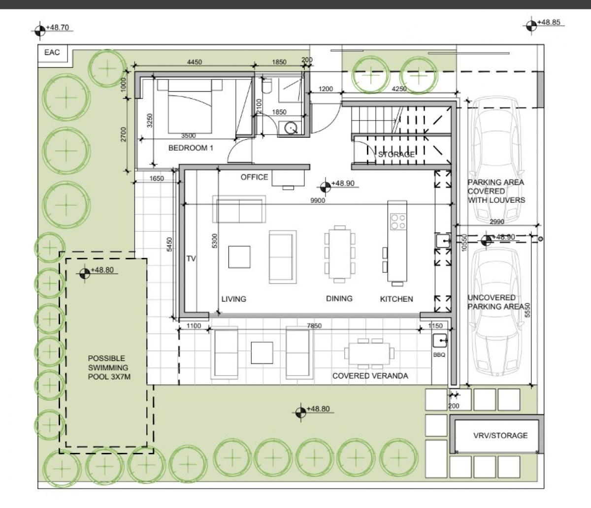 Each contemporary villa has a plot size of no less than 300m2, and have spacious strategically designed internal covered areas, with open plan living areas, high ceilings and welcoming plenty of natural light from the floor to ceiling sliding doors and windows. Each Villa has an option for a swimming pool and spacious garden.A There is: spacious living, dinning & kitchen area a?? 3 or 4 bedrooms in total including a master suite, laundry/storage area, kitchen with Corian, private parking for 2 cars, electric car charger, barbeque area at kitchen level, underfloor heating, VRV for cooling. Category efficiency A plus, electric gate for cars, provisions for solar panels, external and internal shutters.A swimming pool is available for extra amount.