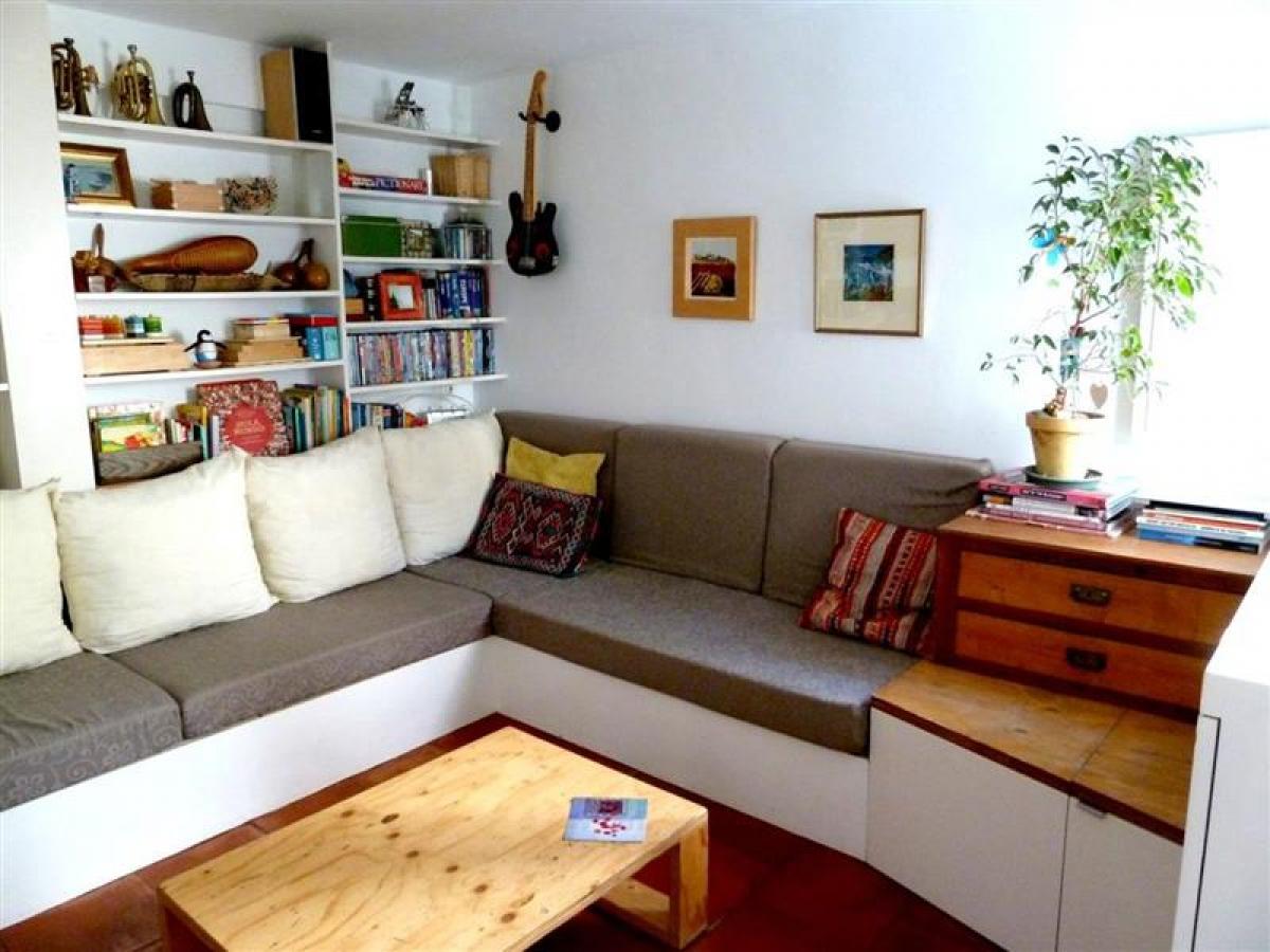 The built-in couches double as generous storage units.