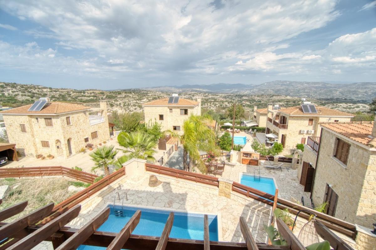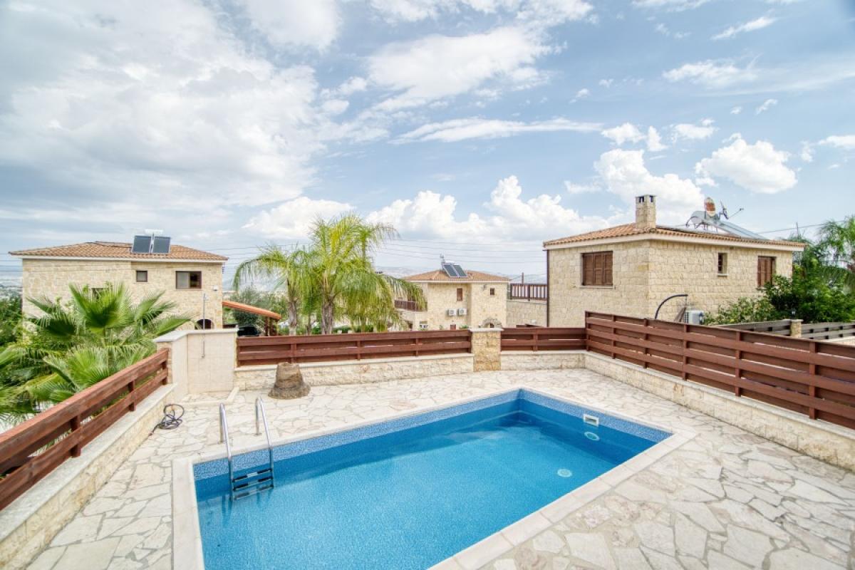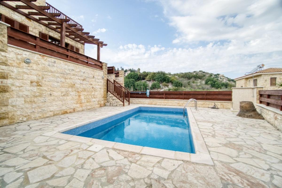 Driving into Kallepia which is a quaint village next to Minthis Golf course area we find this beautifulA houseA in a small complex of individual villas with private pool.KallepiaA is medium sized Cypriot village located 13km northeast of Paphos and is a renowned vineyard village of the area. It has fabulous views of the Troodos mountains on a clear day as well as the local Minthis Hills Golf Course only 2km away. There are a number of traditional tavernas in the village centre with Tsada, Polemi and Letymbou offering alternative options for entertainment and amenities.A A