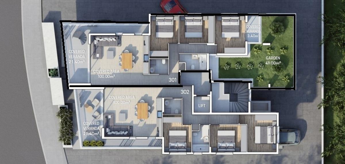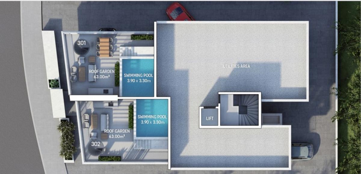 Nestled in vibrant Limassol city center, offers a blend of modern luxury and natural tranquility. Just 1minute from the highway and near Agios Georgios Havouzas church, our prime location is complemented by a scenic green area opposite the building. Chic apartments boast panoramic cityscape views, seamlessly blending urban sophistication with nature's calm. Meticulous attention to detail is evident in every aspect, from stylish finishes to spacious layouts. Expansive windows and private balconies invite the outdoors in, creating a harmonious living experience. The shimmering pools add a touch of indulgence, enhancing the contemporary lifestyle. This is where city convenience meets the serenity of green living, a perfect fusion of modern elegance and natural beauty. This unit has a private garden of 49 square meters and a roof garden of 63 square meters with a private swimming pool.A