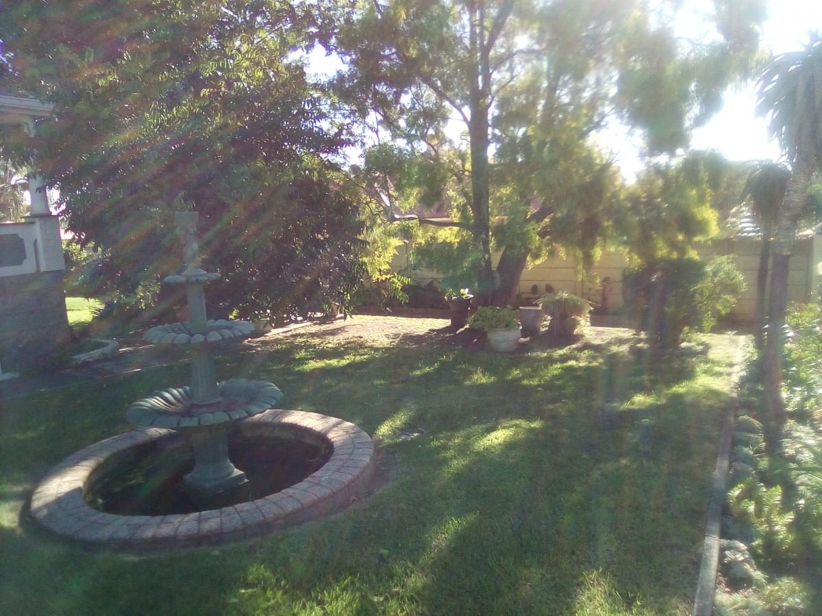 Outdoors there is a beautiful water fountain garden feature as well as a little picnic area and a big spacious yard and garden.