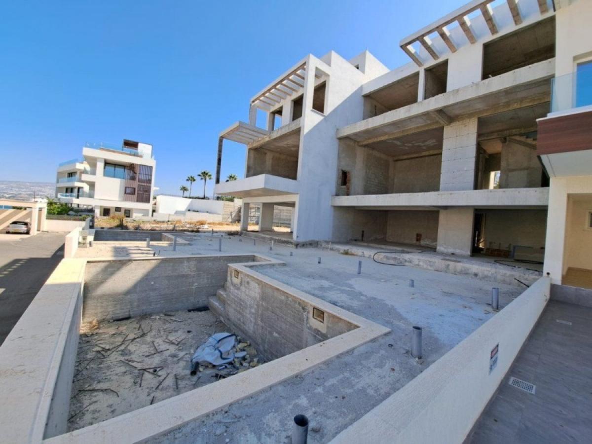 Investment opportunity. Second line beach house, 50 meters from the sea, with stunning sea views in a quiet and tranquil location where one can enjoy the sound of the sea, yet only a few minutes away from the heart of the tourist area and Paphos city centre with all amenities close by. On a gated project the beach house features 3 levels: The ground floor offers covered parking, a large low maintenance patio for outdoor dining and a over flow pool. The 1st level is the living room with patio, a separate kitchen with dining area. The 2nd level has a total of 3 bedrooms, a family bathroom. The master bedroom enjoys an en suite and views of the sea. The 3rd level features a roof garden with breath-taking unobstructed sea views. The beach house is currently under construction and is approximately 3 months from completion. The skeleton, brick work, and first plastering has been completed, giving the buyer the opportunity to choose all internal fixtures and fittings of there choice. The price is for the property at the current stage. The buyer has the option to buy, as is and complete the house themselves or it can be completed for the buyer. It has been estimated an additional a??200.000 +/- is required to complete the beach house.A The property is being built to install VRV, smart home system and an elevator.