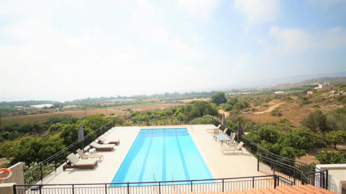 Beautiful 5 bedroom villa in one of the most prestigious areas of Kissonerga village a?? Paphos.Nestled in a majestic environment in the suburban area of Paphos, Kissonerga, this 5 bedroom en suite Villa offers along with its secluded, peaceful and quiet location, spectacular sea and mountain views. This large family house is perfectly designed and built with love, represents 2 levels,1st level, large living room flowing into dining and spacious separate kitchen,2 en suite bedrooms and a guest toilet, 2nd level consists of 3 large en suite bedroomsA each with a large private balcony. Back to the ground level from the tv and dining room and the kitchen you have easy access to the stunning, well-looked after garden, offering barbecue area, large swimming pool and plenty of sitting areas for dining al-fresco.This one of a kind property reaps from its own orchard of fruit trees. The property is a must to see.