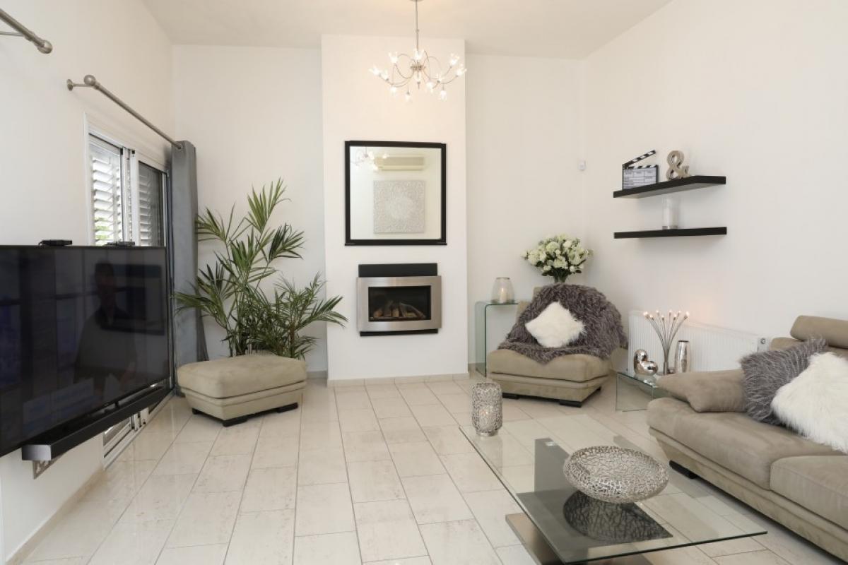 This spacious three bedrooms two bathrooms detached bungalow, located in Kissonerga Village and has been the permanent home for the current owners from now. The property is in excellent decorative order throughout and boasts a solar-heated 9m x 4m kidney-shaped private swimming pool. To the side is a private driveway, leading to a covered carport and onto the garage. A pathway leads to a veranda and the double door main entrance. The entrance door leads to the spacious open-plan dining area, kitchen, and lounge. Modern kitchen. The bright and spacious living area has a feature gas fire, in addition to the central heating for the cooler winter months and patio doors lead out to the large veranda, pool, and garden. There are two master bedrooms in this property, both are of a very good size and have walk-in wardrobes and en-suite bathrooms. The Third Bedroom is currently being used as an office. In addition, there is also a guest WC. The outside space offers a large kidney-shaped private swimming pool with Roman steps, which can be heated. The pool is surrounded by artificial grass. Near the pool, there is a Gazebo with a purpose-built BBQ that offers a perfect spot for outdoor entertainment. This wonderful property also has fly screens and aluminum shutters throughout, ceiling fans in the bedrooms, and an electric fire in one of the master bedrooms. All white goods are included in the sale price and furniture is available by negotiation. The Bungalow is conveniently situated in Kissonerga village within walking distance to local amenities and just a ten minutes drive to the center of Paphos and Blue Flag beaches of Coral Bay.