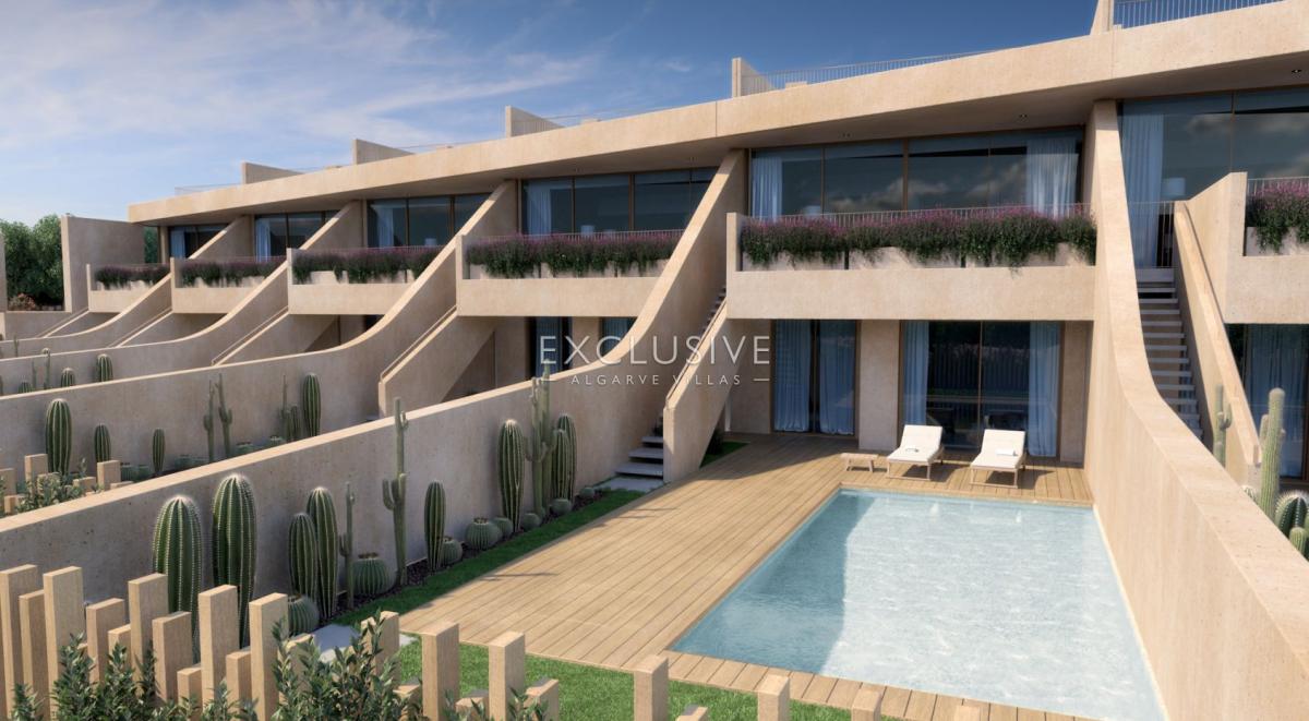 This brand new condominium in the heart of Praia da Luz, is now being built and will satisfy the requirements of many looking to live in this part of the world. Combining design excellence and the highest quality of construction with the practicality of a condominium walking distance to everything, whilst benefiting from beautiful sea views, this is a unique opportunity you may not want to overlook. 13 Townhouses circling beautifully landscaped gardens, each with its own basement with private parking and technical areas, it's own pool and private roof terrace with Jacuzzi and each with its own elevator shaft, connecting all floors. Designed with modern comfort in mind, the plans consist of open plan living spaces, 2 spacious suites and an office that can be used as a 3rd bedroom. All properties will come fitted under-floor heating, air conditioning, floor to ceiling windows and solar panels. The elevators are optional. The beach and centre, with it's varied comerce and hospitality, is just a short walk away. With prices starting at 1 350 000, do not miss the opportunity of selecting the best units at the best prices. Book your viewing today!Features: