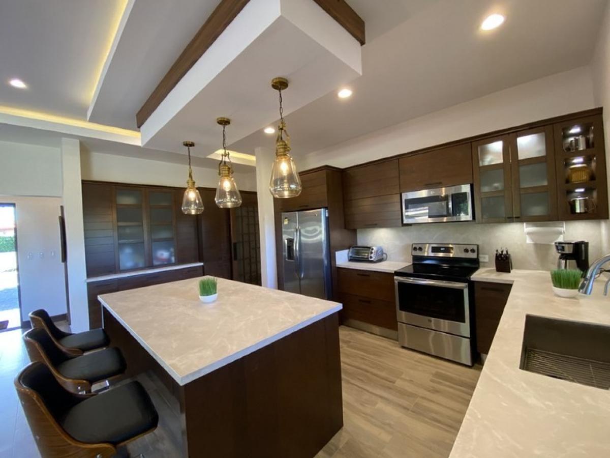 Luxurious new villa for sale in Parque Del Encino. Built for a lifestyle of modern comfort. Gorgeous finishes throughout, Stunning chefs kitchen. gorgeous cabinetry, quartz countertop, Over 470 m2 of gracious living space, 1500 m2 backyard. Three guest suites, superb master suite with walking closet, rustic petrified wood sinks in master bathroom and powder room. Huge media room and a distinguished home office. 4 beardom 4.5 bathroom brilliant living at Parque del Encino. The house come fully furnished. Custom made cabinets, porcelan Italian tile in all the bathrooms. 2 car garage, generator in the house, sprinkler system, fully electrical fence,, 24 hours security guard, under ground electricity, community pool and clubhouse, multifunctioning sport court. The most secured community in Liberia. 10 min away the airport, 10 min the most famous Zoo in Central America, 20 min away Panama and Hermosa beach.