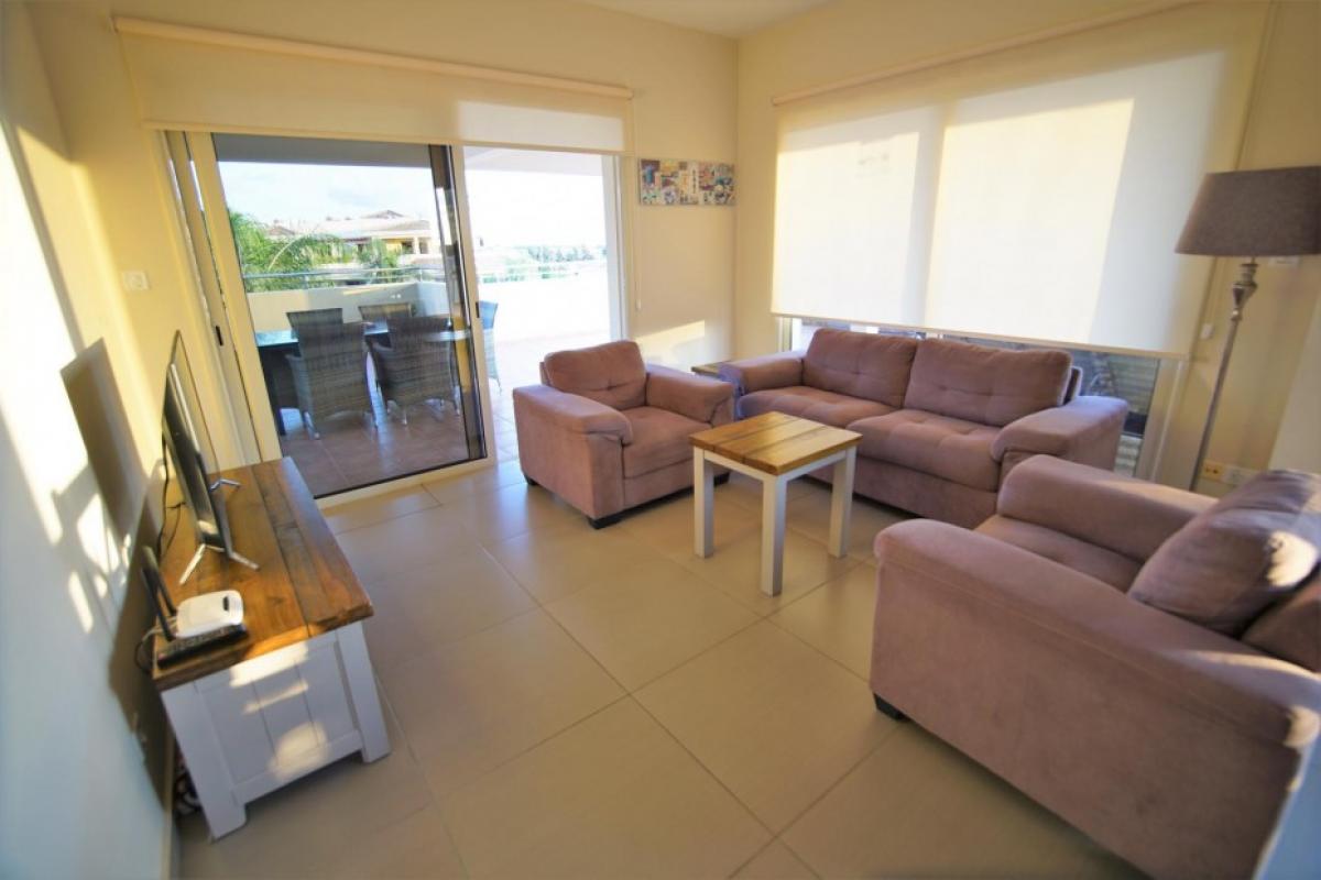 The penthouse has sea views from the kitchen, dining and lounge areas. There are views over looking the pool areas too. The development is a short walk (less than 5 minutes) into the center of the village, which has several restaurants, pubs and a mini-market. The development is a short drive (5 min) to Paphos airport; and 5-10 minutes to three of the top golf courses on the island. It is less than a mile to the beach, approximately 15 minute walk.A