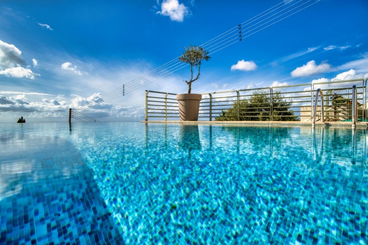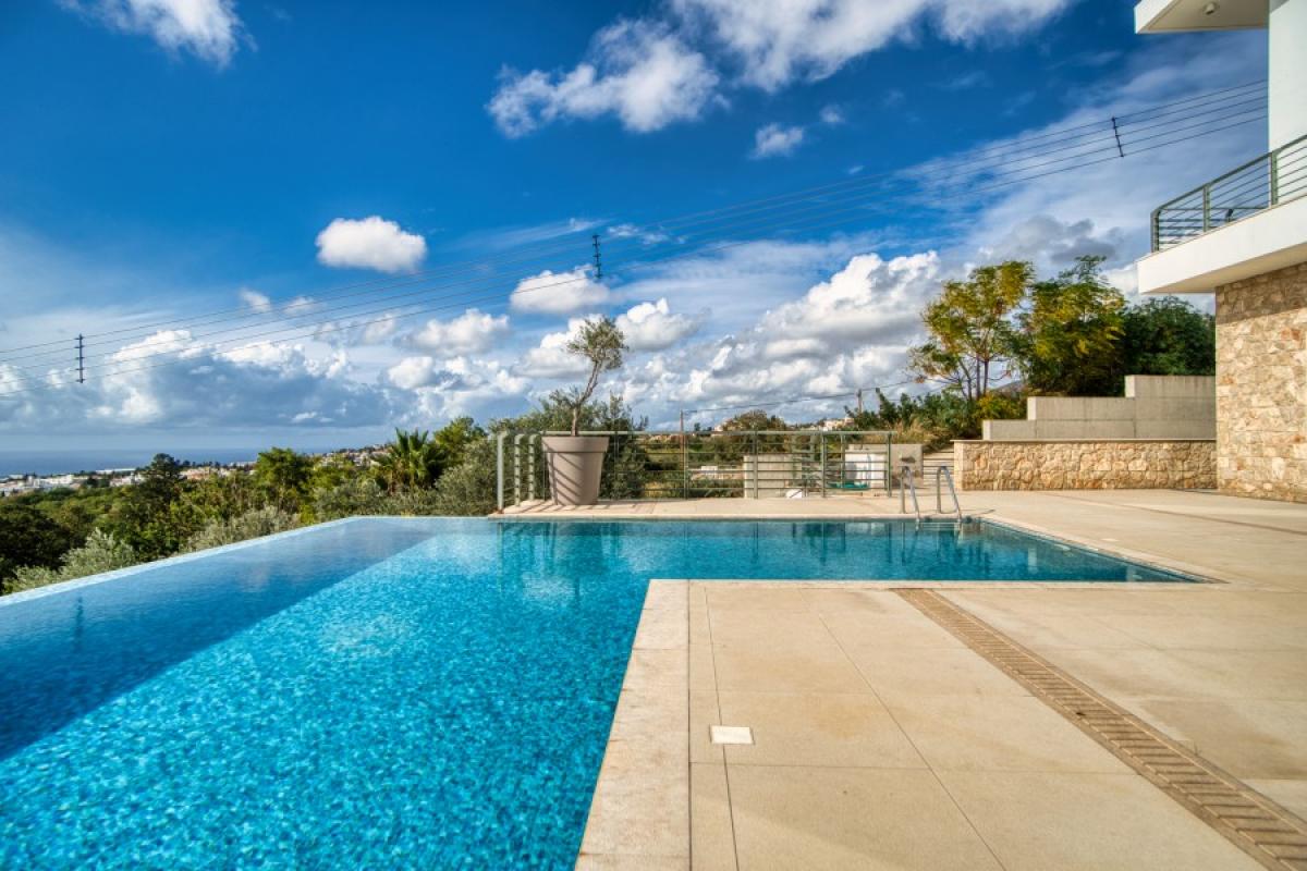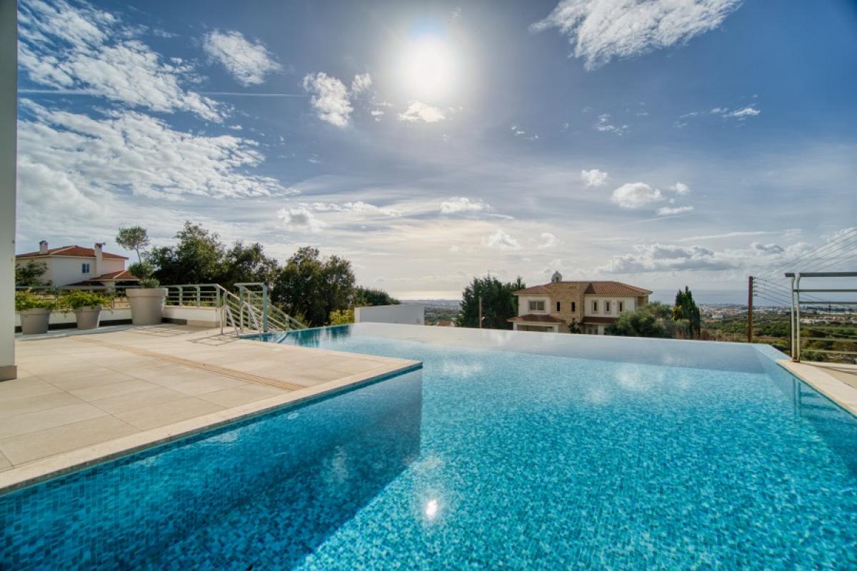 Luxury and beautifully presented eight bedroom villa, set within a charming double aspect plot with stunning views over the Paphos coastline, locatedA , just minutes from Pafos town center and within easy access to the highway.A A This property offers the unique opportunity of a tranquil and secluded setting, yet is within easy reach of all amenities, the International School of Paphos and the golf club at Tsada.A Set on a large plot the property has a private swimming pool surrounded by terraces, gardens and relaxation areas with fantastic views.A A There is a studio flat in the garden.A Close to the bus services and to all the amenities of the village.A Mesa Chorio is just 3km from Paphos with breathtaking and elevated sea views.A This is a wonderful property for either a holiday home or for those seeking a tranquil hideaway. With an impressive open plan living room, entrance hall and designer kitchen; four light and airy en-suite bedrooms; direct access to a terrace and pool area from the living room which boasts an abundance of impressive views. Luxury touches include under floor heating, a VRV system for cooling, large sun deck by the oversize private pool, private car parking and special designed bathroom futures The well laid out and meticulously maintained garden guarantees privacy and features spacious sized pool terraces and a Bbq area.