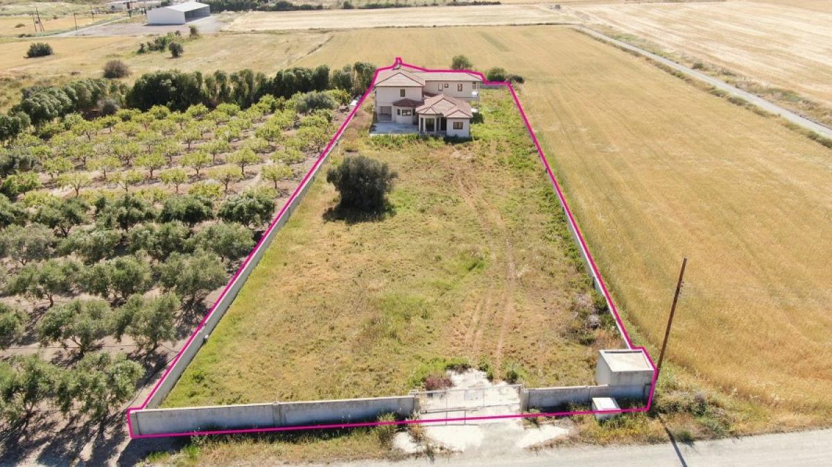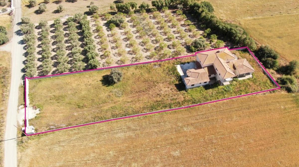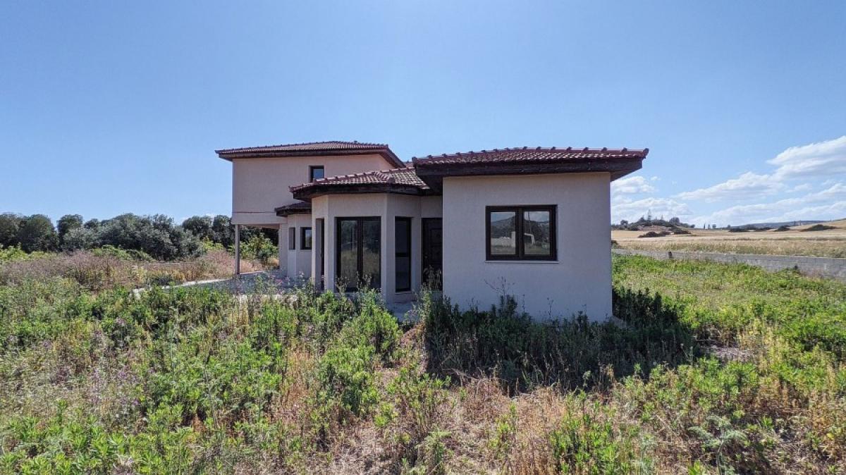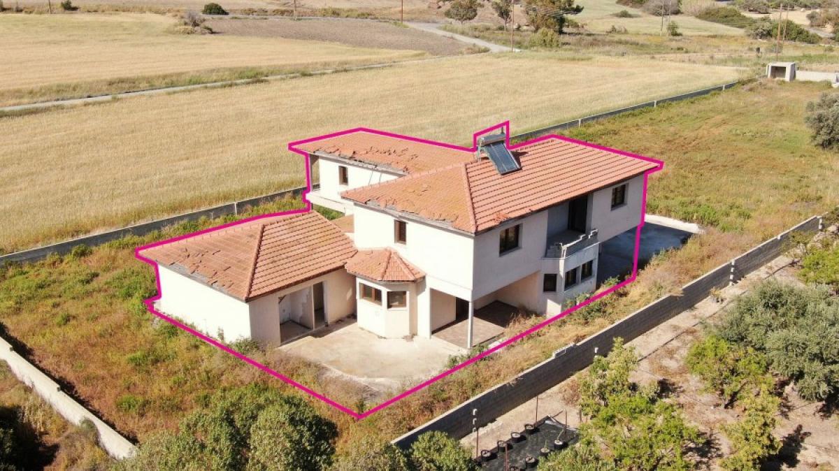 Incomplete two-storey detached house. The ground floor is comprised of a hall, dining room, living room, kitchen, W/C, two bedrooms, bathroom an extra kitchen and three terraces. The first floor is comprised of a bathroom, and 3 bedrooms each equipped with a wardrobe and one is ensuite with a bathroom and two terraces. Furthermore there is an external auxiliary building comprising of a storage room, engine room and a garage. The house has an expired approved building permit with an approx. covered area of 203 sq.m. The asset is located 1km from the motorway. The property falls within Zone Z1, with a building coefficient of 6%, coverage of 6%, and permission for 2 floors (8.3m) of construction.