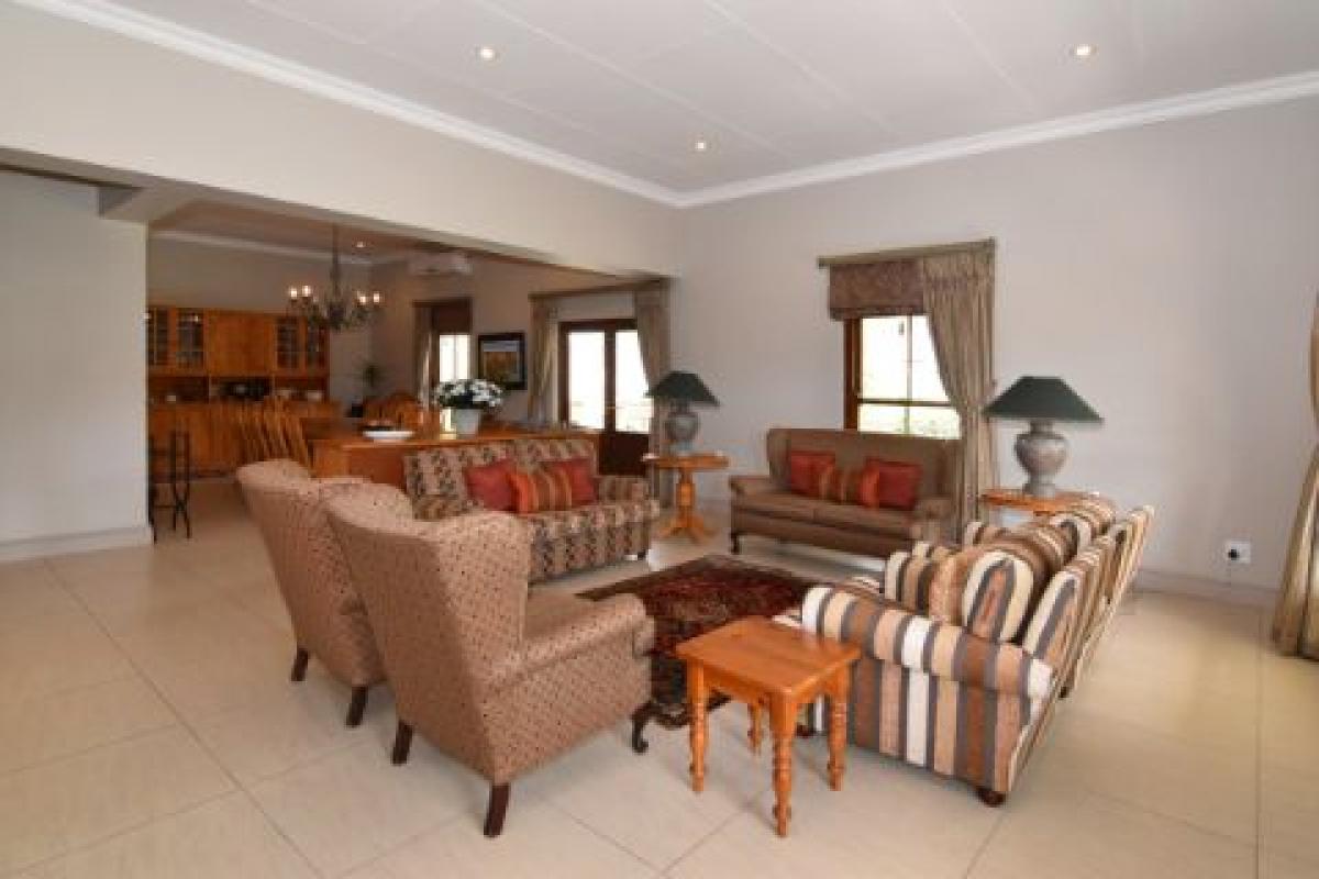 The designer landscaped garden with a majestic centurion wild fig tree and magnificent fishpond frames this luxurious farm-style home with its large wrap-around patios. Water features add to the country feel of this home. it gives you a sense of being miles away from town, yet in close reach of quaint award-winning restaurants serving traditional South African or international food.