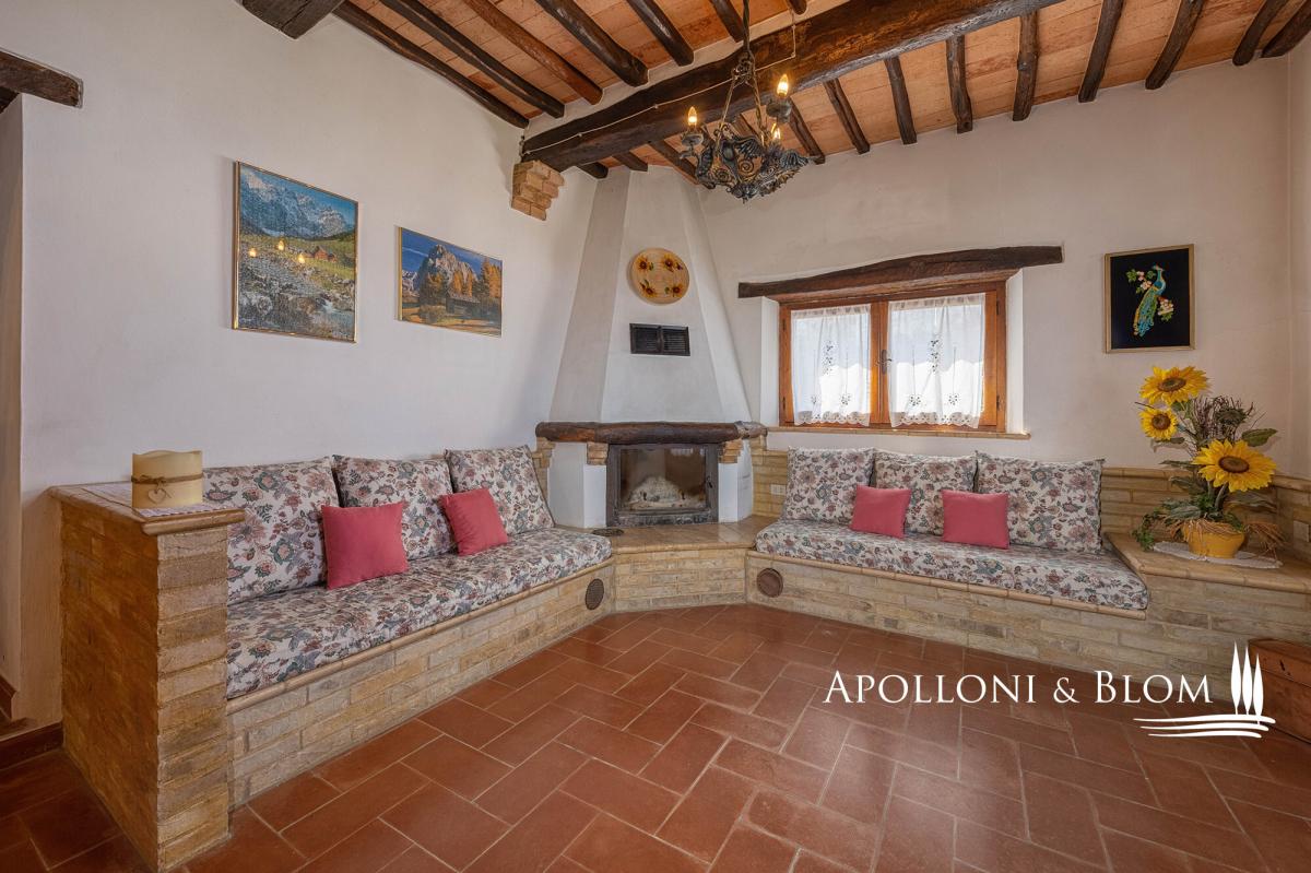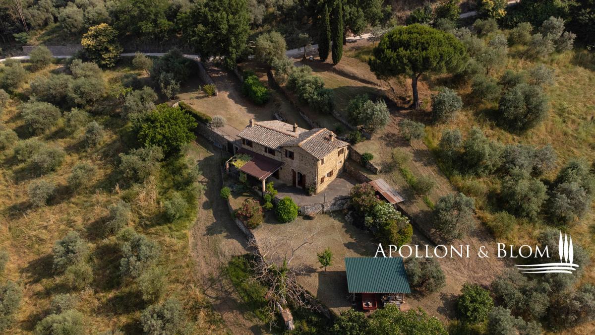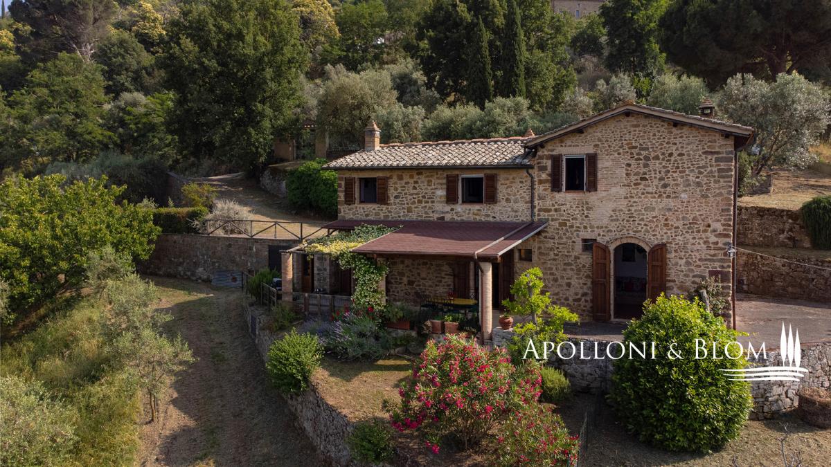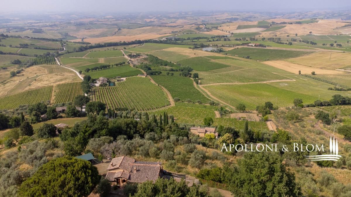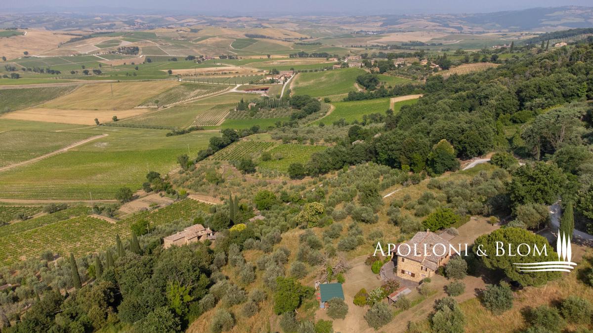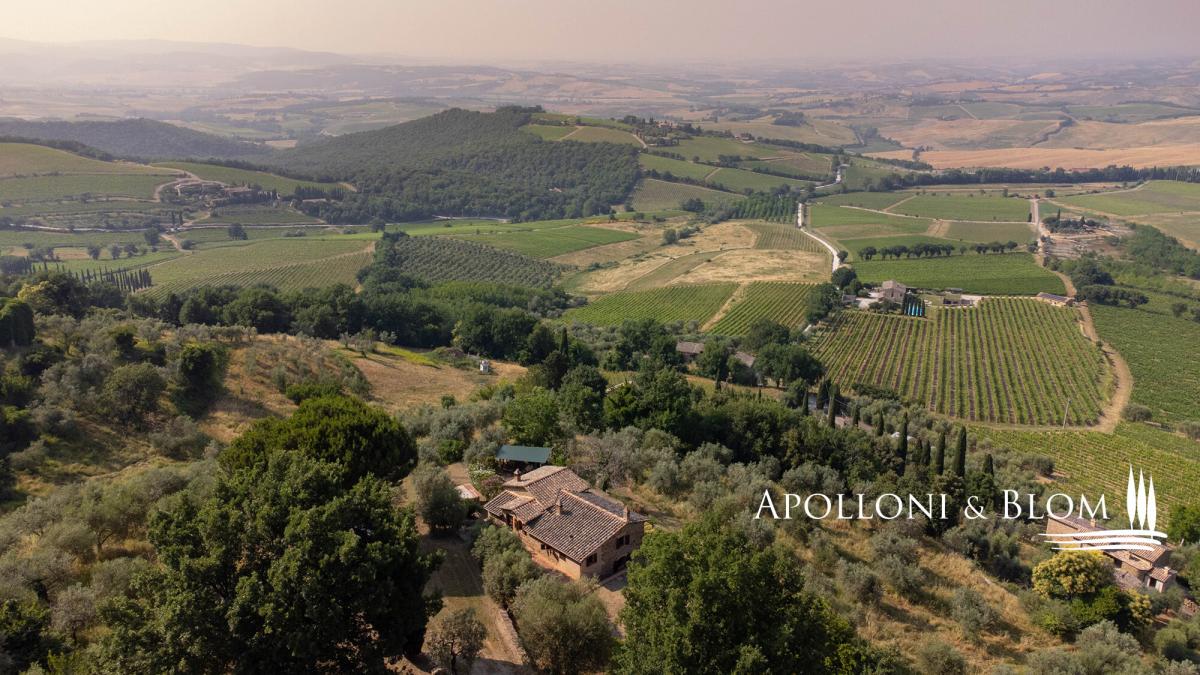 Stone façade, panoramic views, olive groves, elegant Tuscan former farmhouse for sale in the hills of Montalcino. Set amidst the rolling hills surrounding Montalcino, this charming 19th-century Tuscan farmhouse offers a rare blend of timeless beauty, rustic elegance, and captivating views that stretch across the horizon. Surrounded by unspoilt countryside and reached via a scenic country lane, the property enjoys a serene and private location, just moments from one of Tuscany’s most prestigious wine estates. The house spans approximately 250 square meters over two levels and sits within 3.2 hectares of private carefully tended grounds, enriched by 150 mature olive trees, lovingly maintained by a neighbouring farmer. The traditional stone façade and authentic architectural features evoke the soul of rural Tuscany with arched doorways, terracotta flooring, vaulted ceilings and exposed wooden beams: all tell the story of a bygone era. The main floor comprises a luminous living area, anchored by a majestic fireplace that radiates warmth and character. A hand-crafted terracotta stove adds further charm to the adjacent dining aere. The kitchen is both practical and inviting, complemented by a cellar that could be easily converted into a guest bathroom. Expansive windows frame sweeping views of the Val d’Orcia, allowing natural light to bathe every corner of the home. Upstairs, the sleeping quarters include three well-proportioned bedrooms and two tastefully finished bathrooms, offering comfort and style in equal measure. Although restored roughly 30 years ago, the property now presents an ideal opportunity for bespoke interior updates. The absence of a central heating system allows for the installation of a modern, energy-efficient solution, such as a heat pump with hot/cold split units—ensuring year-round comfort and sustainability. The estate also holds exceptional potential for outdoor living: subject to the necessary permissions, a private swimming pool could be added, seamlessly integrating with the surrounding landscape to create a tranquil retreat for family and guests. Located just 500 metres from the celebrated Il Marroneto winery and 1 km from the historic village of Montalcino—with its vibrant culinary scene and world-renowned Brunello wines—this property embodies the quintessential Tuscan lifestyle. Whether envisioned as a refined countryside residence or a boutique hospitality venture, this Montalcino casale is a magnificent offering—where heritage, nature, and modern living come together in perfect harmony. PROPERTY Ref: MON3290 Type: 250 sq m/2690 sq ft two-story stone casale, ground floor cellar, land with olive grove Year of construction: 1800 Year of restoration: 1993 Conditions: good Land/Garden: 3,2 hectares/7.9 acres including an olive grove with 150 trees Terrace/Balcony: veranda and terrace Swimming pool: possibility to construct Utilities: Fixed telephone network: available Internet: available Heating: 1 fireplace + 1 stove + electric boiler Water: mains city supply Electricity: available Water waste: Imhoff tank Location: Montalcino, Province: Siena, Region: Tuscany Distance from services: Montalcino 1km Distance from main airports: Perugia 84 km, Florence 123 km, Rome 231 km Gravel road: 1 km in good state of maintenance - 500 euro annual cost for maintenance Layout: Main Floor: living room, kitchen, cellar (possibility to convert into a bathroom) Upper Floor: 3 bedrooms, 2 bathrooms- parking