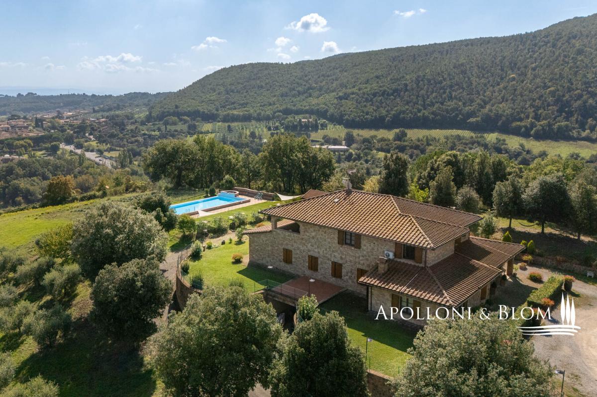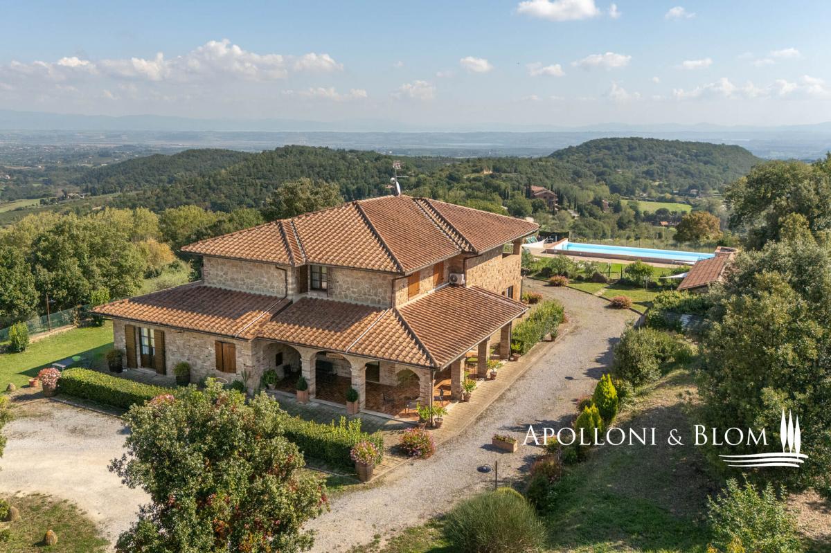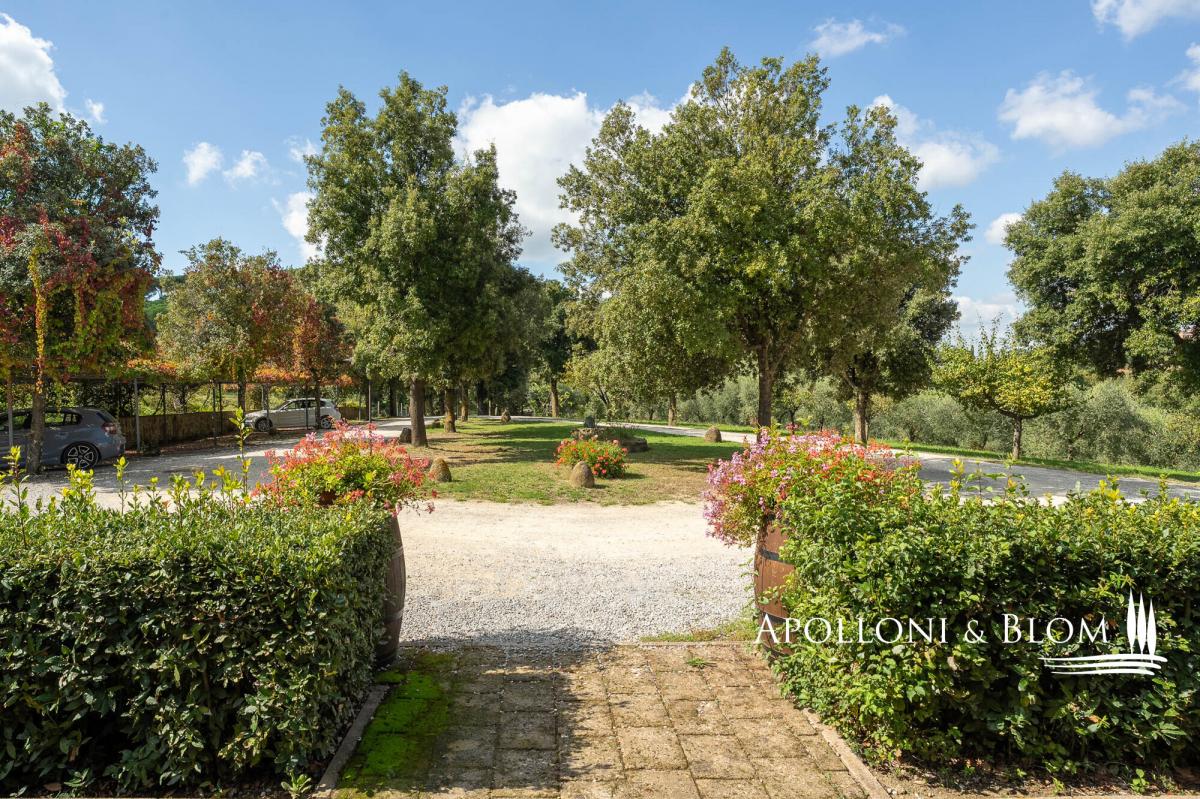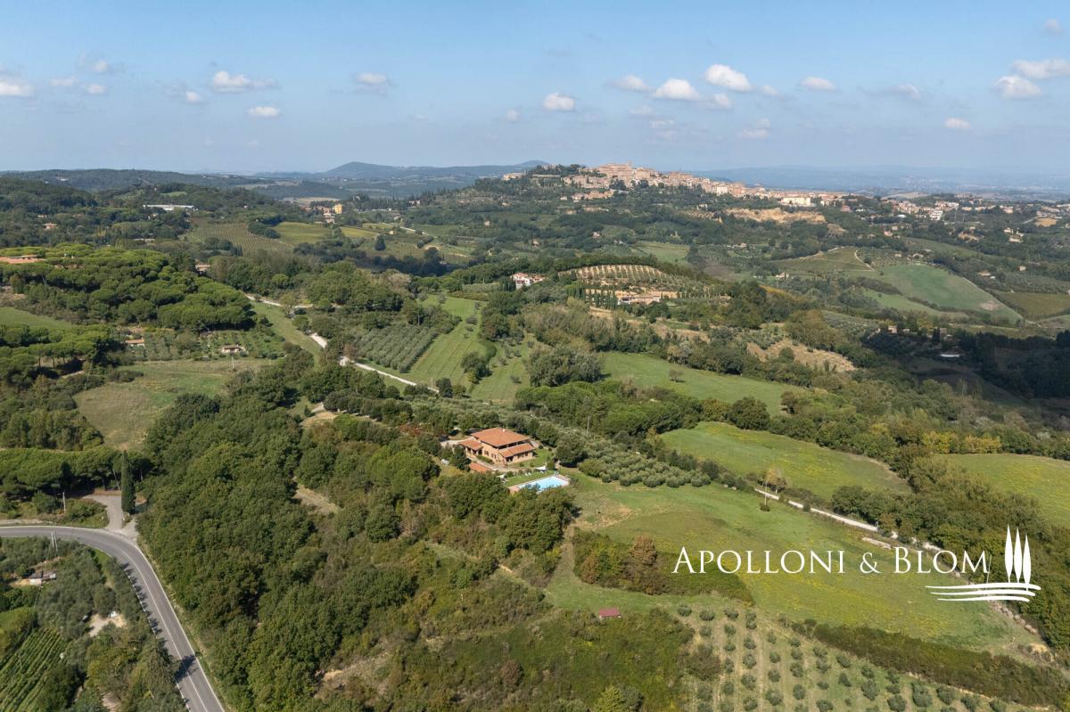Hilltop dominant views over the Val d’Orcia, on 5.8 hectares of land, finely restored with swimming pool and guest quarters for sale in Montepulciano. Commanding a majestic hilltop position with sweeping views across the UNESCO-listed Val d’Orcia and Valdichiana, this exceptional country residence, set within 5.8 hectares (14.3 acres) of private land, is offered for sale just moments from the medieval splendour of Montepulciano. A rare opportunity to acquire an elegantly restored Tuscan estate, the property seamlessly blends traditional architectural features with refined modern comforts, all framed by the softly undulating landscape of southern Tuscany. Constructed in 2005, the main residence offers 579 square metres (6232 sq ft) of internal accommodation arranged over two floors in addition to a basement with cellar, storage, and utility rooms. The principal living quarters include multiple reception rooms, two kitchens, and six well-appointed bedrooms, each with en-suite bathroom, air conditioning, and bespoke detailing. A number of the guest suites benefit from private entrances and exclusive furnished terraces, allowing for greater privacy and direct engagement with the exceptional views. The house is set within a meticulously landscaped garden planted with mature olive and fruit trees, which gracefully encircle the panoramic swimming pool and sun deck, an inviting space that enjoys uninterrupted vistas over the surrounding countryside. Outdoor living is further enhanced by shaded dining areas and tranquil seating spaces, creating a seamless connection between architecture and nature. Complementing the main residence are two single-storey annexes, currently serving as additional storage but offering scope for further adaptation subject to the relevant consents. The wider estate encompasses a richly cultivated olive grove of 1.7 hectares (4.44 acres), featuring prized native varietals as Leccino, Frantoio, and Moraiolo, producing a distinguished DOP extra virgin olive oil. Additional land includes 2.4 hectares (5.94 acres) of arable terrain and an orchard, supporting both agricultural and recreational use. At present, the property successfully operates as a boutique agriturismo, offering a well-established income stream with high-end accommodation. However, the estate would lend itself equally well to transformation into a distinguished private residence or indeed a refined hospitality venture, capitalising on its unrivalled location near cultural jewels such as Pienza, Montalcino, and Bagno Vignoni. Discreet yet highly accessible, only 3 km (1.9 miles) from local amenities, this is an estate of rare character and enduring appeal, perfectly poised at the intersection of Tuscan tradition and contemporary rural luxury. PROPERTY Ref: MTP3327 Location: Montepulciano, Province: Siena, Region: Tuscany Type: 600 sq m/6458 sq ft country house on two levels with 16 rooms, currently run as a hospitality business, with annex and cellar Annex/es: one measuring 45 sq m and one of 16 sq m used as a storage room Year of construction: 2005 Conditions: good Land/Garden: 4,831 sq m/1.19 acres of landscaped garden, a total of 5.8 hectares/14.3 acres of agricultural land including 1,7 ha/4.44 acres olive grove in full production with Leccino, Frantoio and Moraiolo varieties, 2.4 ha/5.94 acres arable land, 367 sq m/0.09 acres of pasture 416 and sq m/0.10 acres of orchard Terrace/Balcony: 45 sq m/484.3 sq ft Swimming pool: 14x7m, panoramic with sundeck Parking: 5 outdoor parking spaces Utilities: Fixed telephone network: available Internet: broadband active Heating: LPG Water: mains city supply Electricity: available Water waste: Imhoff tank Distance from services: 3 km/1.9 miles Distance from main airports: Perugia 82 km/51 miles, Florence 126 km/78 miles, Rome Fiumicino 203 km/178 miles Gravel road: 150 mt/492 ft Layout: Country House 579 sq m/6232 sq ft: Basement: 170 sq m/1829 sq ft storage and utility rooms, cellar Ground Floor: entrance hall, 4 corridor, guest bathroom, two living rooms, two kitchens, 4 bedrooms with bathrooms (one of which is a service room), utility room First Floor: corridor, living room, veranda, office, bathroom, kitchen, 2 bedrooms with bathrooms Annexes 1 - 45 sq m/484 sq ft: one-level building used as storage Annexes 2 - 16 sq m/172 sq ft: one-level building used as storage- garden