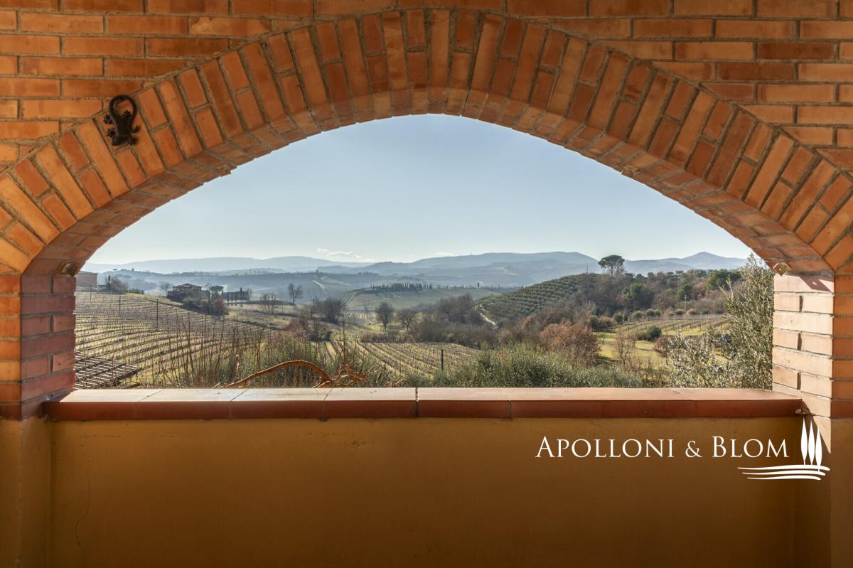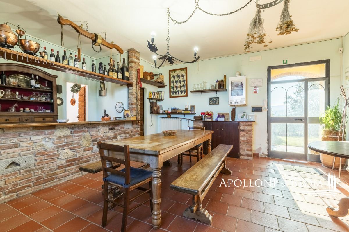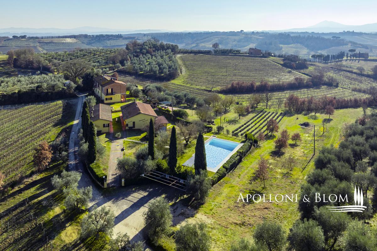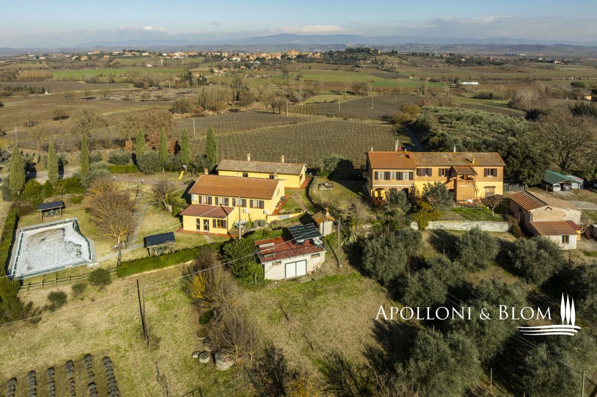 Prestigious setting, hill-top with panoramic views, guest apartments, DOCG vineyards and cellar for sale in Montepulciano. Set amid the rolling hills of Montepulciano, at the very heart of the prestigious Vino Nobile di Montepulciano DOCG territory, this wine and olive estate expresses the classical Tuscan country living. Commanding a privileged hilltop position, the property enjoys far-reaching, uninterrupted views across the Valdichiana countryside, where vineyards, olive groves and medieval villages unfold in a timeless panorama. The estate extends to 4.6 hectares (11.4 acres) of private land, devoted to the production of celebrated Vino Nobile di Montepulciano DOCG and fine extra-virgin olive oil. Arranged across nine separate buildings and offering 1,060 sq m (around 11,410 sq ft) of surface, the property is remarkably versatile, lending itself equally to use as a private residence or as a hospitality or wine-focused retreat. The accommodation comprises 10 bedrooms and 7 bathrooms, each enjoying captivating views over the surrounding countryside. The gardens are thoughtfully landscaped and frame a swimming pool perfectly positioned to take full advantage of the views along with a 50 square meters terrace with a barbecue. Completing the agricultural facilities is a wine cellar and 400 sq m (4,306 sq ft) of annexes dedicated to storage and farming use. The vineyards, currently managed under grape conferment agreements, are planted exclusively with Sangiovese and yield approximately 120 quintals per year. The olive grove extends across1.4 hectares (3.5 acres) and is home to over 380 mature trees, contributing to the estate’s prized EVO oil production. Presented in good condition, an enviable opportunity to embrace the lifestyle of Tuscany’s great wine estates, within one of its most revered and tightly held DOCG appellations. PROPERTY Ref: MTP3452 Location: Montepulciano, Province: Siena, Region: Tuscany Type: 4.6-hectare winery with a farm complex totaling 1,060 sq m/11,410 sq ft spread over 9 buildings, renovated for agritourism use into 6 self-contained apartments with park and swimming pool, along with tasting rooms, cellars, storage rooms, and warehouses Land/Garden: 4.6 hectares/11.4 acres of agricultural land, including 1.39 hectares/3.4 acres of vineyards planted with Sangiovese, of which 1.25 hectares/3.1 acres are designated Vino Nobile di Montepulciano DOCG and 0.14 hectares/0.34 acres classified as Toscana Rosso IGT. The property further comprises 1.40 hectares/3.46 acres of olive groves with 380 trees, 0.38 hectares/0.94 acres of arable land, 0.05 hectares/0.12 acres of lavender fields, and approximately 0.71 hectares/1.75 acres of landscaped parkland DETAILS ON WINE PRODUCTION - Current vineyard surface: 1.39 hectares/3.44 acres (Vino Nobile di Montepulciano DOCG + Toscana IGT) - Appellation: 1.25 ha/3.09 acres Vino Nobile di Montepulciano DOCG + 1,375 sq m (0.14 ha/0.35 acres) Toscana Rosso IGT - Varieties: Sangiovese (100%) - Average altitude: 250 – 330 m asl - Planting distance: 2.80 × 1.00 m/9.19 × 3.28 ft | 2.40 × 0.90 m/7.87 × 2.95 ft - Years of planting: 1998, 2019, 2020 - Training: spur-pruned cordon - Yearly production: 120 quintals of grapes per year - Wine produced: Vino Nobile di Montepulciano DOCG + Toscana Rosso IGT Terrace/Balcony: 3.70 sq m/40 sq ft balcony Swimming pool: 15x8 metres Parking: 2 covered parking seats plus outdoor parking spaces Utilities: Fixed telephone network: unavailable Internet: 5G Heating: gas and LPG, heat pump, wood-burning fireplace and pellet stove, air conditioning in select areas Water: mains city supply and 1 artesian well Electricity: available Water waste: Imhoff tank Electric gate Distance from services: 6 km/3.7 miles Distance from main airports: Perugia 73 km/45 miles, Florence 126 km/78 miles, Rome Fiumicino 206 km/128 miles Gravel road: 500 metres/1,640 ft Layout Manor villa/ Farmhouse Building 1: 91.50 sq m/985 sq ft total Ground floor: 2 flats, each with kitchenette, 1 double bedroom, 1 bathroom Building 2: 163.11 sq m/1,755 sq ft - Ground Floor: Apartment 3: living room/dining area, 1 kitchen, 2 bedrooms, and 1 bathroom; Apartment 4: living room/dining area, 1 kitchen, 2 bedrooms, and 1 bathroom Basement: 27.18 sq m/293 sq f pool service area with showers and changing rooms External canopy: 10,43 sq m/112 sq ft Building 3: 323.43 sq m/3,481 sq ft + 12.69 sq m/137 sq ft balconies + 14.22 sq m/153 sq ft porch Apartment 1 on 2 levels: Ground Floor: entrance from external porch, living room/dining area, kitchenette, internal staircase; First Floor: 1 hallway, 2 bedrooms, one with a 3.70 sqm balcony, 1 bathroom Ground Floor: 68.75 sq m/740 sq ft room used for tasting and selling agricultural products, 1 toilet, storage room, 55.49 sq m/597 sq ft cellar First floor: Apartment 2 of 107.26 sq m/1,155 sq ft with access via external staircase: living room/dining area and kitchenette with a 8.99 sq m/97 sq ft balcony, 2 bedrooms and 1 bathroom Building 4: 110.12 sq m/1,185 sq ft - Ground Floor: solarium 60.12 sq m/647 sq ft with bread oven; Basement: 50 sq m/538 sq ft Building 5: 20 sq m/215 sq ft - canopy Building 6: 63.74 sq m/686 sq ft - cellar and storage Building 7: 193.04 sq m/2,078 sq ft made of a covered shed of 46.80 sq m/504 sq ft, and a canopy of 146.24 sq m/1,574 sq ft Building 8: 17.10 sq m/184 sq ft - henhouse Building 9: 39.53 sq m/425 sq ft - kennels- garden
