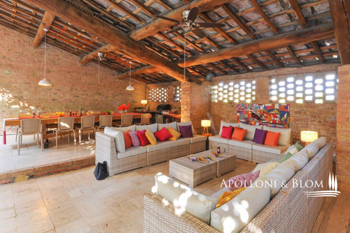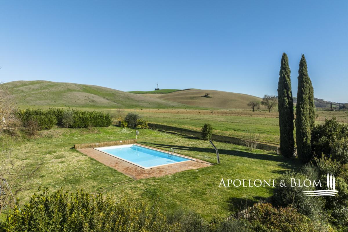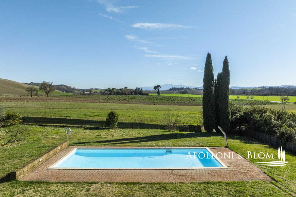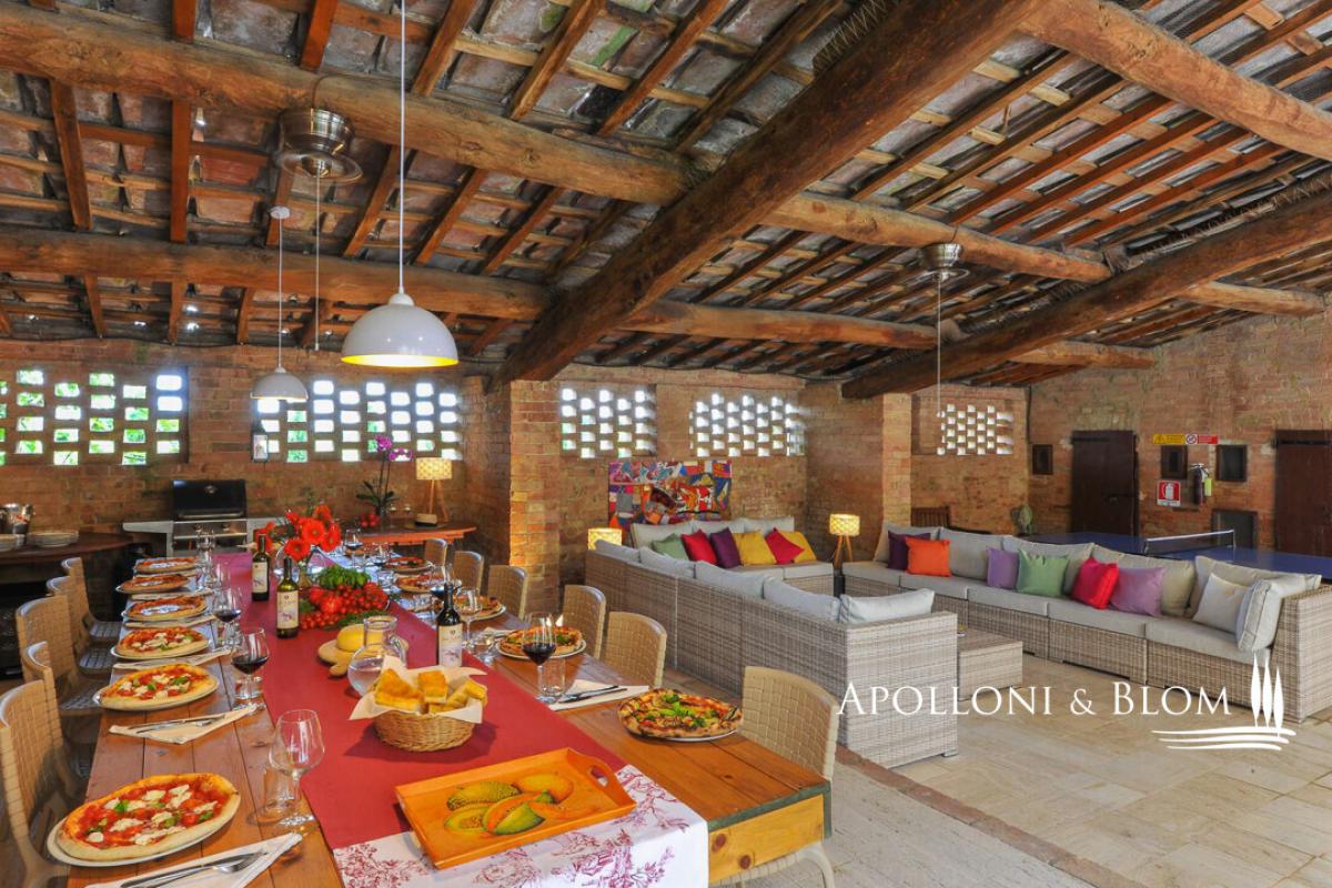 Authentic hunting lodge, historic features, guest house, air conditioning, electric car station, white truffle reserve, for sale south of Siena. Prime setting, just ten minutes south of Siena, in the heart of the Val d’Arbia and within easy reach of the Crete Senesi, Montalcino and the Val d’Orcia, this distinguished mid-18th-century country residence stands in a private yet convenient position, moments from local shops and amenities. Formerly the hunting lodge of a noble Sienese family, the estate enjoys views across the Tuscan countryside, framed by cypress avenues and Mediterranean planting. Extending to approximately 800 sq m (8611 sq ft), it features a casale arranged around an internal courtyard paved in natural stone, paired with a graceful three-arched former barn, and a two-story guest cottage. The casale ground floor retains magnificent vaulted terracotta ceilings, while the upper level is characterised by exposed timber beams. The accommodation is presently configured as five independent apartments within the main house, each offering one or two bedrooms, complemented by a charming two-storey guest cottage with a further two bedrooms. In addition, ancillary living areas and a traditional bread oven. The estate holds an agriturismo licence for 20 guests and benefits from an established international clientele with a weekly renting rate of 12.000 USD. The property is equipped with a 20 kW photovoltaic system providing sustainable energy and hot water production, alongside air conditioning, and an electric vehicle charging station. A panoramic heated swimming pool with jacuzzi, sun terraces and a volleyball court complete the leisure amenities. Of particular distinction is the private white truffle reserve within the woodland. The landscaped grounds extend to 4 hectares (10 acres), comprising formal gardens, pasture, woodland, and organically cultivated arable land. An estate of notable heritage and environmental sensitivity, combining renewable energy, agricultural potential and refined hospitality, all within immediate proximity to one of Tuscany’s most celebrated cultural centres. PROPERTY Ref: SIE3554 Location: Val d'Arbia, Province: Siena, Region: Tuscany Type: 570 sq m/6135 sq ft two-story 18th-century country house plus inner courtyard, 2 annexes for a further 230 sq m/2475 sq ft including a former barn with living area, bread oven, and a two-story guest house, surrounded by landscaped gardens, heated swimming pool, volleyball court, solar energy, farmland with white truffle reserve Year of construction: 1750 Year of renovation: 2000 and 2023 Condition: excellent Land: 4.07 hectares/10 acres consisting of approx. 2460 sq mt/0.6 acres of garden, approx. 3.6 ha/9 acres of arable land with organic production, 880 sq mt/0.2 acres of pasture land and 0.67 ha/1.6 acres of woodland with a white truffle reserve Swimming Pool: 12x5 mt heated pool featuring a solar shower and a shaded area sundeck, an underground technical room with a heat pump Parking: 8 shaded parking spaces Utilities: Fixed telephone line: available Internet/Wifi: available broadband Heating: LPG with in-ground tank + solar energy for hot water Water: mains city supply for domestic use + 1 well + authorised irrigation from nearby river and underground tank Electricity: available + 20 kW photovoltaic system Air conditioning Jacuzzi Electric vehicle charging station Solar panels Centralized drip irrigation system Agritourism license for a total of 20 pax Distance from amenities: 500 mt. Distance from main airports: Florence 95km, Perugia 105km, Pisa 135km Access: private 160 mt driveway Layout Main Country House: Ground Floor: Living room with fireplace dining and kitchen, office/reception room, bathroom Apartment 1: living room with kitchen, 2 bedrooms, 1 bathroom with shower Apartment 2: living room with kitchenette, 1 bedroom, 1 bathroom with shower First Floor: Apartment 3: living room with fireplace, kitchen, 1 master bedroom with walk-in closet and bathroom, second bedroom and 1 family bathroom Apartment 4: living room with kitchenette, 1 bedroom, 1 bathroom with shower Apartment 5: living room with kitchenette, 1 bedroom, 1 bathroom with shower Attic space of 20 sq mt/215 sq ft with a pull-out staircase used as a storage area Annexes: 1. two-storey guest house of 83 sq m with living room, kitchen, 1 double bedroom with en suite bathroom and fireplace, 1 bedroom and bathroom with Jacuzzi; 2. old barn with three arches, of 115 sq m on one level, with summer living area featuring travertine slab flooring and solar panels on the roof, a room with an original bread oven, 1 staff bathroom, 2 rooms for technical use with boiler and technological systems; 1 wooden annex for storing garden equipment.- garden