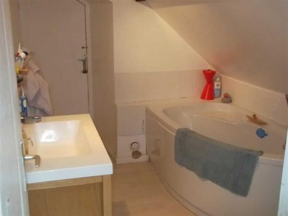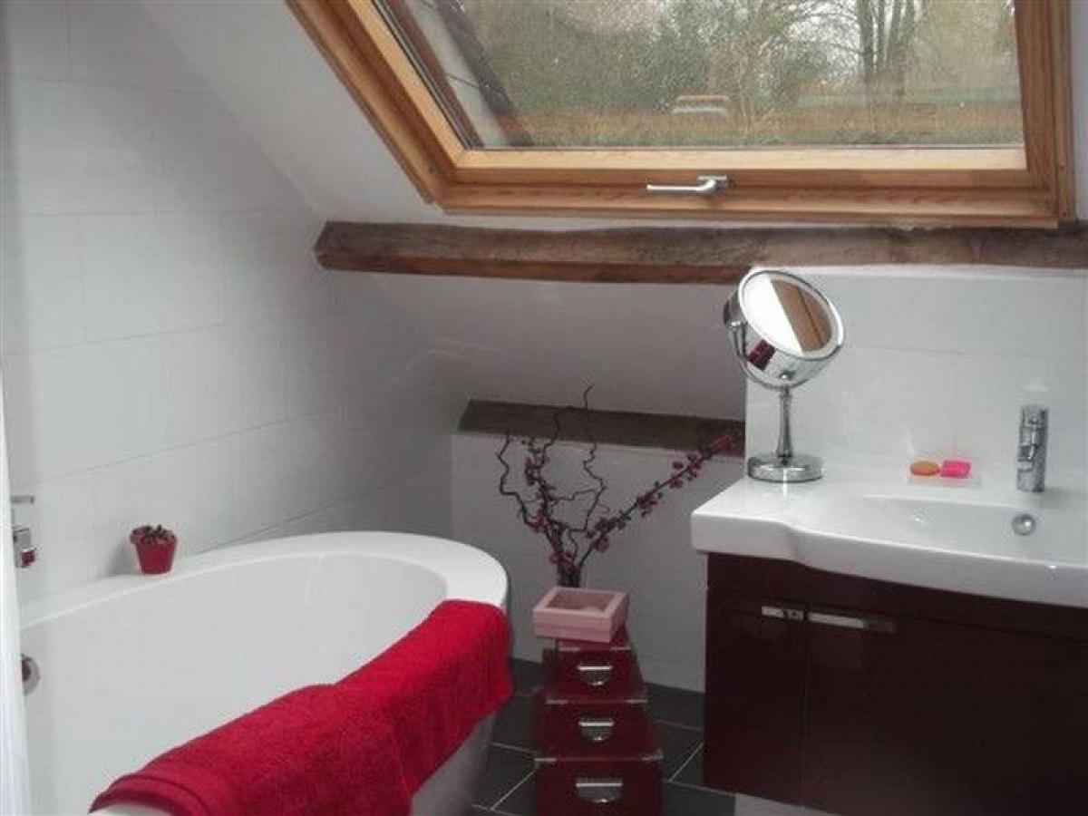 Just off the landing area you will find this modern bathroom. Entering through the opaque sliding glass door you arrive in this recently installed bathroom, the suite is white and includes an oval bath, sink unit and WC .