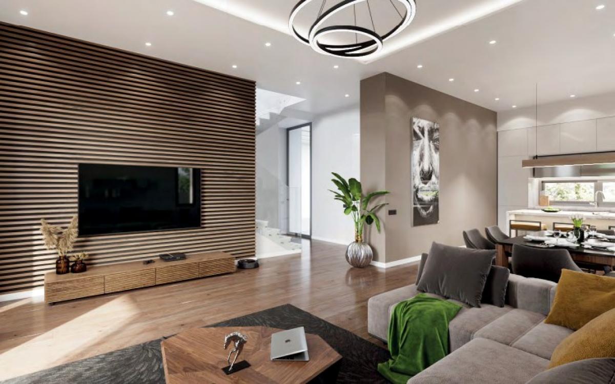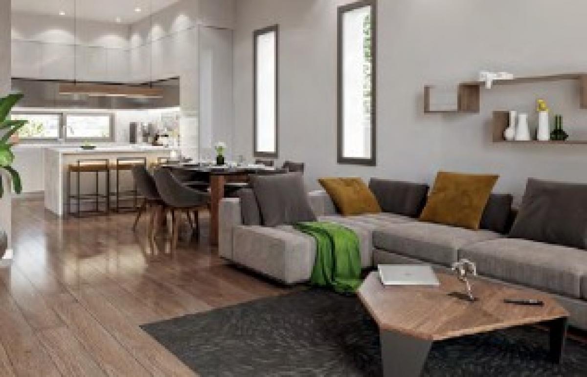Presenting Luxury villas for residents who prefer detached family houses. Residents can choose between three- or four-bedroom villas and one of three types of layout. Each house has its own garden with everything needed to create a relaxed family home. Bright and spacious, Garden Square villas also boast private rooftop terraces, and some have optional private swimming pools. All villas are located within a gated complex, complete with green area and a playground for children. Natural materials and a modern design aesthetic bestow the property with a congenial design.A Kitchen and living room are harmoniously combined into one space through the careful distribution of light, appliances and furniture.A