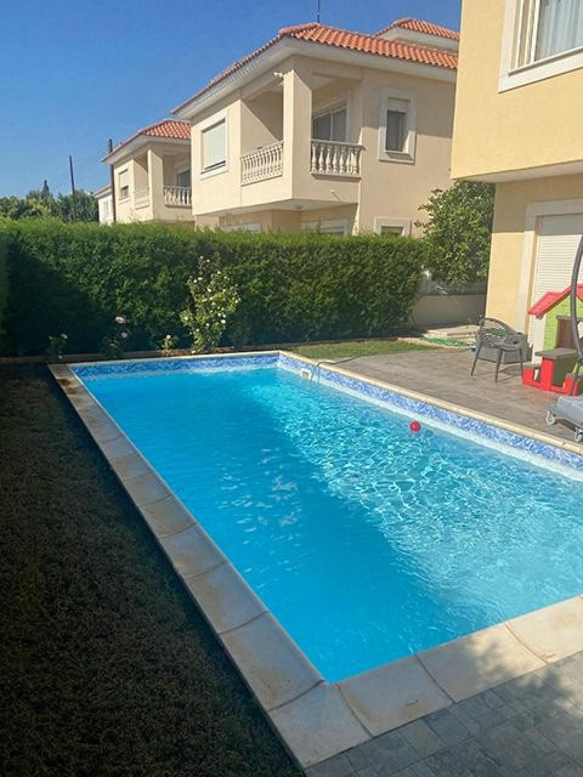 3 bedroom villa in a gated complex in Moutagiaka Area,Limassol. Delightful property is with private pool and mature landscaped garden area and covered garage.Ground floor offers spacious open plan living room, dining and kitchen area, guest W/C1st floor offers 3 double bedrooms, (master bedroom with en-suite bathroom), laundry areaWith a private Roof Terrace with BBQ, offering lovely sea views.A