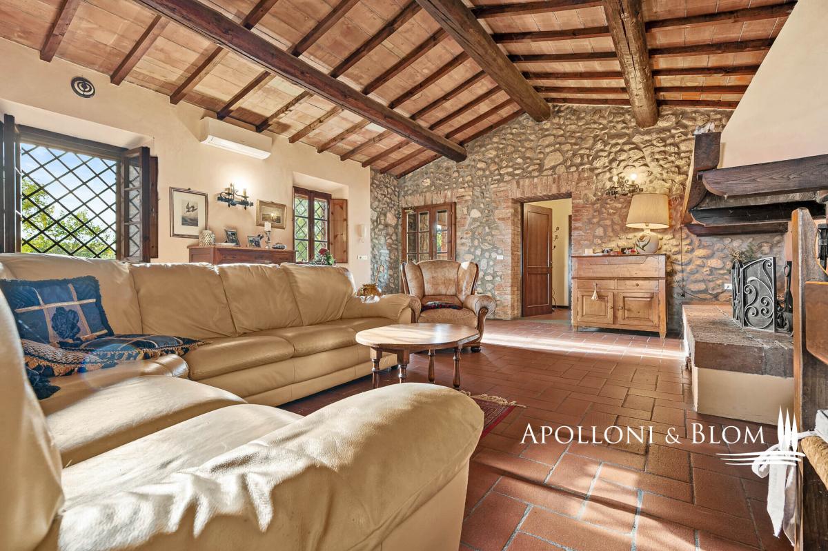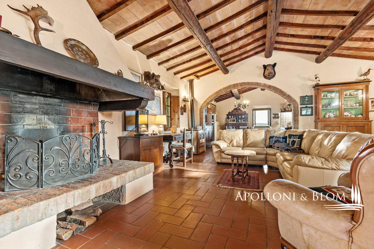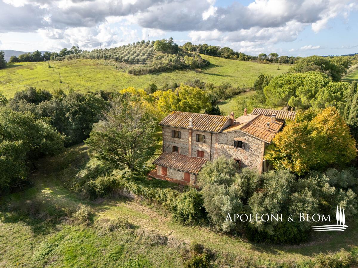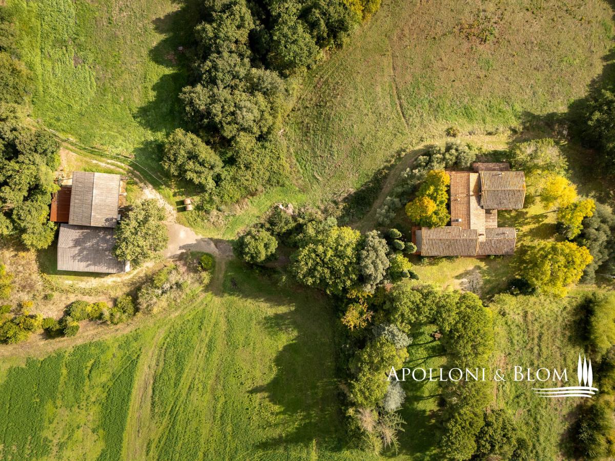 40-hectare farm in a unique setting, with a finely restored period stone country house with annexes, for sale south of Siena. Nestled amid the rolling hills of southern Tuscany, this enchanting 40-hectare estate enjoys a truly privileged setting within the Val di Merse Natural Reserve—just 25 km south of Siena and a short drive from the Tyrrhenian coast. Located near the charming hilltop village of Montepescini, the property offers privacy, beauty, and access to some of the region’s most authentic cultural and culinary experiences.At the heart of the estate stands a beautifully restored period farmhouse, dating from the 1800s and meticulously renovated in 2005. Spanning approximately 500 sqm (5,381 sq ft) over two levels, the residence blends rustic Tuscan charm with elegant modern comfort. Traditional stone facades, terracotta floors, and high beamed ceilings evoke timeless character, while panoramic windows frame idyllic views across gardens and countryside.An outdoor staircase and covered loggia lead to the principal apartment on the upper floor, featuring a spacious double reception room with fireplace, a well-appointed kitchen, four bedrooms, and two bathrooms. On the ground floor, two self-contained guest apartments have been tastefully finished in a traditional style—each comprising two bedrooms and a bathroom—making this an ideal property for agritourism or luxury hospitality ventures.The grounds are equally captivating, with the potential to add a swimming pool and further elevate the lifestyle offering. The estate comprises a Chianti Colli Senesi DOCG vineyard planted with Sangiovese grapes, 400 olive trees, arable land, woodland, a private lake, and two natural springs that flow year-round. The estate also forms part of an exclusive Agrituristico Venatorio reserve, offering licensed game hunting and abundant wildlife including wild boar and deer.Whether envisioned as a private residence or boutique country retreat, this rare property offers a unique opportunity to experience Tuscany at its most authentic—in a setting of rare natural splendour, yet within easy reach of Siena and the sea. PROPERTY Ref: SIE3126 Location: Montepescini, Municipality: Murlo, Province: Siena, Region: Tuscany Type: 500 sq m/5381 sq ft three-story former farmhouse finely restored with veranda, and 40 hectares of land with garden, vineyard, olive grove and agricultural annexes Annex/es: 168 sq m/1808 sq ft barn, 122 sq m/1313 sq ft shed both used for agricultural storage, a 22 sq m/236 sq ft former stable building Year of construction: 1800 Year of restoration: 2005 Conditions: excellent Land/Garden: 40 hectares/98.8 acres (fully fenced with concrete poles and wire mesh) including 1 ha/2.4 acres of Chianti Colli Senesi DOCG vineyard cultivated with Sangiovese, 2 ha/5 acres of olive grove with 400 trees, 20 ha/49 acres of woodland, 17 ha/42 acres of arable land Swimming pool: possibility to build an in-ground pool Utilities: Fixed telephone network: available Internet: to be connected Heating: LPG Water: mains city supply + private lake for irrigation use + 2 natural water springs Electricity: available Water waste: Imhoff tank The property is owned by a private individual The location, for privacy, is approximate Please note all measurements cited are approximate Energy Efficiency Rating: G Distance from services: Casciano di Murlo 5km, Siena 25km, Castiglione della Pescaia 70km Distance from main airports: Pisa 150km, Firenze 130km Gravel road: no Layout: Ground Floor: 4 rustic rooms with a bread oven, 2 technical rooms; 2 apartments both with single entrance, living room with kitchen, 2 bedrooms, 1 bathroom First Floor: external staircase with loggia, double living room, kitchen, 4 bedrooms, 2 bathrooms- bathroom