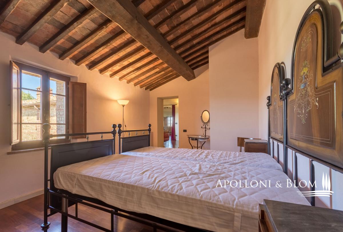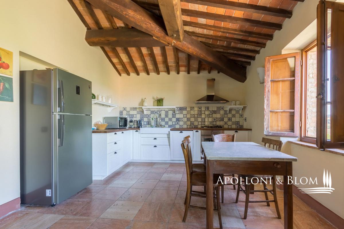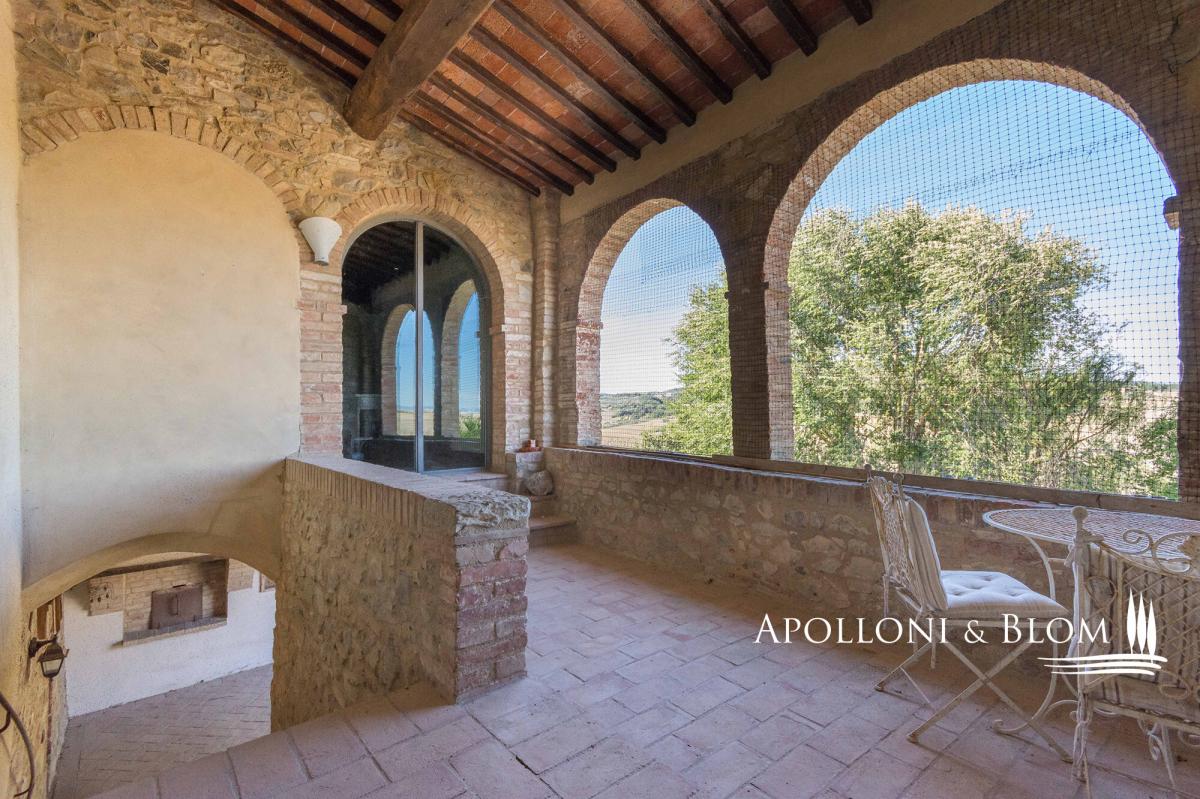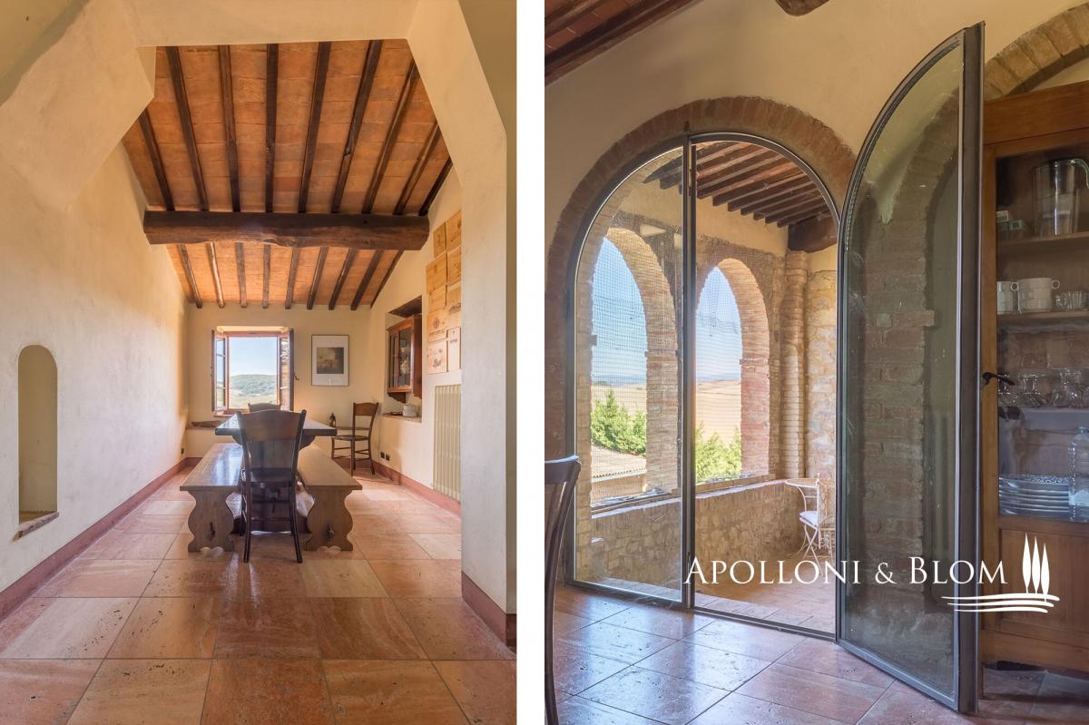 In a scenic and elevated position, an intriguing partially restored stone farmhouse with potential for expansion is for sale in Murlo, south of Siena. Set in a commanding hilltop position with panoramic views over the rolling landscapes of the Crete Senesi, this captivating stone residence lies just 25 kilometres from Siena and offers a rare opportunity to acquire a traditional Tuscan home with remarkable character and potential. Immersed in a landscape of timeless beauty and tranquillity, the property has undergone structural consolidation and external restoration, preserving its authentic charm while offering scope for further enhancement. The main residence spans approximately 560 square metres (6027 sq ft) across two levels and enjoys a private garden on three sides, as well as a charming internal courtyard. The upper floor has been elegantly restored, showcasing classic Tuscan features such as exposed wooden beams, terracotta floors, and a beautifully arched loggia with sweeping views across the countryside. Interiors are luminous and warm, designed for refined yet relaxed living, and include a sitting room with a traditional fireplace, a spacious kitchen with dining area, three bedrooms, and a bathroom, all finished to a high standard with artisanal detailing. The ground floor, offering a generous 380 square metres (4090 sq ft), remains in an advanced shell condition and invites transformation. With generous proportions and multiple access points, it offers the perfect canvas for bespoke living spaces: whether for a private residence, luxury guest accommodation, a wellness retreat, creative atelier, or curated gallery. Architectural features already in place include covered porticoes, utility rooms, a masonry wood-fired oven, a laundry area, and multiple rooms currently used as storage and cellars. The charm of this offering is further enhanced by the option to acquire adjacent rural annexes, presently in a ruinous state, along with 4 hectares (9.8 acres) of surrounding agricultural land, ideal for developing a boutique hospitality project or establishing a secluded Tuscan estate immersed in nature. Discreet yet well-connected, the property is positioned within easy reach of essential services and major transport links. Here, every detail reflects the understated elegance of the Tuscan countryside: a harmonious blend of authenticity, privacy, and development potential in one of Italy’s most coveted regions. PROPERTY Ref: SIE3299 Location: Murlo, Province: Siena, Region: Tuscany Type: 560 sq m/6027 sq ft semi-detached stone farmhouse arranged over two levels, featuring a courtyard, loggia, partially restored, garden on three sides and potential for extension Year of construction: 1800 Year of restoration: 2005 Conditions: partly restored, to be completed Garden: 2000 sq m/0.5 acre garden on 3 sides + separate negotiation for 4 ha/9.8 acres of agricultural land Terrace/Balcony: internal courtyard of 34 sq m/366 sq ft Utilities: Fixed telephone network: to be activated Internet: available Heating: methane Water: mains city supply + 1 rain collection tank Electricity: available Water waste: Imhoff tank Distance from services: 3,5 km Distance from main airports: Florence 102 km, Perugia 130 km Gravel road: 1,3 km Layout: Ground Floor: total surface area of approximately 380 sq m/4090 sq ft, structurally restored and in shell condition, ready to be completed. Includes a portico, technical room, traditional wood-fired oven, laundry room, and eight rooms currently used as storage and cellar. First Floor: fully renovated apartment of 180 sq m/1937 sq ft with a liveable loggia, living room with fireplace, kitchen with dining area, three bedrooms, and one bathroom. Annexes not included in the sale price, available through separate negotiation: Adjacent portion of approximately 200 sq m/2152 sq ft, in need of full restoration (ruin condition) Detached former barn, to be fully restored (ruin condition) Detached storage building, to be fully restored (ruin condition)- garden