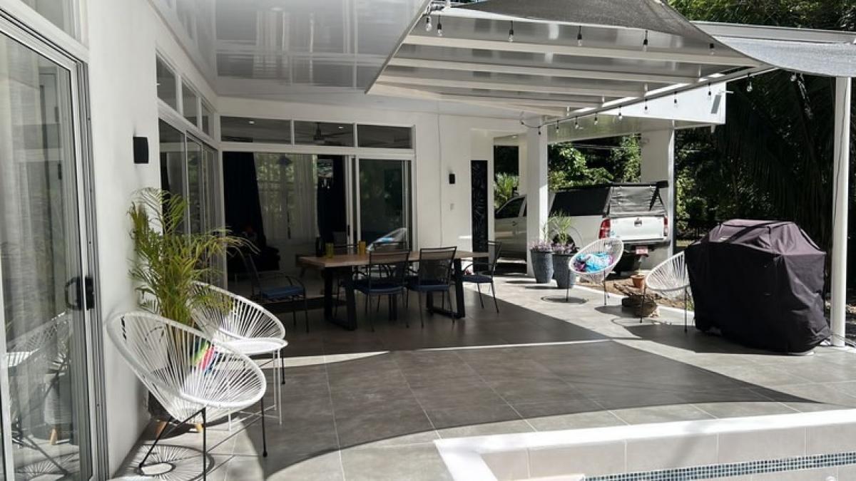 Casa Lorenzo is a newly constructed and modernly designed 2 Bedroom 2 Bathroom home in the safe and quaint Bosque del Lago neighborhood of Playa Carrillo. Casa Lorenzo is conveniently located 5 minutes from the white sandy shores of World Renowned Playa Carrillo Beach and only 10 minutes more from all the amenities, restaurants, bars and shops of downtown Playa Samara. Wake up each morning with one single decision ? swim in your pool or walk the surrounding jungle trails for ones daily exercise? Casa Lorenzos design allows for privacy, and a second wall and hallway to block out the heat and sun from the two spacious bedrooms. The homes floor plan flows nicely from the kitchen area into the living room lounge area and seamlessly outdoors through the ceiling to floor glass panels that open directly onto the covered outdoor deck, dining area and custom pool. Casa Lorenzo offers a 755 m2 / .19 acre lot and within said lot - 200 m2 of garden space or additional construction area are available and ample parking both covered and uncovered allow for multiple vehicles to be secured within the properties fence line. Casa Lorenzo 176 m2 / 1,895 sqft home conveys fully furnished, air conditioned, with a BBQ area, fully landscaped, with a washer and dryer, river views, jungle views, and close to schools and transportation. A great option as a vacation home, Airbnb rental or a hybrid of both?